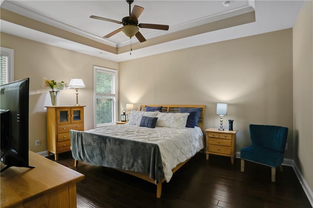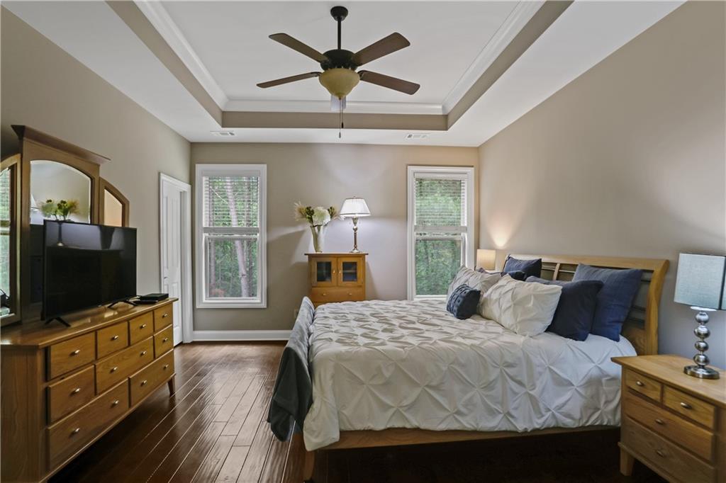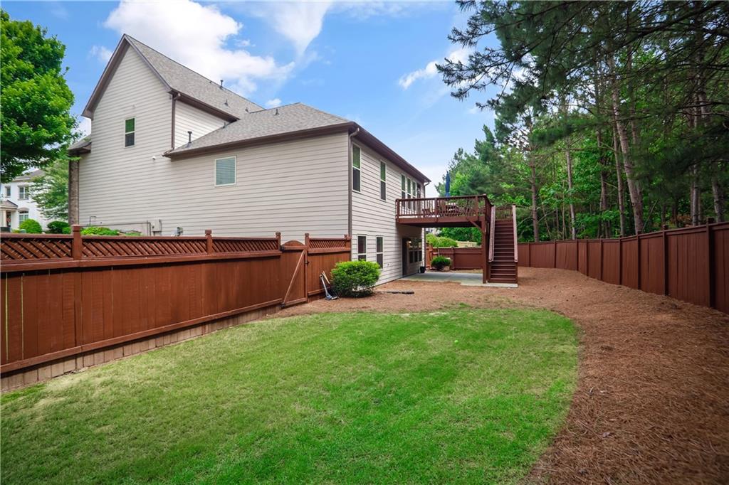 Welcome home! Located in the beautiful gated community of Three Bridges, this stunning 4 bed, 3.5 bath home is truly move-in ready, featuring fresh interior and exterior paint and gleaming hardwood floors THROUGHOUT. Tons of natural light and open concept with the Primary bedroom conveniently located on the MAIN FLOOR, with His and Her closets, with an oversized Primary bathroom. Laundry room is also conveniently located on the MAIN FLOOR. The Kitchen features stainless steel appliances and LARGE island. Set on a LARGE private lot and cul-de-sac, this home offers ample space both inside and out. Perfect for entertaining with its large welcoming deck and FENCED-in backyard. Large unfinished basement with endless opportunities. With its stylish updates and spacious layout, this property is perfect for comfortable living and effortless entertaining. Three Bridges amenities include pool, tennis, playground, community greenspaces, yard maintenance, and in a prime location. Just minutes from local shopping, restaurants, beautiful parks, Suwanee Town Center, and North Gwinnett County Schools. Don't miss out on this must see home!
