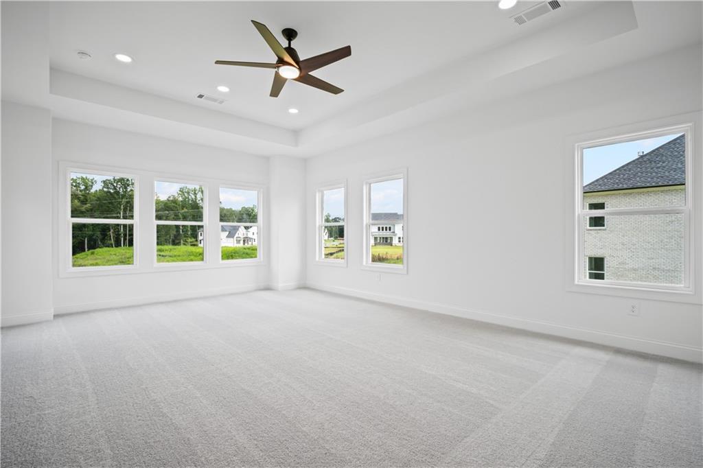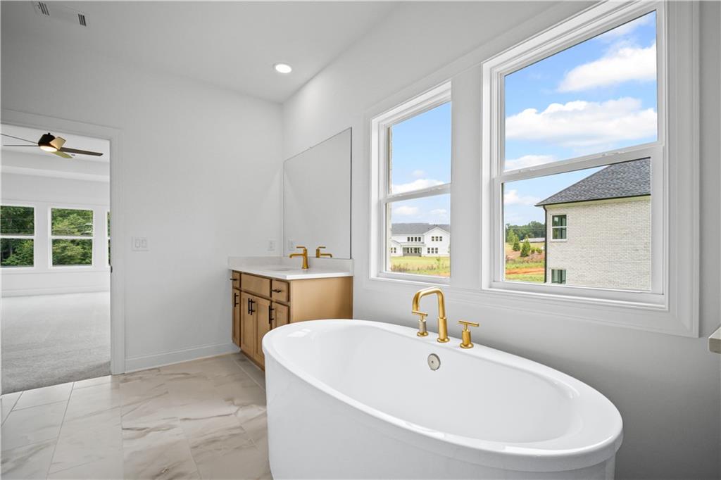 Quick Move-In Home – READY AUGUST 2025! Discover the Payton Transitional by Toll Brothers – a stunning, thoughtfully designed home that blends elegance with an open-concept layout and ABUNDANT NATURAL LIGHT, with soaring two-story great room. The beautifully crafted exterior showcases full front porch with wood columns and three-sides brick on a private homesite with picturesque views. Inside, the GOURMET KITCHEN is a dream for entertainers and cooking enthusiasts alike, featuring an expansive island, plentiful cabinetry, and striking Silestone quartz countertops. The Payton floor plan offers EXCEPTIONAL flow, highlighted by hardwood floors on the main level with a multi-stacked western sliding door that opens to a covered outdoor living deck off the great room – perfect for seamless indoor-outdoor living. Our sought after mult-gen suite on the main offers privacy and versatility for differing stages of life. As a guest suite or in-law suite, this features a bedroom, separate living room, and walk in shower with seat. Upstairs, the primary suite features a LUXURIOUS bath, with separate vanities, an exceptional shower with seat, and an incredible primary closet including private access to the laundry room. Two secondary bedrooms includes a walk-in shower. Additional highlights include a three-car garage (two side-entry and one carriage), 4-zone irrigation system, and access to fantastic community amenities – pool, playground, fire pit, and outdoor recreation areas just steps away. Ideally located near GA 400 (Exit 12), you're just minutes from top dining, shopping, and entertainment at Vickery Village, Halcyon, Avalon, The Collection, and Fowler Park. Experience luxury living at its finest with Toll Brothers at Northfield Trail! Special incentive offers!