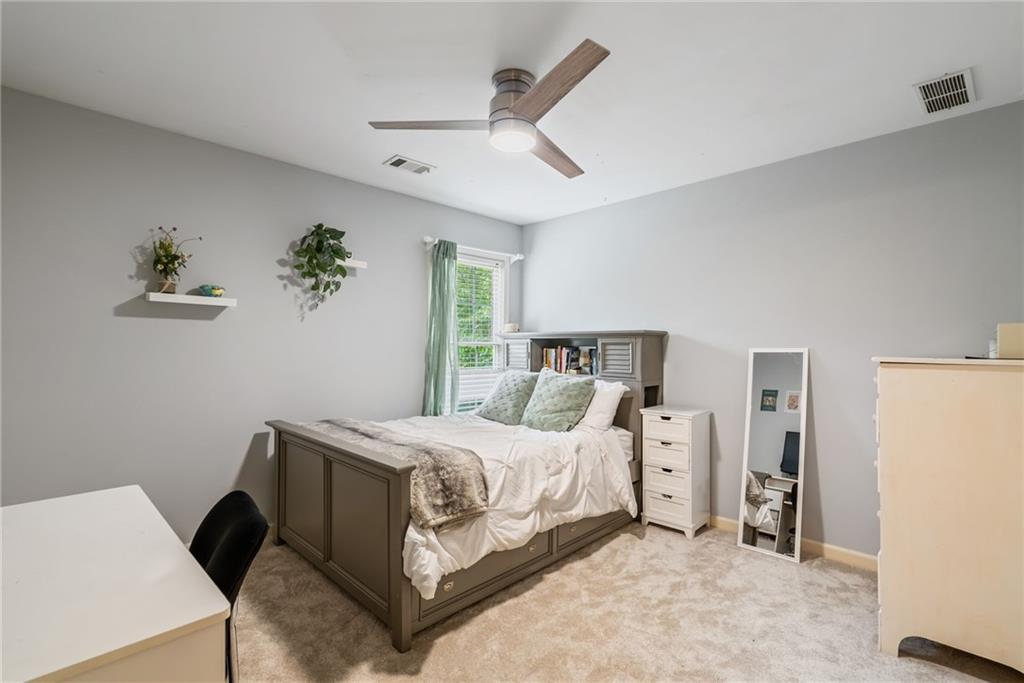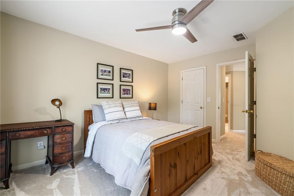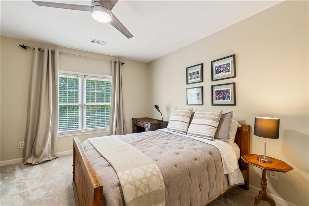 Welcome to this beautifully maintained 5 bedroom and 3 bath home in the highly desirable Polo Golf & Country Club. Step into a two-story foyer flanked by a formal dining and living room. The open-concept family room flows into a spacious eat-in kitchen featuring crisp white cabinetry, granite countertops, and stainless steel appliances. A sought-after MAIN LEVEL BEDROOM and full bath offer flexible living space for guests or a home office. Upstairs, you'll find 4 generously sized bedrooms and 2 full baths. Brand NEW CARPET, FRESH EXTERIOR and INTERIOR PAINT, and a PRIVATE, LEVEL BACKYARD with an extended paver patio makes this home truly move-in ready. Optional Club membership includes access to an 18-hole golf course, adult and family pools with a waterslide, 10 tennis/pickleball courts, clubhouse dining, and year-round activities. Walk to Vickery Village, One Life Fitness, and the YMCA, with private Greenway access through the neighborhood park. Close to Halcyon, Avalon, and top-rated Forsyth County schools. You don't want to miss this home!