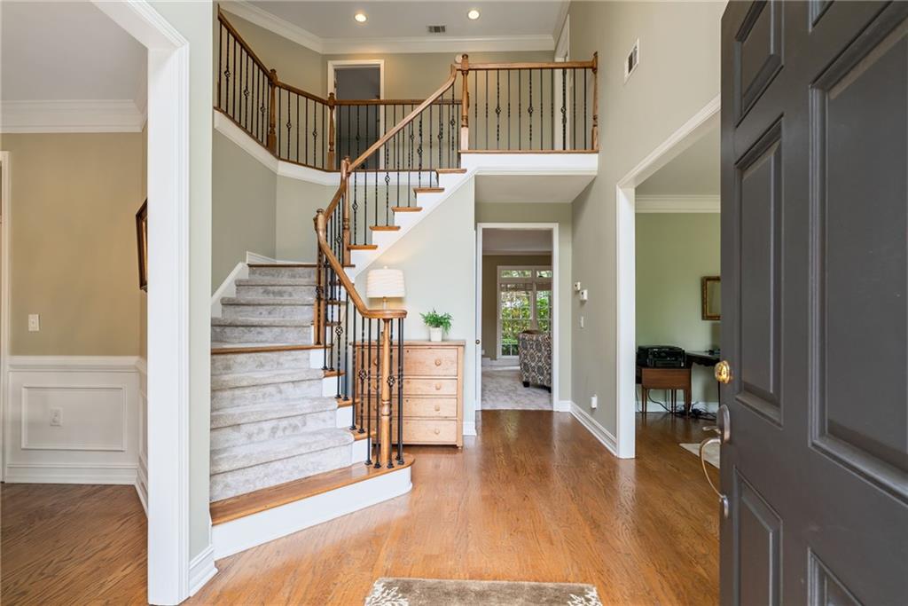 - FeaturesCrown Molding, Disappearing Attic Stairs, High Ceilings 9 ft Main, Tray Ceiling(s), Vaulted Ceiling(s), Walk-In Closet(s)