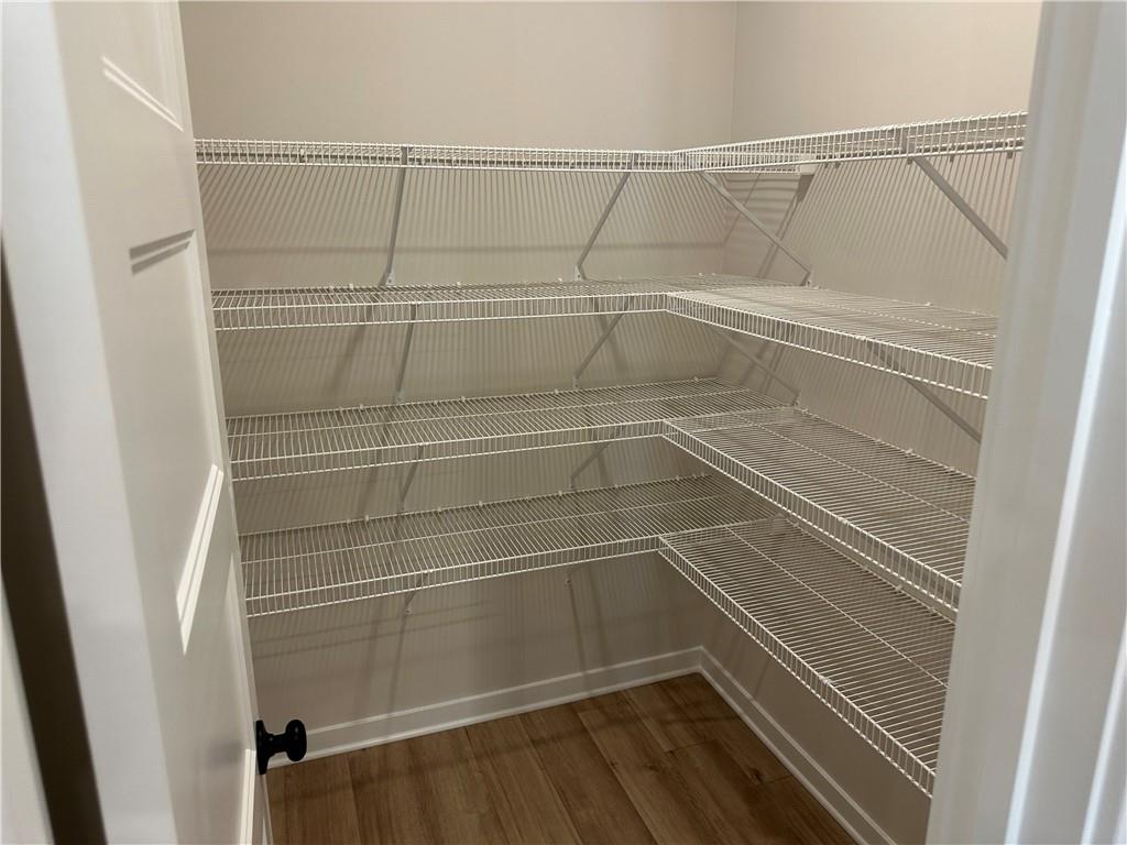 - KitchenCabinets White, Kitchen Island, Pantry Walk-In, Solid Surface Counters, View to Family Room