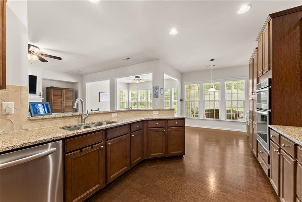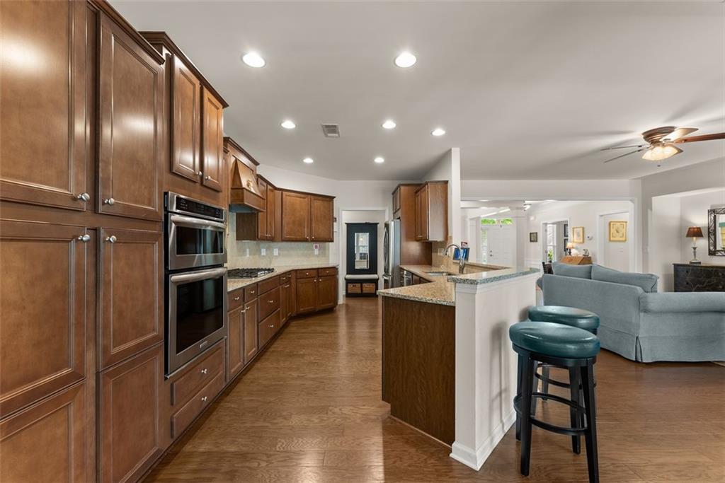 - KitchenBreakfast Bar, Stone Counters, Eat-in Kitchen, Pantry, View to Family Room