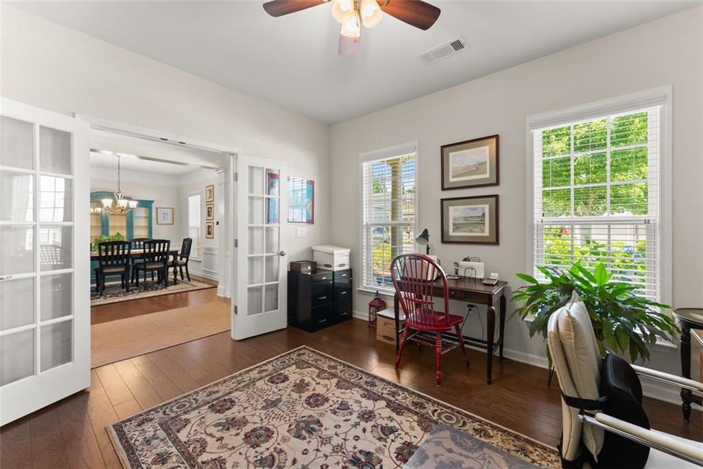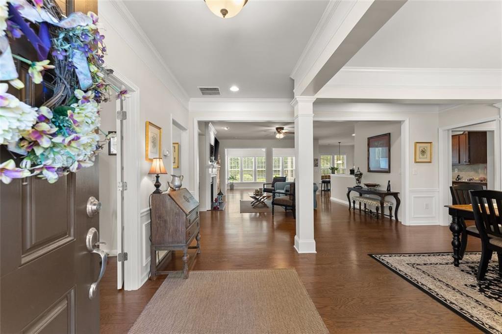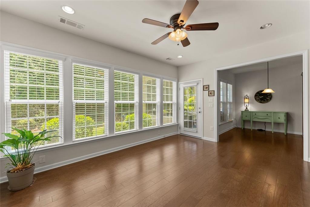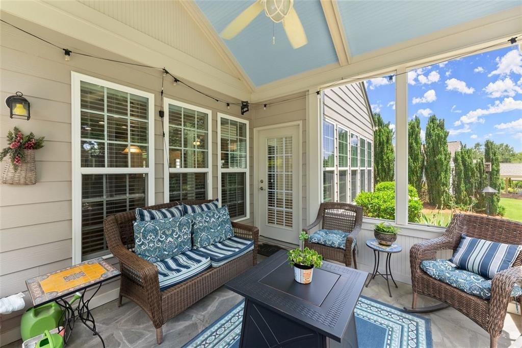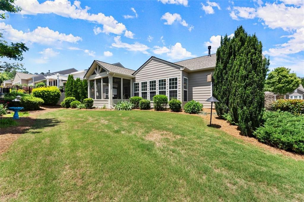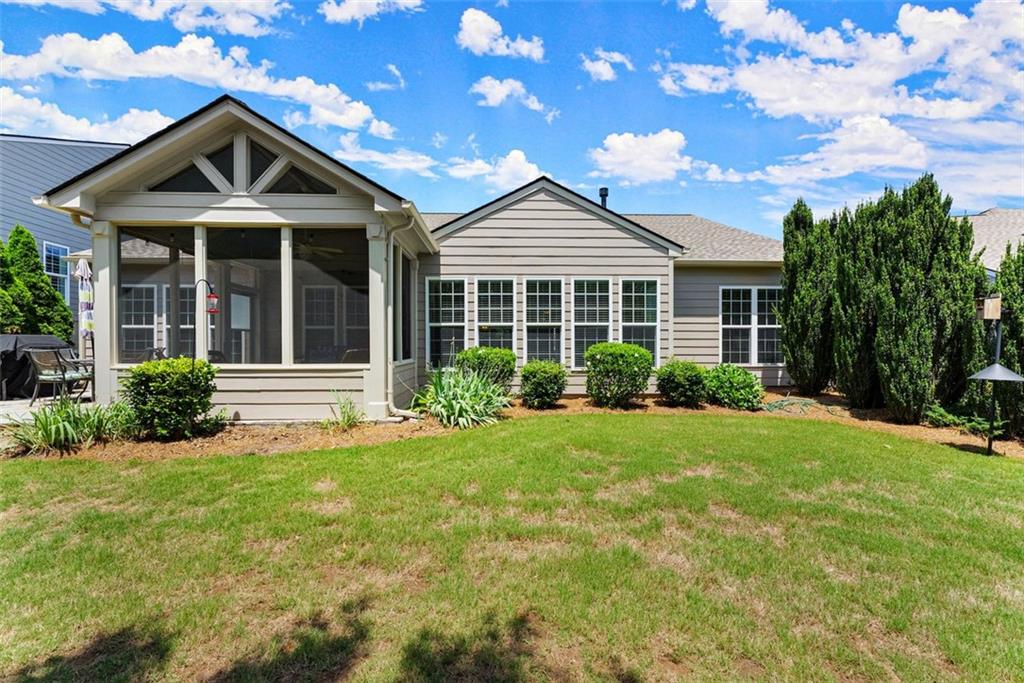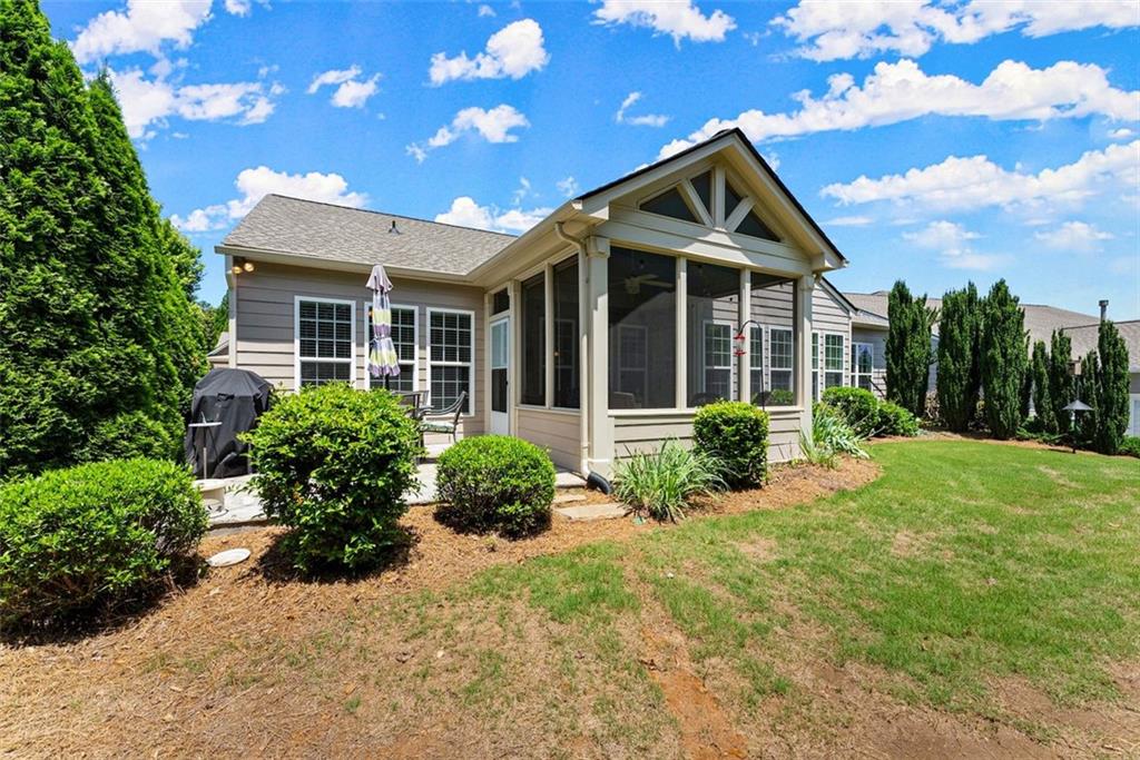 Welcome to your dream home in the highly sought-after 55+ community of The Village at Deaton Creek! This pristine 3-bedroom, 2-bath residence offers 2,141 square feet of thoughtfully designed living space and is move-in ready with a host of recent upgrades. Built in 2014 and meticulously maintained, the home boasts a brand new roof (2023), fresh exterior paint (2024), and new carpet in all bedrooms (2023). You’ll love the open floor plan, ideal for both everyday living and entertaining, featuring manufactured hardwood floors throughout the main living areas and crown molding in the foyer and formal dining room for a refined touch. The spacious kitchen is a chef’s delight, complete with granite countertops, beautiful stained wood cabinetry, a gas cooktop, built-in oven and microwave, and an eat-in breakfast area that opens to the bright and airy sunroom. Just off the sunroom, enjoy your morning coffee or evening glass of wine in the screened-in porch with flagstone flooring, overlooking a private backyard and flagstone patio, all surrounded by mature, lush landscaping with a full sprinkler system. The primary suite is a true retreat, comfortably accommodating a king-sized bed and featuring a large walk-in closet, double vanities, and a new frameless glass shower door. Two additional bedrooms provide flexibility for guests, an office, or hobby space. But it’s not just the home you’ll fall in love with—it’s the lifestyle. The Village at Deaton Creek is a gated, active adult community offering resort-style amenities including: A beautiful clubhouse, Indoor and outdoor pools, Tennis, pickleball, and bocce courts, Fitness center, Walking trails, Dog park, Dozens of clubs and activities to suit every interest. All of this in a prime location, close to shopping, dining, medical facilities, and the scenic North Georgia mountains. Don’t miss this rare opportunity to own a truly turnkey home in one of the area’s most desirable 55+ communities. Schedule your private showing today—homes like this don’t last long!