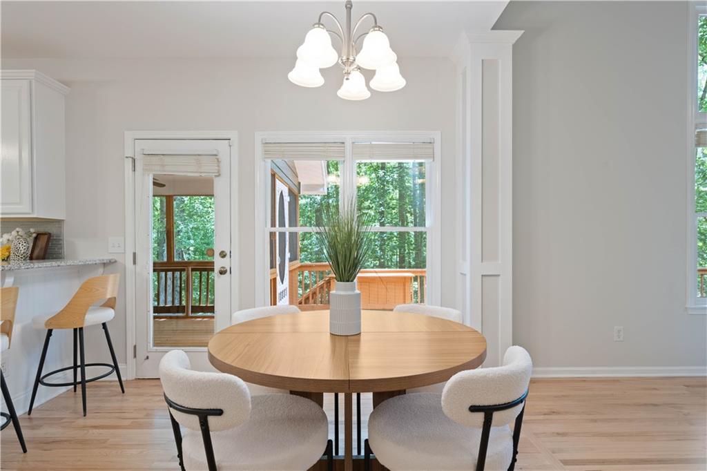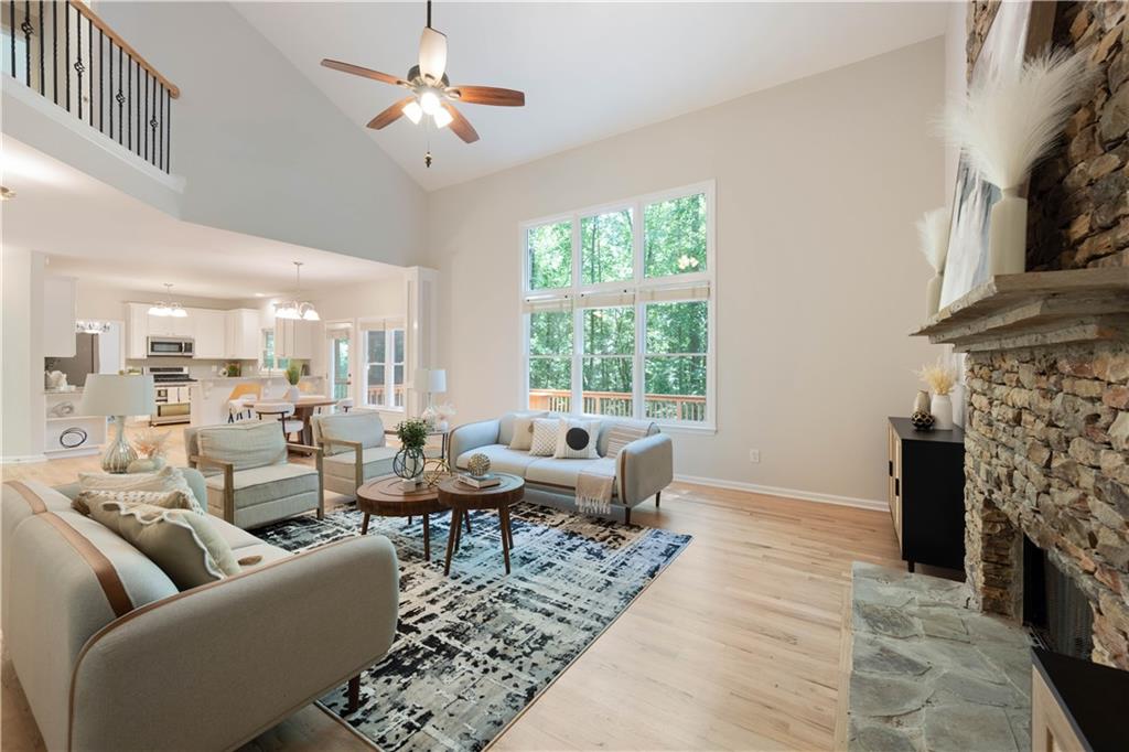 Key Features of this Prestigious Home: Elevated Finishes Throughout: new luxury vinyl floors flow seamlessly throughout the entire home, offering both beauty and exceptional durability. Grand Family Room: The heart of the home, the family room, boasts a vaulted ceiling that creates an expansive and airy atmosphere, perfect for gathering and entertaining. •Oversized Rooms: Experience the luxury of space with oversized rooms throughout the home, providing ample room for comfortable living, versatile furniture arrangements, and personalized design. •Wide Open Floor Plan: An emphasis on a wide open floor plan ensures a natural flow between living spaces, promoting connectivity and an abundance of natural light. •Screened-In Patio Deck: Enjoy the beauty of the outdoors year-round from your private screened-in patio/deck, a perfect sanctuary for morning coffee, evening relaxation, or al fresco dining, all while enjoying the serene views of your expansive property. •Spa-Like Primary Bathroom: The primary suite offers a true retreat with a gorgeous double-sized shower providing a luxurious bathing experience. His and her vanities offer ample space and convenience, complementing the serene ambiance of this private sanctuary. •Completely Refinished Basement: The lower level offers an exceptional extension of living space, with a completely refinished basement that includes a full bath. This versatile area is ideal for a media room, home gym, in-law suite, or additional recreational space. •Updated Storage Shed: The oversized backyard, a testament to the home's generous 1.3-acre lot, features an updated storage shed, providing practical solutions for outdoor equipment, tools, or additional storage needs. Exterior & Grounds: •Private Oasis: The 1.3-acre lot provides a private and serene setting, potentially featuring a mix of manicured lawn and mature trees, perfect for outdoor activities or simply enjoying nature. Interior - Main & Upper Levels: •Additional Bedrooms and Baths: The upper levels house spacious secondary bedrooms and beautifully renovated full bathrooms, ensuring comfort and privacy for family and guests. •Unbeatable Dawsonville Location: Enjoy the tranquility of Dawsonville, with the added convenience of being minutes away from the Dawsonville Premium Outlets for shopping, Lake Lanier for boating and water activities, and Amicalola Falls State Park for hiking and breathtaking natural beauty. This location provides the perfect balance of peaceful living with easy access to leisure and entertainment. This fully renovated three-story home in Savannah Trace offers not just a residence, but a lifestyle of comfort, luxury, and tranquility. Its prime location in Dawsonville, coupled with its extensive upgrades and generous grounds, makes it an exceptional opportunity for those seeking a move-in ready dream home in a highly desirable community.