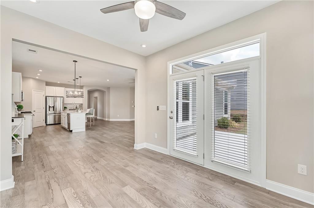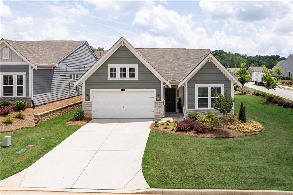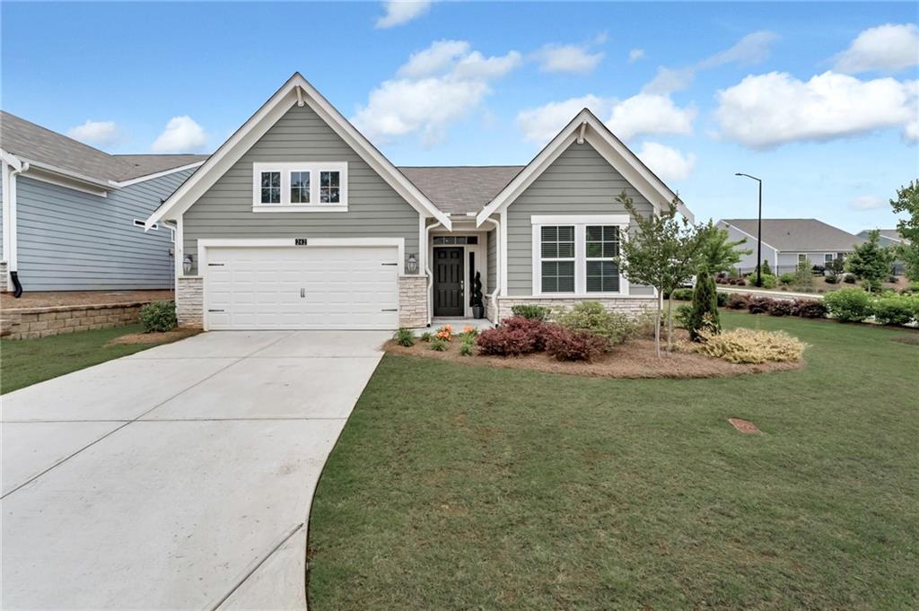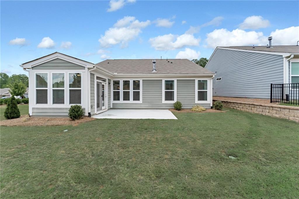 Welcome to Your Dream Home in the Sought-After 55+ Gated Community! Step into the charm and comfort of the Amelia Coastal Cottage by Fischer Homes, where thoughtful design meets luxury living. Located in a quiet, gated 55+ community, this beautifully maintained home is just two years old and shines like new. From the moment you enter through the wide and welcoming foyer, you’ll notice the abundance of natural light, high-end finishes, and open, elegant layout that makes this home truly special. To your right, you’ll find a spacious guest bedroom and a full bath, offering comfort and privacy for visitors. Double French doors open into a bright, flexible room that’s perfect as a home office, den, or media room. As you continue into the heart of the home, you'll discover a stunning chef’s kitchen featuring a large island ideal for entertaining, upgraded 42" soft-close cabinetry, luxurious quartz countertops, a timeless white tile backsplash, and top-of-the-line stainless steel appliances including a gas stove, microwave, dishwasher, and refrigerator. A walk-in pantry provides generous storage, and upgraded lighting adds to the stylish, modern feel. The kitchen flows seamlessly into the open dining area and spacious family room, which features a cozy gas fireplace and a perfect space for your TV. Just off the family room is a beautiful sunroom filled with windows, bringing in even more natural light and creating a warm, relaxing atmosphere throughout the day. The luxury continues into the large primary suite, complete with an oversized bedroom, spa-like en-suite bath with double vanities, an expansive walk-in shower with grab bars, transom window for natural light, a private toilet area, and a linen closet. The walk-in closet is spacious and leads conveniently into the oversized laundry room, which includes custom wood shelving for added storage and organization. This home also includes a washer and dryer, custom cabinetry in the entry from the garage, luxury vinyl flooring throughout the main living areas, and upgraded carpet in the bedrooms and closets. Custom blinds have been installed throughout the entire home, offering both privacy and style. The garage and outdoor patio have been finished with a high-quality granite epoxy coating, providing a clean, durable surface that enhances both form and function. The spacious garage easily fits two cars and still offers room for storage. After a long day, you can unwind on your private outdoor patio or take advantage of the newly built clubhouse just steps away. The clubhouse features a fully equipped gym, a cozy card room, an expansive kitchen and gathering space with large TV—perfect for hosting family events or community get-togethers. You'll also enjoy access to popular amenities such as a pickleball court and shuffleboard, offering endless opportunities for recreation and socializing. This move-in-ready home blends comfort, style, and convenience in one of the area’s most desirable 55+ communities. It’s designed to impress even the most selective buyers and is ready for you to enjoy the lifestyle you deserve.