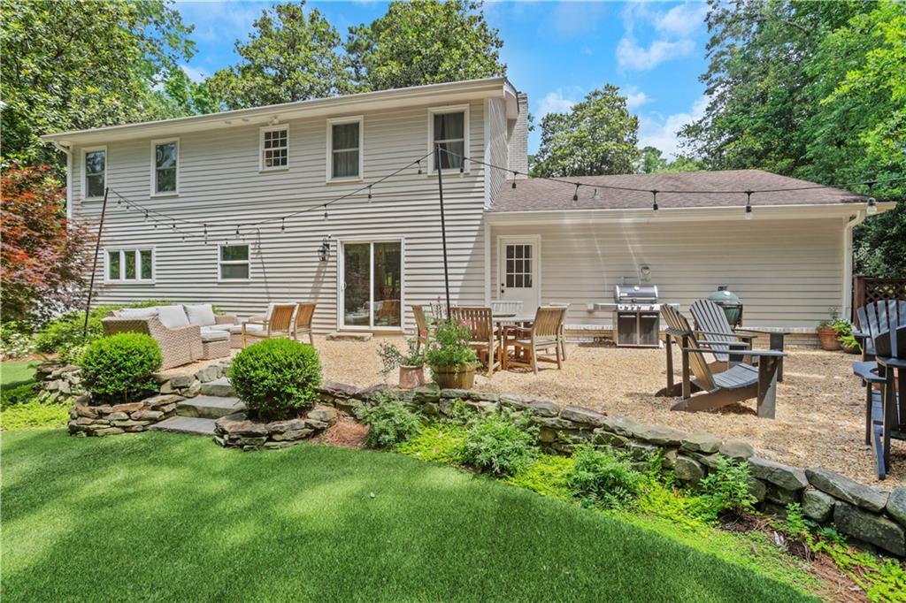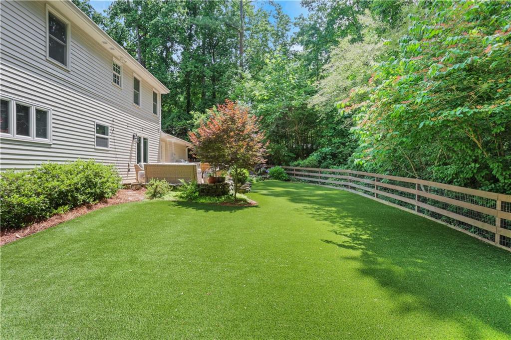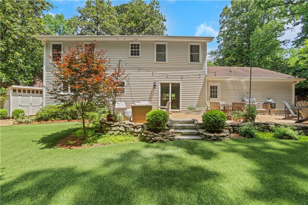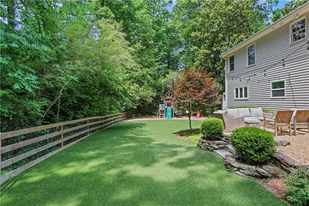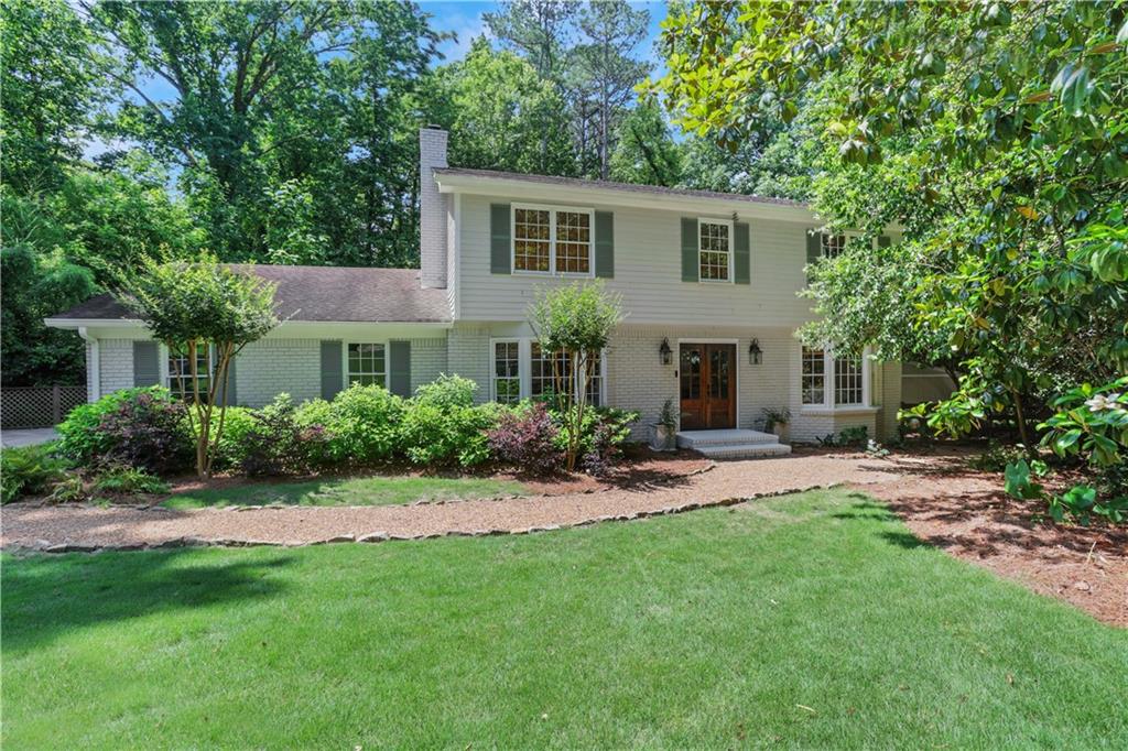 Tucked on a quiet cul-de-sac in the North Springs neighborhood of Sandy Springs, this 4-bedroom, 2.5-bath home (plus an office!) has a great layout, hardwood floors throughout, and thoughtful updates from top to bottom. The main level has two roomy living areas that flow into an open dining space, a fully renovated kitchen, and a dry bar with a wine fridge—perfect for entertaining. The kitchen features white cabinetry, quartz countertops, stainless steel appliances, and polished nickel finishes, including a pot filler. It all overlooks the large, private, turfed backyard. Out back, there's a flat turfed green space, a pea gravel patio, a playset, and a storage shed—ready for everything from playtime to dining al fresco. The main level also has a true two-car garage that opens into a practical mudroom/laundry room with plenty of storage. Upstairs, you’ll find all four bedrooms plus a light-filled office. The secondary bedrooms share a newly renovated bathroom with quartz counters and marble tile, and the spacious primary suite includes his-and-hers closets and a private en suite bath. Located in one of the most connected spots in Sandy Springs, you're just minutes from running and walking trails at nearby Lost Corner Preserve, and all the shopping, dining, and entertainment in downtown Sandy Springs. You don’t want to miss this one!