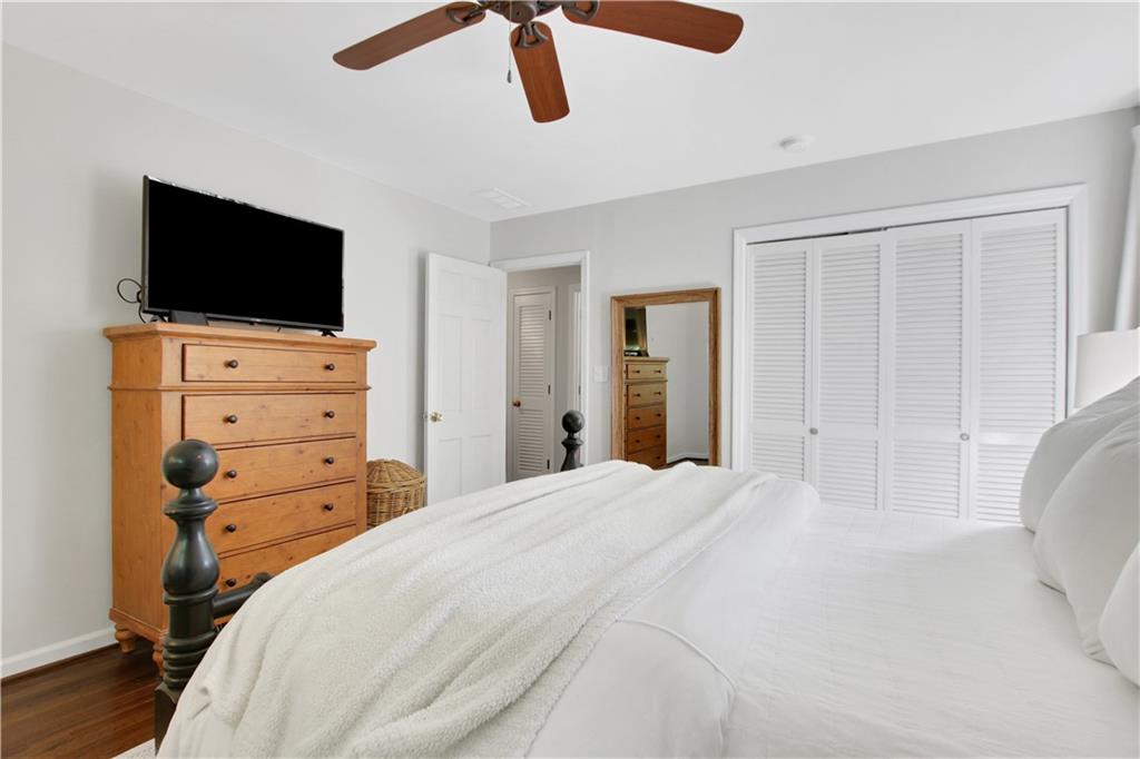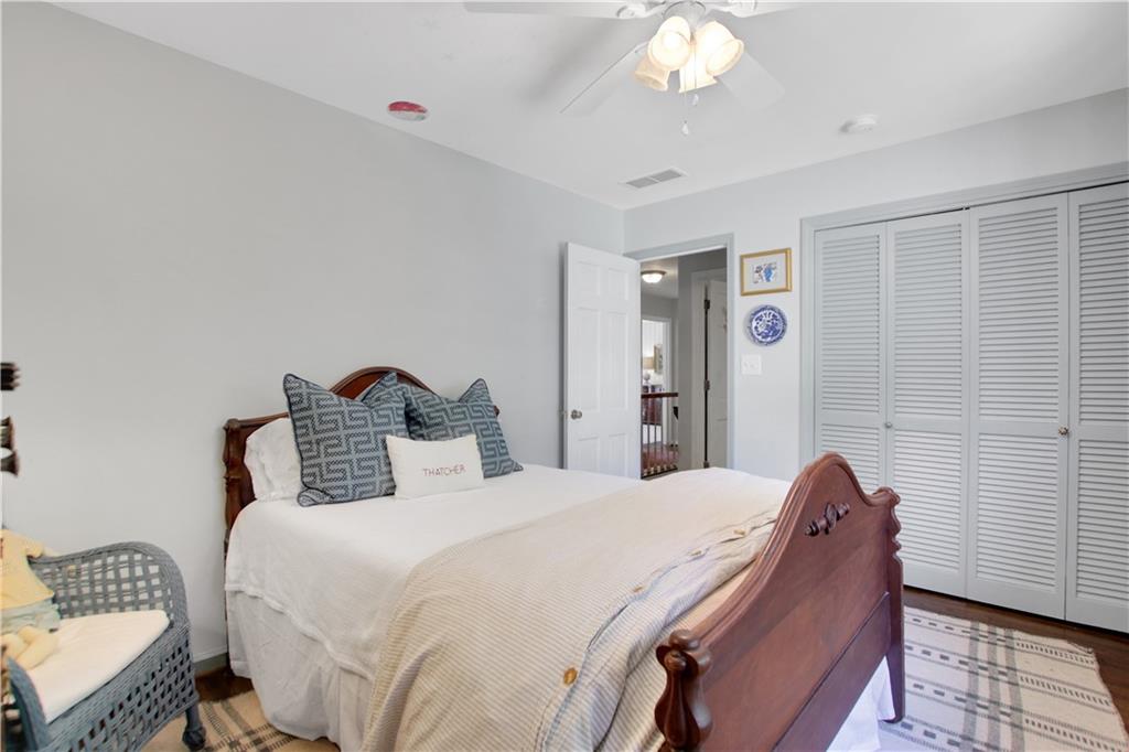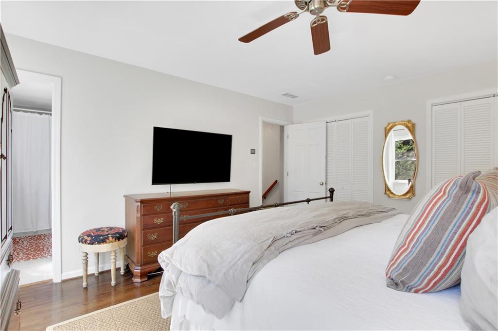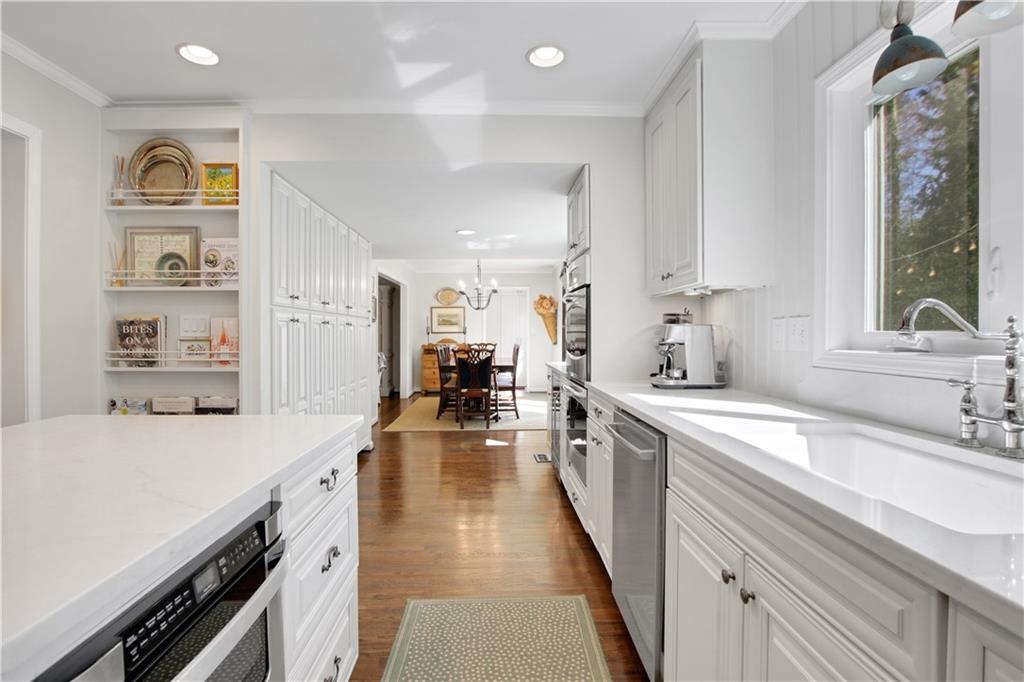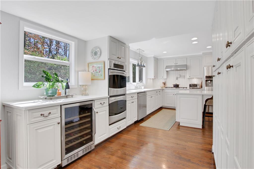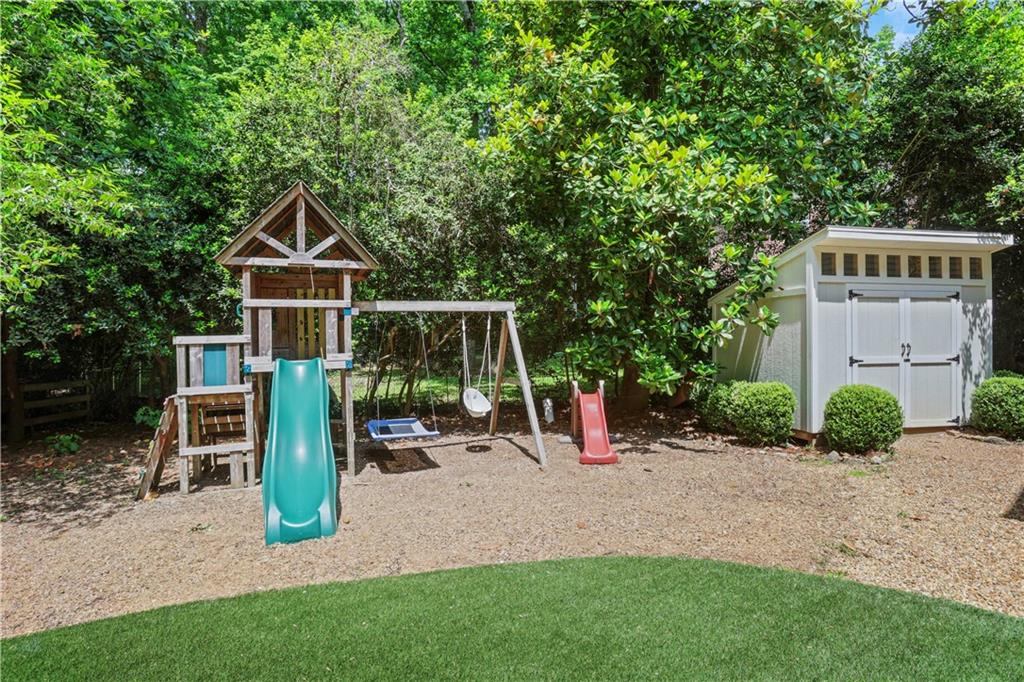 Tucked on a quiet cul-de-sac in the North Springs neighborhood of Sandy Springs, this 4-bedroom, 2.5-bath home (plus an office!) has a great layout, hardwood floors throughout, and thoughtful updates from top to bottom. The main level has two roomy living areas that flow into an open dining space, a fully renovated kitchen, and a dry bar with a wine fridge—perfect for entertaining. The kitchen features white cabinetry, quartz countertops, stainless steel appliances, and polished nickel finishes, including a pot filler. It all overlooks the large, private, turfed backyard. Out back, there's a flat turfed green space, a pea gravel patio, a playset, and a storage shed—ready for everything from playtime to dining al fresco. The main level also has a true two-car garage that opens into a practical mudroom/laundry room with plenty of storage. Upstairs, you’ll find all four bedrooms plus a light-filled office. The secondary bedrooms share a newly renovated bathroom with quartz counters and marble tile, and the spacious primary suite includes his-and-hers closets and a private en suite bath. Located in one of the most connected spots in Sandy Springs, you're just minutes from running and walking trails at nearby Lost Corner Preserve, and all the shopping, dining, and entertainment in downtown Sandy Springs. You don’t want to miss this one!