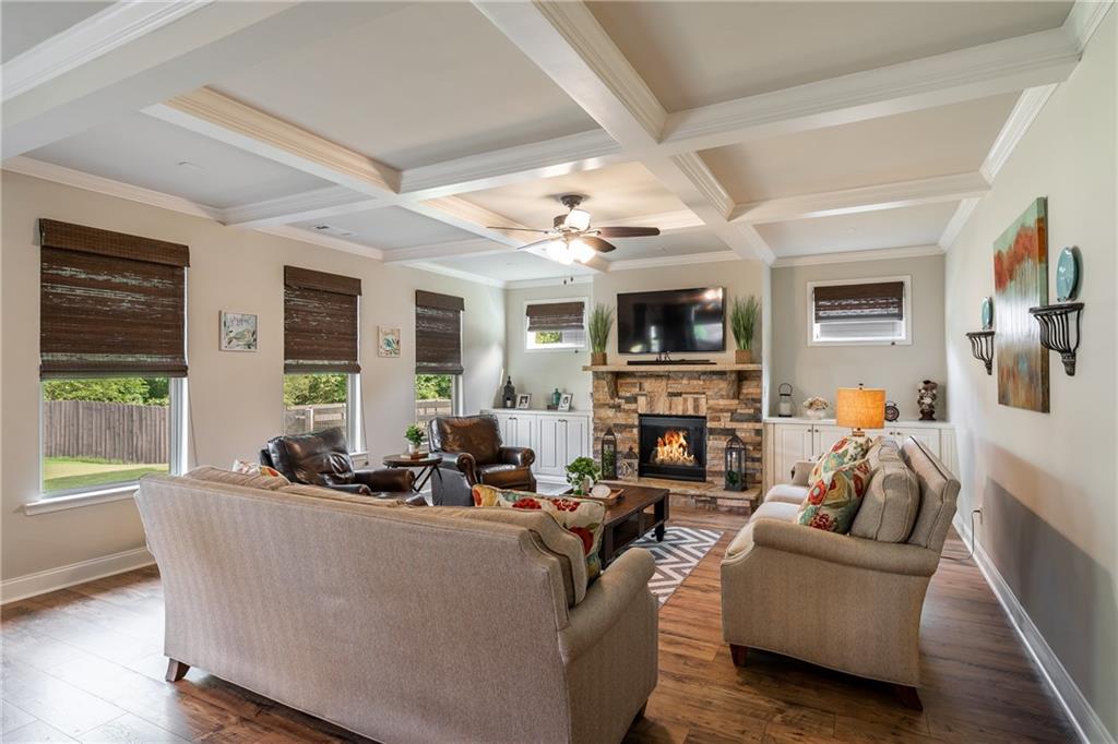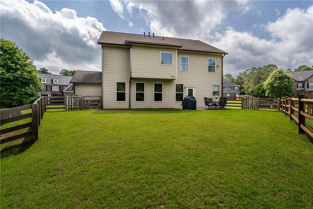 Welcome to 4305 Hunters Walk Way, a meticulously maintained 4/2.5 residence situated on a .22-acre corner lot, in Forsyth County. As you enter the foyer, you'll be greeted with a formal dining area perfect for gatherings and entertaining. The open floorplan kitchen provides a seamless view to the family room and features beautiful granite countertops, stainless appliances, a functional island, spacious corner pantry, and breakfast area. The family room boasts coffered ceilings and an abundance of natural light, as well as a stone gas fireplace perfect for relaxation. A conveniently located half bath is also situated on the main level. Upstairs, you'll find the over-sized master bedroom with beautiful tray ceilings along with a delightful ensuite featuring double vanities, granite countertops, a separate tile shower, soaking tub, and large walk-in closet. Three additional bedrooms, a full bath, and a sitting area are located upstairs, along with a convenient walk-in laundry room. The fourth bedroom can also function as an in-home office, playroom, or media room. Outside, you'll enjoy the patio area surrounded by a flat, private fenced-in backyard perfect for grilling, entertaining, and recreation. The garage area offers a true 2-car garage, with an additional garage area for equipment, storage, or a golf cart. Located in an HOA community with exceptional amenities, including swim, tennis, and playground, this residence is situated in the top-rated Forsyth County school district, close to shopping and dining. Additionally, this home offers a new water heater, new plumbing throughout, new plenum box on the HVAC, and new flooring throughout main level. Don't miss out on this incredible opportunity to own an exceptional home in Hunters Walk and experience all the possibilities it has to offer.