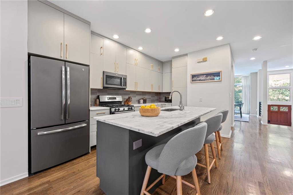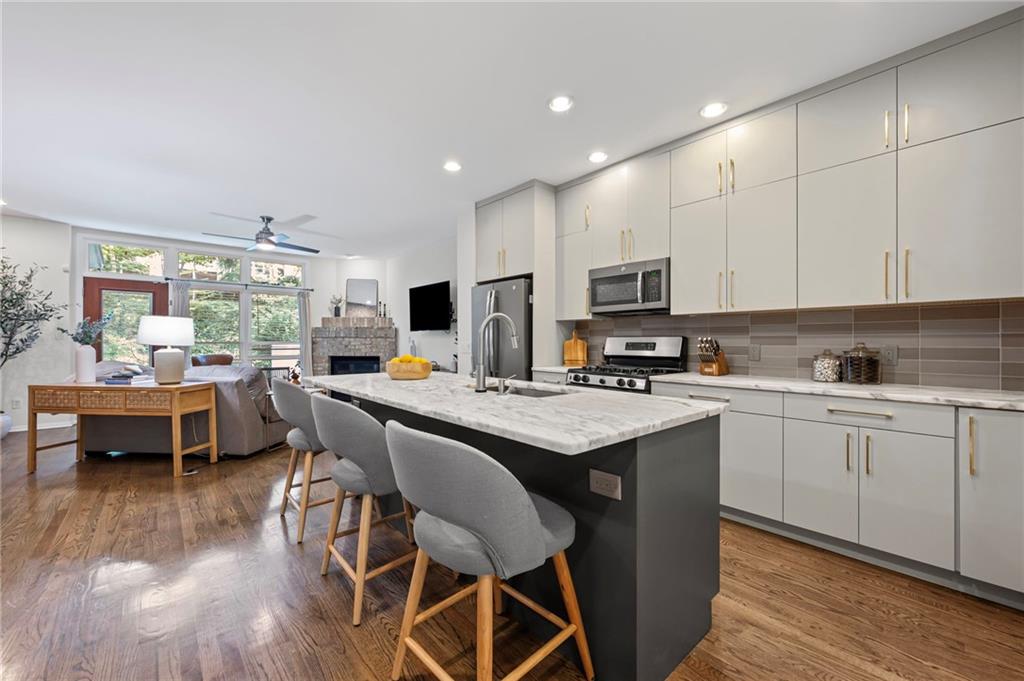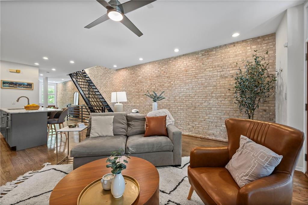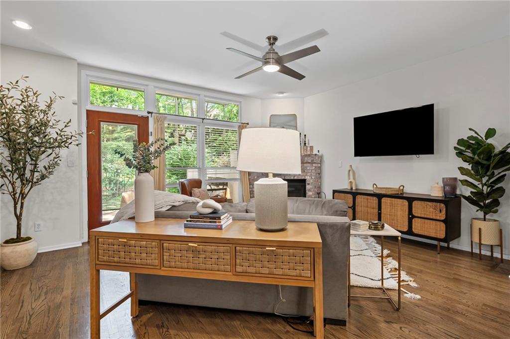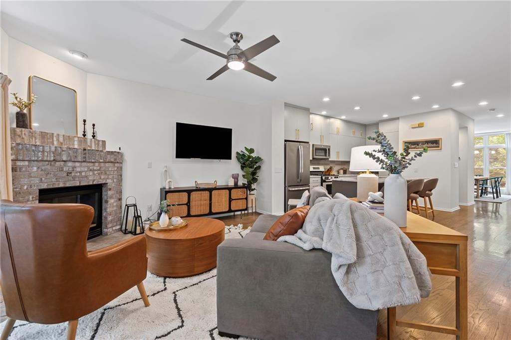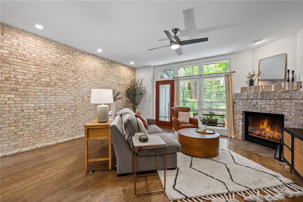 This beautifully maintained 2-bedroom, 2 full bath, 2 half bath townhome offers the perfect blend of modern style and everyday comfort. Featuring exposed brick walls and gleaming hardwood floors throughout the main level, this home welcomes you with warmth and character. The renovated kitchen boasts granite countertops, a breakfast bar, and a brand-new refrigerator—ideal for both entertaining and daily living. The fireside family room opens to a private patio overlooking the serene, fully-fenced 2-acre community green space—perfect for relaxing solo or with your pup! Upstairs, the spacious owner’s suite includes a glass block shower, dual vanities, and a generous walk-in closet. The secondary upstairs bedroom is also en-suite, providing comfort and privacy for guests or family. The finished terrace level offers versatile flex space—ideal for a home office, gym, or guest room. A private 2-car garage includes ample storage space. Enjoy a vibrant community with an active and affordable HOA. This move-in ready home is a true gem just minutes from the MARTA station, Town Brookhaven, and the popular restaurants and shops on Dresden. Don’t miss this opportunity—schedule your showing today! All information is deemed reliable but not guaranteed. Buyer to independently verify all details.