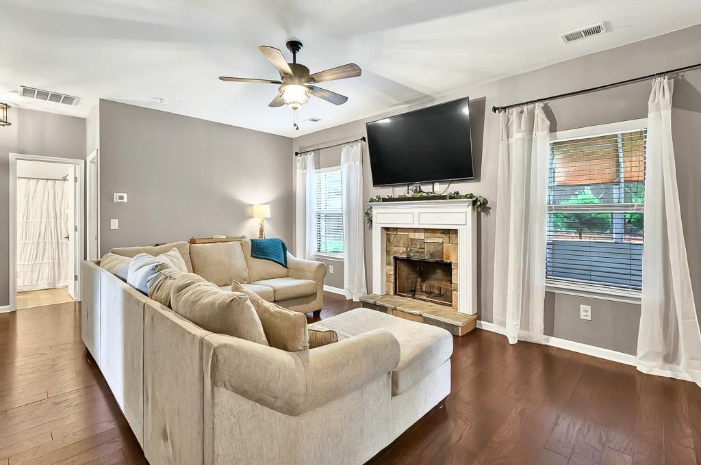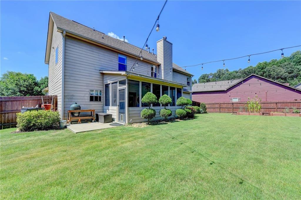 Have you been holding out for a home that blends charm, function, and that little bit of something special? Welcome to 3975 Silverthorn Trace—located in the desirable Hunters Walk community and zoned for award-winning schools, this 5-bedroom, 3-bathroom home checks all the hard to find boxes. From the start, the stone façade and rocking chair front porch create an inviting first impression. Step inside to a two-story foyer flanked by a large dining room with coffered ceilings and a versatile flex room—ideal as an office, playroom, or formal sitting space. The main floor also includes a guest bedroom and full bath for added convenience. The kitchen and living area were designed with everyday life in mind—offering a comfortable, open layout perfect for both entertaining and relaxing. You’ll find neutral granite countertops, upgraded 42-inch cabinetry, a center island, and a breakfast area that flows into a cozy family room with a fireplace. Just off the kitchen, step onto one of the home's standout features: the covered and screened-in porch overlooking the flat, sodded, and fenced backyard. It's a perfect spot for dining outside, watching the game, or winding down under the soft glow of string lights while the kids or pets play within view. Upstairs, the oversized primary suite includes a peaceful sitting area, an expansive bathroom with dual vanities, an extra-large shower and soaking tub, and a walk-in closet you’ll love. You'll also find three additional well-sized bedrooms, and the upstairs laundry room is right where you need it—just outside the primary suite. Throughout the home, arched doorways add character and a level of craftsmanship rarely found in today’s new construction. Across the street, a wooded HOA-owned greenspace ensures lasting privacy and a tranquil view from the front porch. Set on a quiet double cul-de-sac street in a neighborhood known for its sense of pride and community, Hunters Walk offers trails, a pool, lighted tennis courts, sidewalks throughout, and a playground. This part of Cumming strikes a rare balance—it feels tucked away and peaceful, yet you’re never far from everyday conveniences or community events. With exciting new commercial development and investment happening nearby, it’s easy to see that this is not only a wonderful place to live now, but a smart place to invest in for the future. All within great proximity to the Big Creek Greenway, The Cumming City Center, charming Downtown Cumming, and top-tier dining and shopping. Come see this home for yourself—you’ll be glad you did.