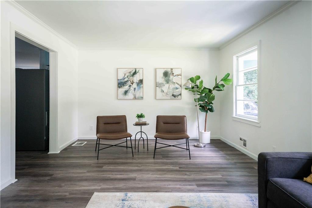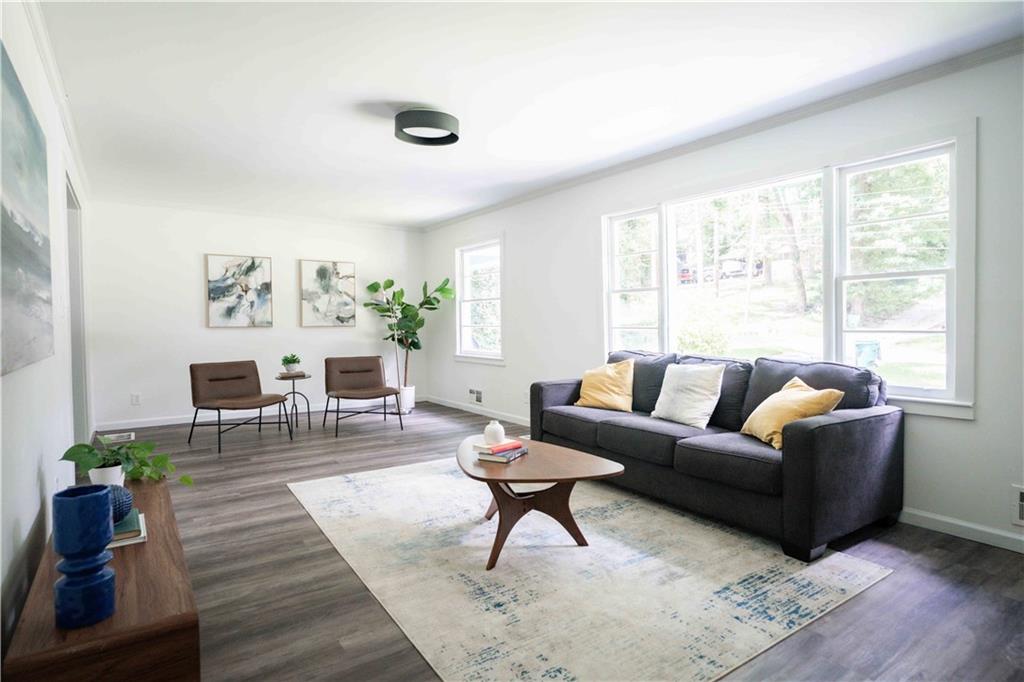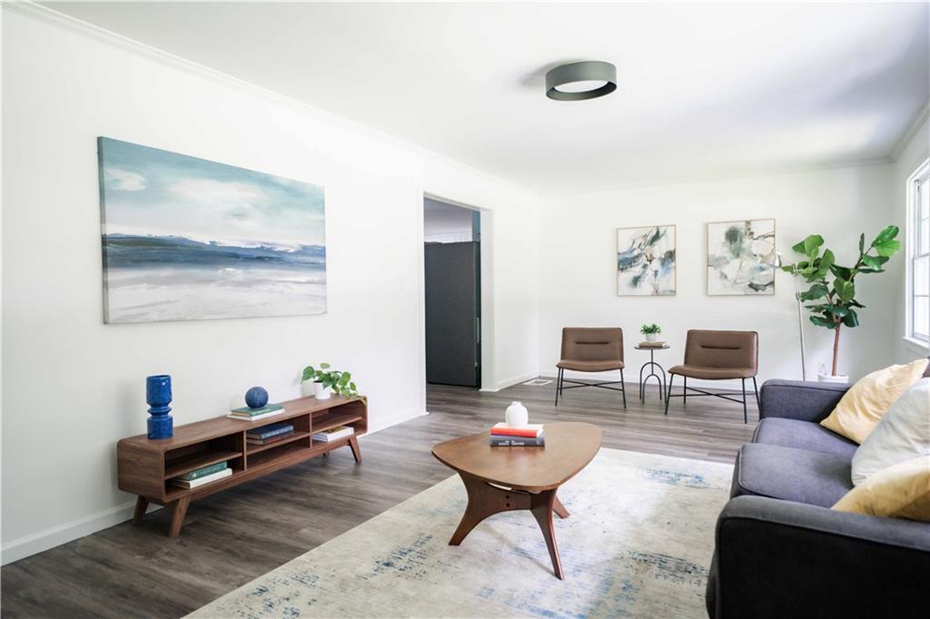 Welcome home! This newly renovated ranch boasts 4 spacious bedrooms, 2 baths, a sun-drenched living room, open chef's kitchen, & an additional sitting room right off the porch! The finsihed bassment includes bedroom. bonus room, and stubbed out bath. PLUS additional space for a potential 3/2 apartment with exterior entry! Entertain in the open concept eat-in kitchen with a view to living room and dining room. The huge back porch leads to a beautiful backyard perfect for pets!Plus, enjoy the convenience of a spacious 2-car port—perfect for storage and parking. Only a few blocks to East Lake Park, 2nd & Hosea, Oakhurst Village, Downtown Decatur, & more. BRILLIANT!