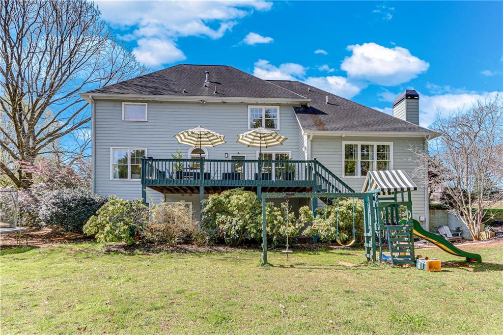 Seller is relocating and must sell. Situated on a beautiful, corner lot in highly sought after Cherokee Forrest, this beautiful home offers a side entry, 2 car garage on cul-de-sac street, 5 bedrooms 5 full baths and the finished terrace level. The main level boasts handsome hardwood floors, a guest bed and bath perfect for weekend visitors, chef’s kitchen with quartzite countertops, soft close drawers throughout, beautiful custom cabinetry, and built in pantry with ample storage space. Kitchen opens to a well-appointed living room with fireplace, with easy access to an expansive deck overlooking private backyard. Upstairs, you’ll find a beautiful primary suite with windows that flood the room with natural light, 2 secondary bedrooms with ensuite baths, a laundry room, and storage. The finished terrace level offers a large playroom, workshop, unfinished overflow space with custom shelves, 1 bedroom with full bathroom make this space the perfect in-law suite and multi generational home. Beautifully landscaped yard within walking distance to community pool. Invisible fence line buried ready for connection. North Hall schools & convenient location to shopping/dining. Kitchen and garage refrigerator stay with the home.