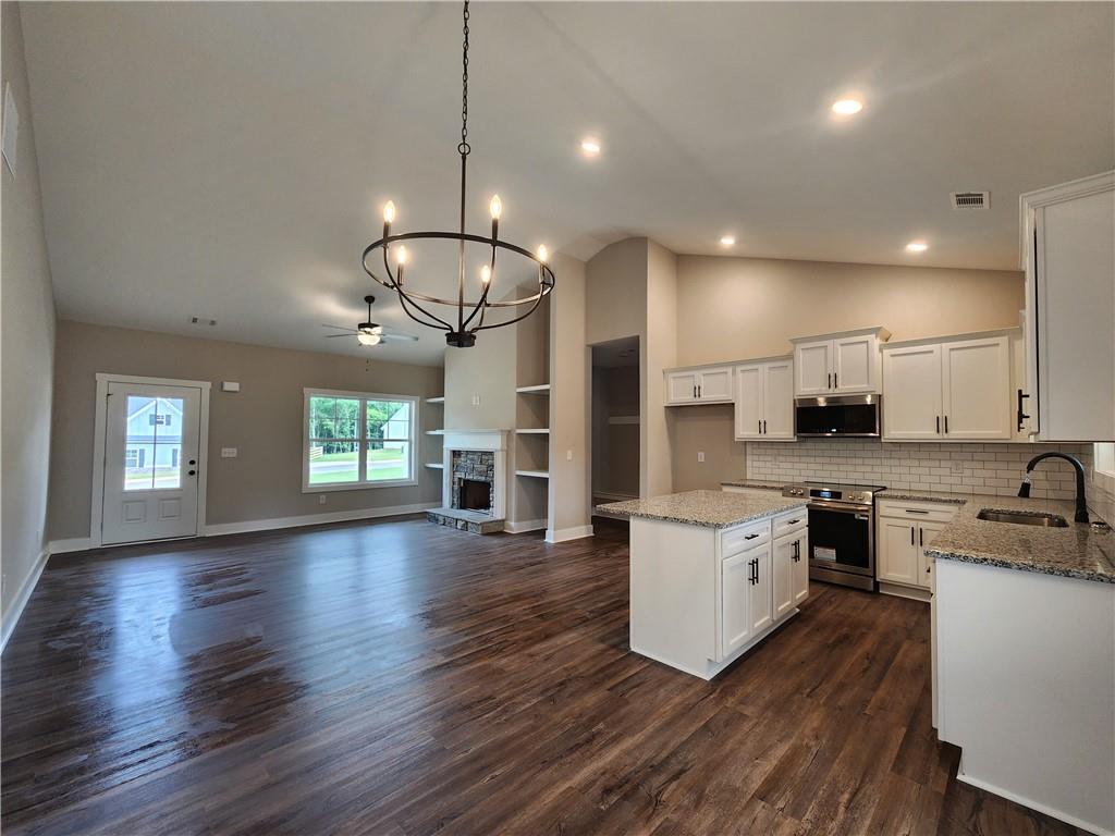 - KitchenBreakfast Bar, Cabinets White, Eat-in Kitchen, Kitchen Island, Pantry Walk-In, View to Family Room