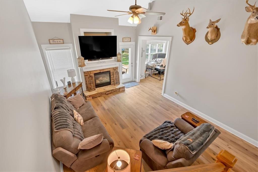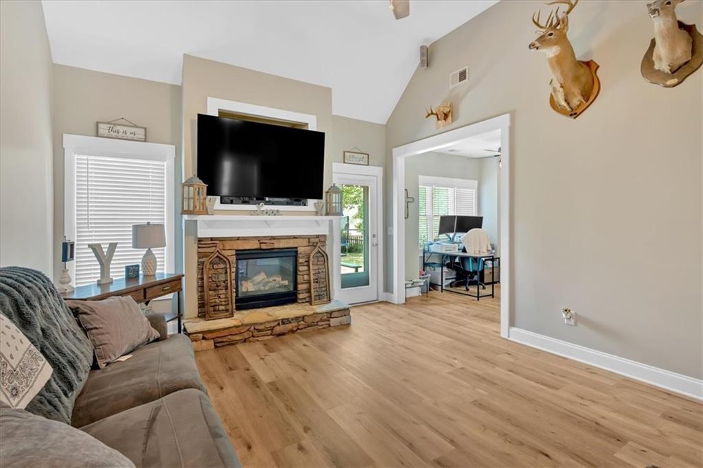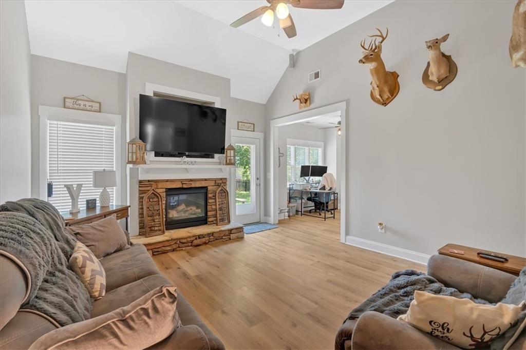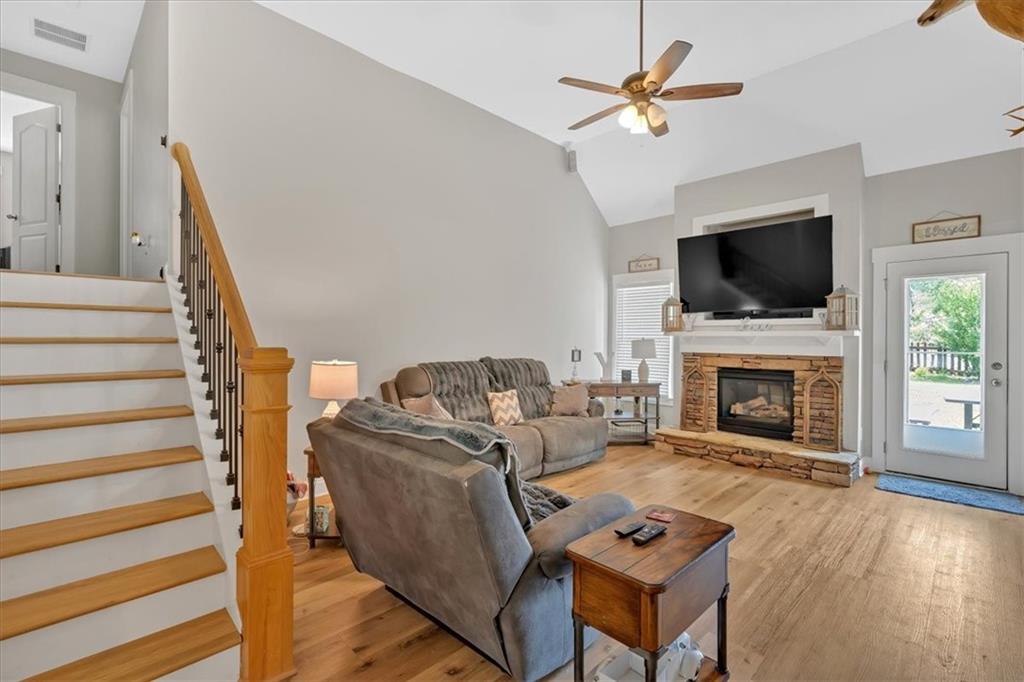 Exceptional Value- Check out the New Price!!! Well-maintained 3-bedroom, 2.5-bath home located in the highly desirable, amenity-rich community of The Capitol at Senators Ridge. This inviting residence features a vaulted family room with a striking floor-to-ceiling stacked stone fireplace, a formal dining room with beautiful hardwood floors, and a spacious kitchen with ample cabinetry and a cozy breakfast nook. Upstairs, the primary suite offers a trey ceiling, double vanities, a separate garden tub and shower, and a generous walk-in closet. Two additional bedrooms share a practical Jack-and-Jill bathroom—perfect for family or guests. The Partial finished basement includes two versatile rooms that can serve as a home office, workout space, or extra storage. Enjoy mornings on the front porch swing or unwind on the back patio overlooking a private, fenced backyard.