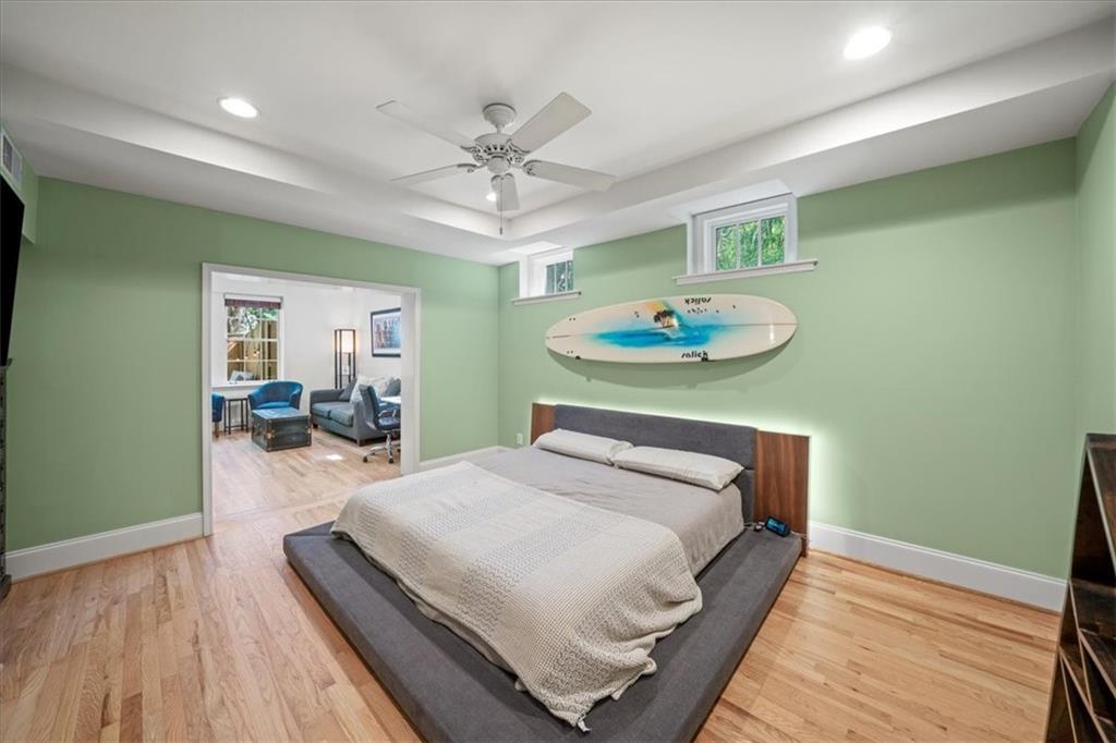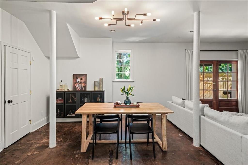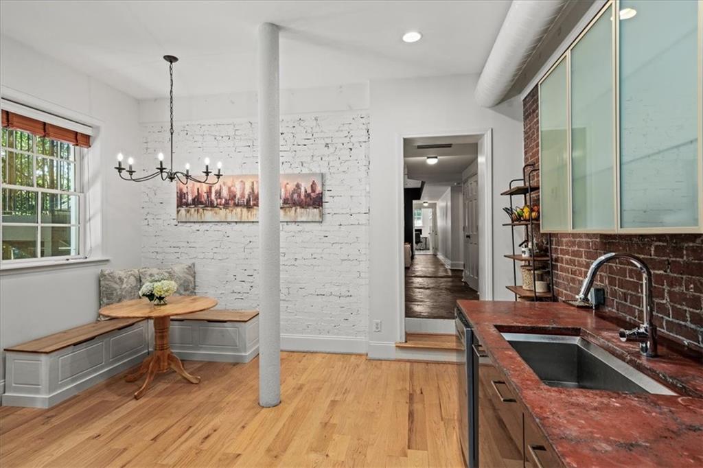 Welcome to Seven Oaks—an iconic boutique building just one block off Peachtree Street and moments from the Beltline, Bobby Jones Golf Course, shops, restaurants, and everything Buckhead has to offer. This rare ground-floor loft spans over 2,400 square feet and lives like a home, featuring a private, fenced terrace with brick patio and low-maintenance turf—the perfect blend of indoor-outdoor living right in the city. Inside, you’ll find soaring ceilings from 9 to 14 feet, creating a dramatic and flexible space that adapts to your lifestyle. This unit seamlessly blends industrial style with warmth and texture, featuring a mix of polished concrete and refinished hardwood floors, updated lighting and recessed fixtures, and designer accent walls throughout. The open-concept floor plan includes two spacious bedrooms with ensuite baths, an additional half bath for guests, and two versatile bonus rooms ideal for a home office, gym, media room, or guest space. The living area boasts a full dining space and a stylish eat-in kitchen with banquette seating—perfect for entertaining or everyday living. The primary suite includes a walk-in closet with custom built-ins, and the Waterworks bathrooms showcase high-end Duravit and Hansgrohe fixtures. This was the builder’s personal unit, so it’s packed with extra touches and built to impress. Plus, enjoy super low HOA dues, plenty of additional storage and the convenience of step-less entry—walk straight in from your two assigned parking spots with ease. Whether you're downsizing from a larger home or just want stylish, oversized loft living in a prime location, this one-of-a-kind condo is a rare Buckhead find. This home may qualify for a below-market interest rate — starting as low as 4.5% — for eligible buyers who use the seller’s preferred lender. Ask for details and don't miss out, schedule your showing today!