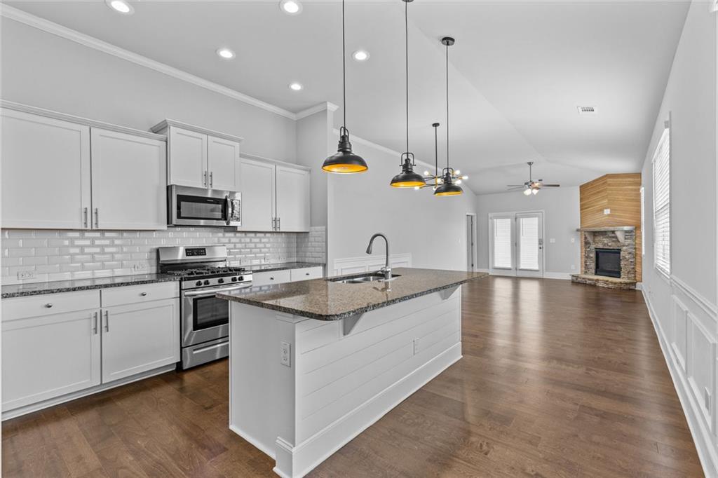 Welcome to your dream home in the heart of Sterling on the Lake! This beautifully maintained 3-bedroom, 2-bath ranch offers comfort, charm, and community living at its finest. Built in 2019 and thoughtfully designed, this home features an open floor plan with soaring 10-foot ceilings, gleaming hardwood floors, and a bright, airy living space perfect for entertaining. The gourmet kitchen is the centerpiece of the home, boasting granite countertops, a large island, stainless steel appliances, and crisp white cabinetry. The inviting family room includes a cozy gas fireplace and overlooks a private backyard with a covered patio—ideal for morning coffee or evening relaxation. The spacious primary suite features a tray ceiling, large walk-in closet, and spa-like bathroom with dual vanities and a tiled walk-in shower. Two additional bedrooms and a full bath offer flexibility for guests, office space, or family. Located in the highly sought-after Sterling on the Lake community, you’ll enjoy resort-style amenities including a 75-acre lake with private dock, miles of scenic trails, multiple pools, tennis courts, playgrounds, a lakeside clubhouse, on-site library, and year-round community events. All of this, just minutes from top-rated schools, shopping, dining, and Lake Lanier! Don’t miss this opportunity to own a move-in-ready home in one of Flowery Branch’s most desirable neighborhoods. Schedule your showing today and come experience the lifestyle you’ve been waiting for!