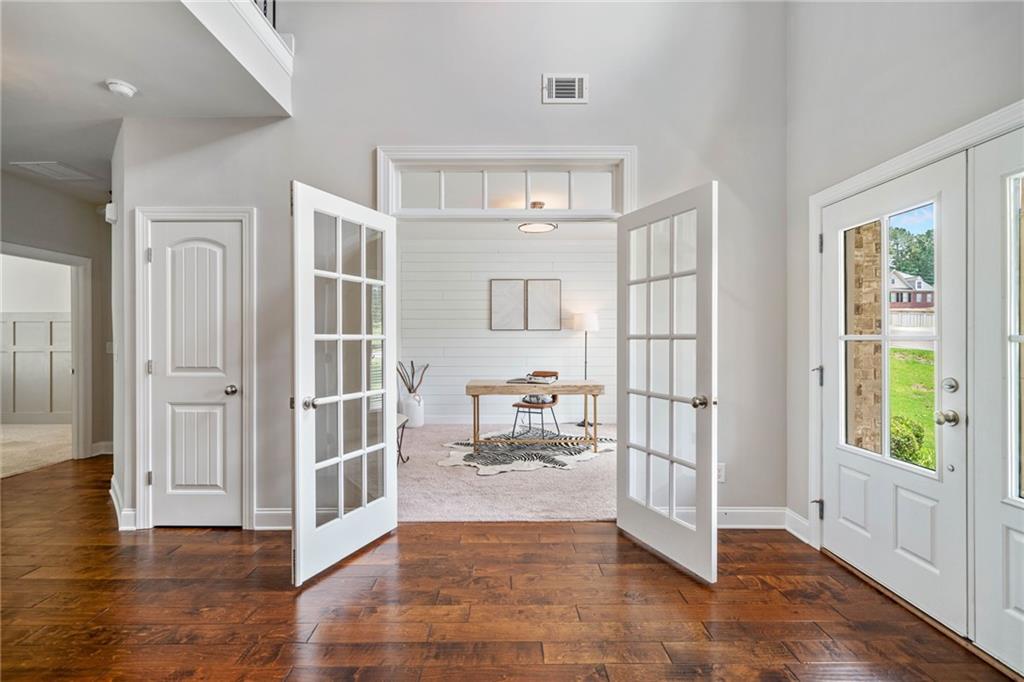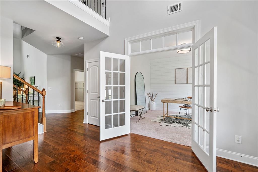 PRICE ADJUSTED!! Welcome home! Nestled in the highly sought-after Hunters Walk community, this stunning two-story residence offers timeless curb appeal with its charming covered front porch and beautifully manicured yard. Inside, you'll find a thoughtful floor plan that blends comfort with style. A private office with French doors and custom wainscoting sits just off the foyer, while a main-level guest suite provides the perfect setup for visitors or multigenerational living. The open-concept main living area is truly the heart of the home. The chef-inspired kitchen features granite countertops, a stylish tile backsplash, and a large center island with a custom built-in granite table—perfect for casual meals or entertaining. The bright and inviting family room nearby creates a cozy yet spacious atmosphere ideal for gatherings. Step outside and unwind in your own backyard sanctuary. An expansive concrete patio is perfect for lounging or dining al fresco, while a separate fire pit area sets the scene for memorable evenings under the stars. Gardeners will love the fenced-in flower and vegetable beds, complete with their own irrigation system. Upstairs, the spacious primary suite is a peaceful retreat with a spa-like ensuite bath. Three additional bedrooms provide plenty of flexibility for family, guests, or work-from-home needs—accompanied by well-appointed bathrooms designed for comfort and convenience. Life in Hunters Walk means more than just a beautiful home—it’s a lifestyle. Enjoy resort-style amenities including a sparkling pool, tennis courts, a playground, walking trails, and a pavilion with grills, all within a welcoming, sidewalk-lined neighborhood that hosts community events throughout the year. Located in vibrant Cumming, you’re just minutes from popular spots like Sawnee Mountain Preserve, Ducktown Park, and Lake Lanier. Enjoy shopping, dining, and entertainment at nearby Halcyon and Vickery Village, or spend weekends exploring scenic trails and family-friendly recreation options. This home truly offers the perfect blend of comfort, function, and location in one of Forsyth County’s most desirable communities.