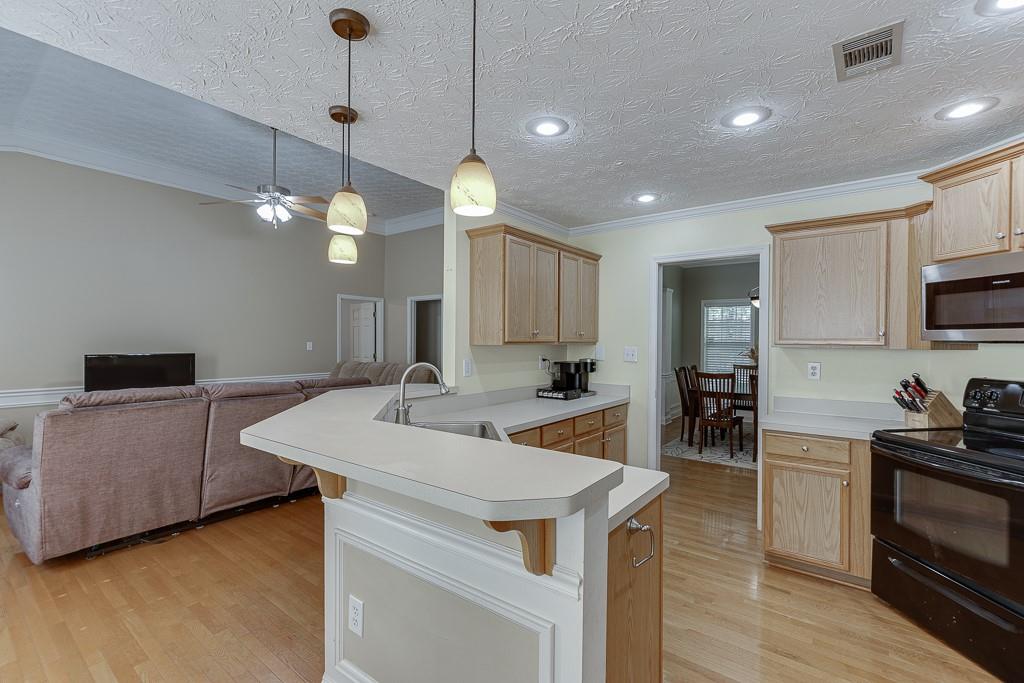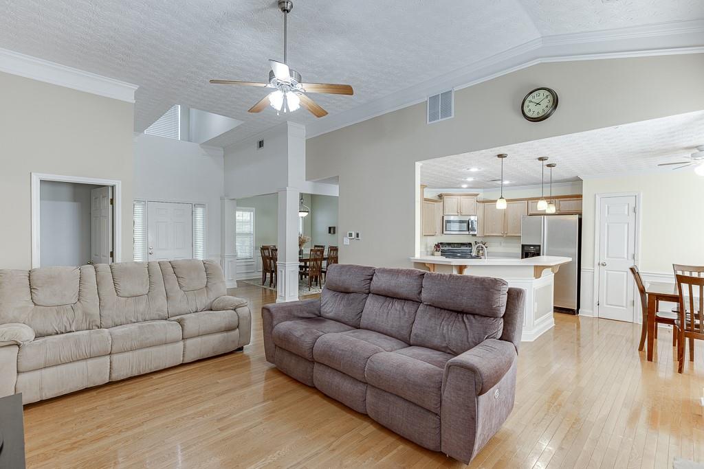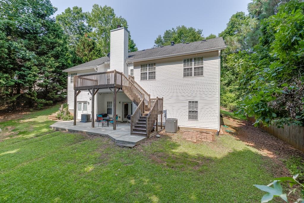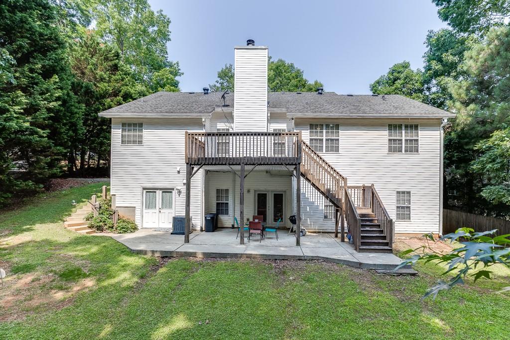 Tucked away on a wooded lot in one of Flowery Branch's favorite swim/tennis communities, this spacious 5-bedroom, 3.5-bath split bedroom plan offers room to spread out and enjoy every season of life. A full, covered front porch welcomes you home, perfect for morning coffee or evening chats. Inside, the main level features open, comfortable living spaces including a family room with hardwood flooring, vaulted ceiling and wood burning fireplace, a formal dining room, and bonus room ideal for a home office, playroom, or guest space. The kitchen boasts a breakfast room that overlooks the beautiful wooded lot, stainless steel appliances, hardwood flooring, pantry and wood cabinetry. The primary suite is a true retreat with a tray ceiling, a large sitting area that makes the perfect quiet reading nook or workspace, and a spacious ensuite bath featuring a soaking tub, separate shower, and a walk-in closet you'll love. But the real surprise is downstairs a full finished basement with a complete in-law or teen suite. It has its own kitchen, living room, laundry area, private bedroom and full bath, flex room that could easily be a second bedroom, plus a huge bonus area with a half bath ideal for a rec room, gym, or craft space. Outside, you'll love the peaceful, wooded backyard and the easy access to I-985, Lake Lanier, downtown Flowery Branch, and the popular weekly farmers market. With restaurants, shopping, and outdoor fun all just minutes away, this home truly has the space, setup, and location to check every box.