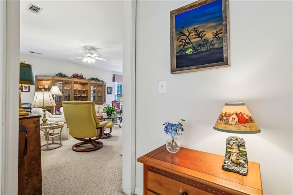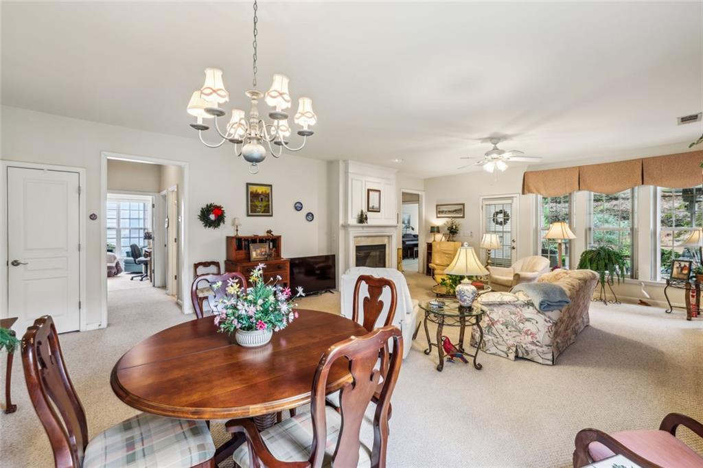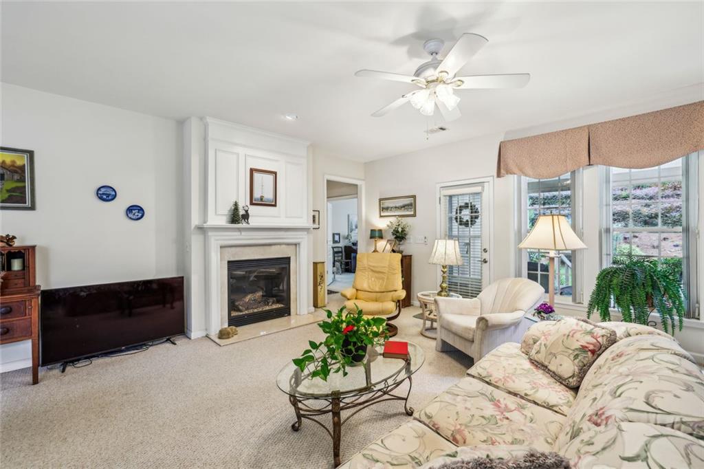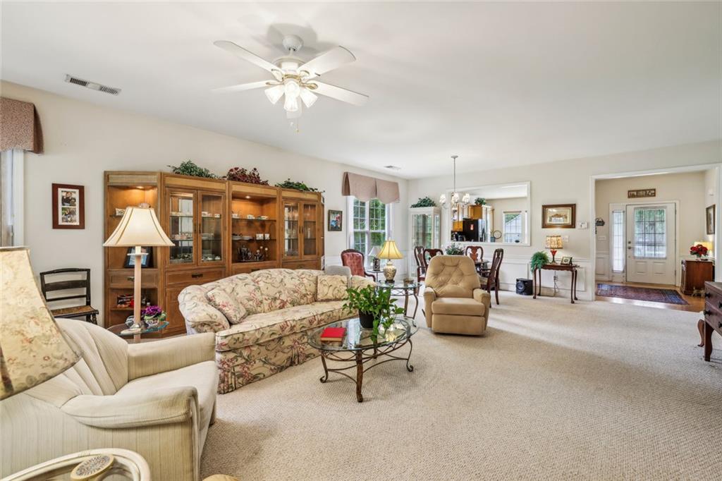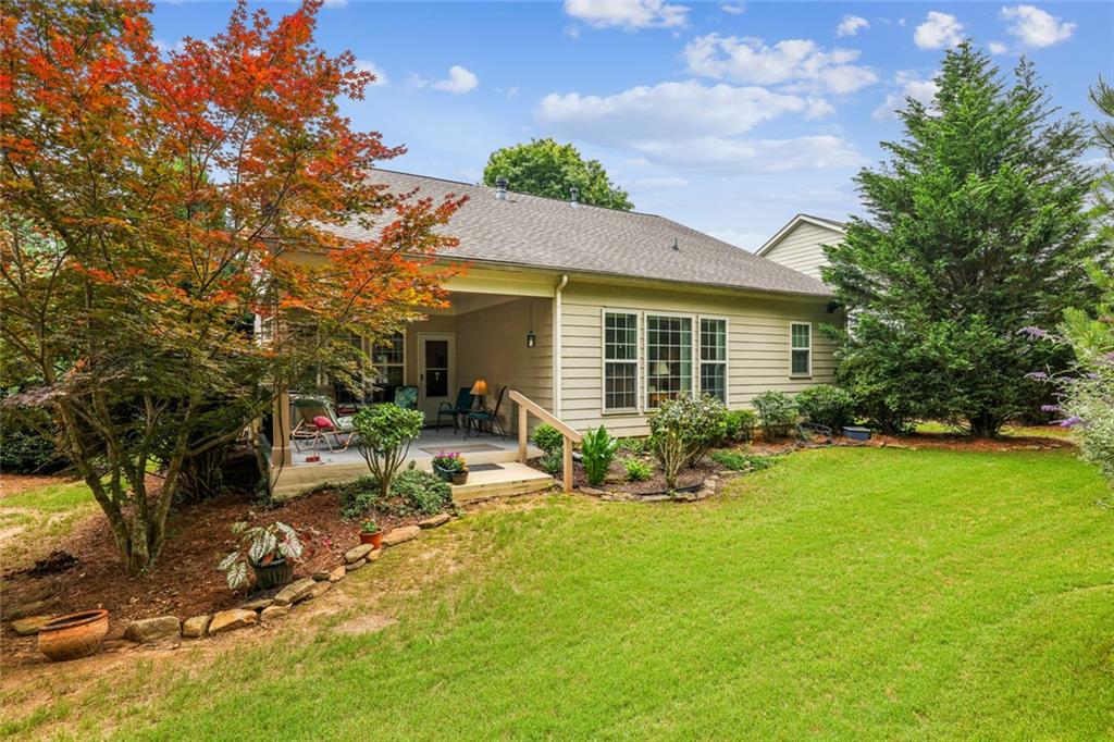 Charming Craftsman-Style Ranch in Kingswood at Castleberry Welcome to this cozy and inviting 3-bedroom, 2-bath Craftsman Ranch located in the sought-after Kingswood at Castleberry community in Cumming. Excellent curb appeal and a welcoming covered front porch set the tone for this home’s warmth and charm. This friendly, amenity-rich neighborhood offers a clubhouse, large pool, pickleball courts, dog parks, sidewalks, and an active social committee—ideal for anyone looking to settle into a vibrant, connected lifestyle. Inside, a formal foyer opens into a spacious Great Room with a gas fireplace and combined living/dining layout—perfect for entertaining. The open-concept Kitchen connects seamlessly to the Great Room and features granite countertops, a large island, warm cabinetry, built-in desk, and a sunny breakfast area—one of the largest kitchen layouts in the subdivision. A ramp with handrail from the garage leads directly into the Kitchen and Foyer, enhancing accessibility. The Primary Suite includes wide double doors, a trey ceiling, large windows overlooking the serene backyard, and a generous walk-in closet. The ensuite bath features dual vanities, a separate tub and shower, and an open water closet. (Note: minor updates could improve bathroom entrance, shower and closet accessibility.) Two additional bedrooms—ideal for guests, home office, or hobbies—share a full bath and are tucked away for privacy. A full-sized Laundry Room adds convenience. Out back, a large covered patio offers a peaceful retreat with views of the landscaped yard. It can easily be screened or converted to a 3-season room for additional year-round enjoyment. Additional Notes: Listing Agent has quotes available for replacing existing carpet with luxury vinyl plank (LVP) or new carpeting. Current owner is transitioning to Assisted Living; some personal belongings may still be in the home during showings.
