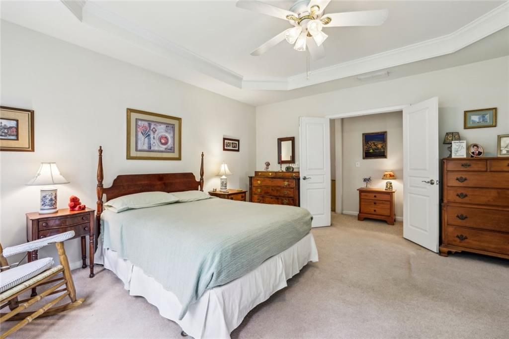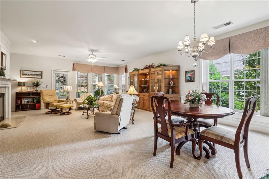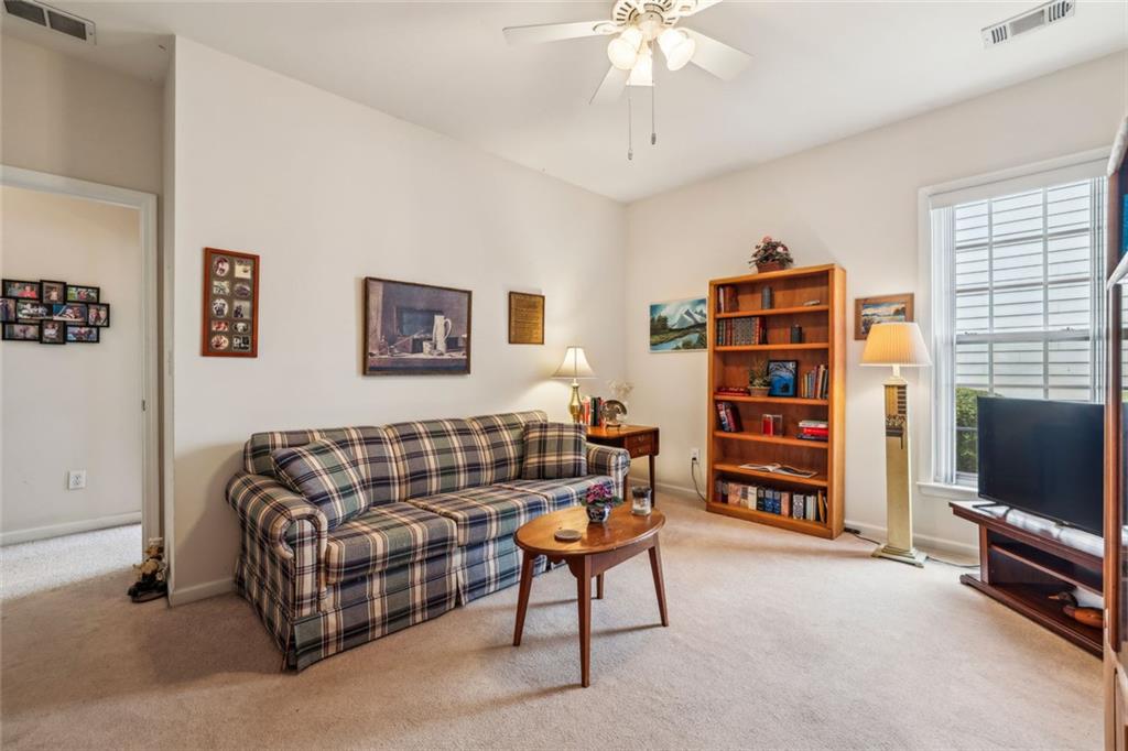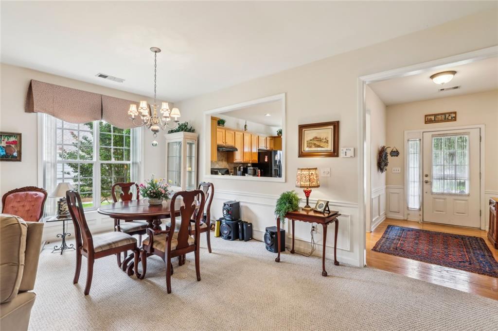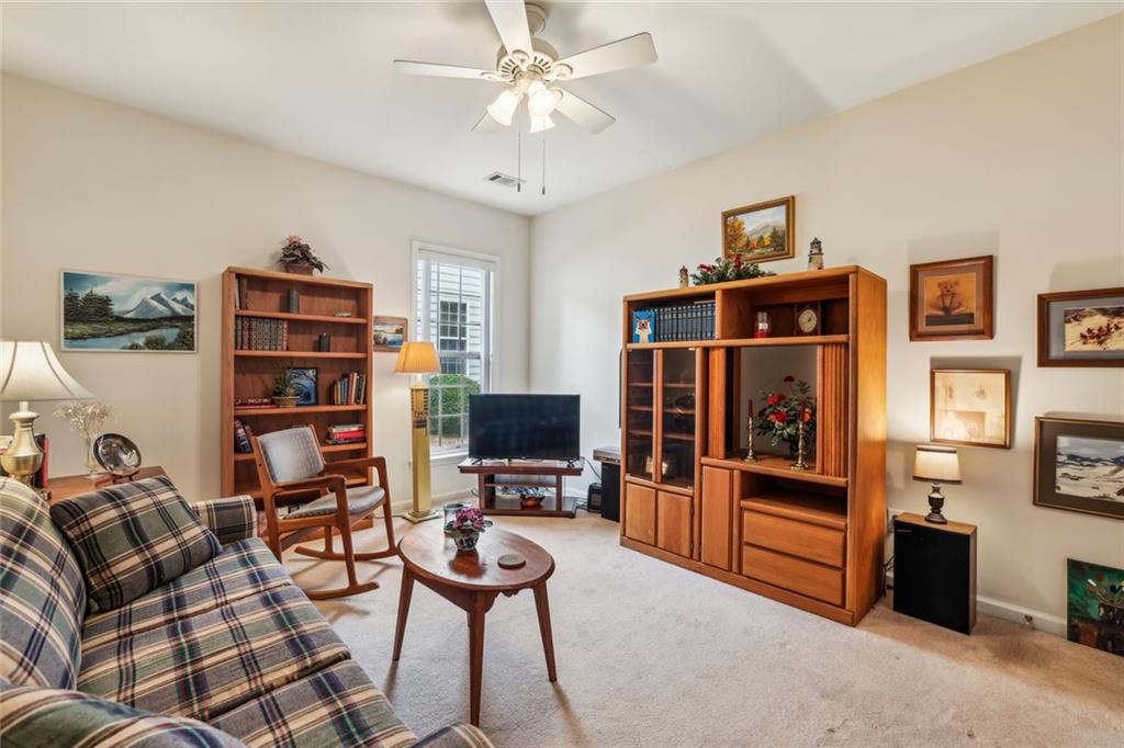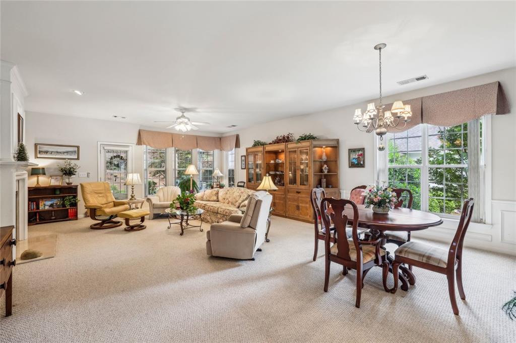 Charming Craftsman-Style Ranch in Kingswood at Castleberry Welcome to this cozy and inviting 3-bedroom, 2-bath Craftsman Ranch located in the sought-after Kingswood at Castleberry community in Cumming. Excellent curb appeal and a welcoming covered front porch set the tone for this home’s warmth and charm. This friendly, amenity-rich neighborhood offers a clubhouse, large pool, pickleball courts, dog parks, sidewalks, and an active social committee—ideal for anyone looking to settle into a vibrant, connected lifestyle. Inside, a formal foyer opens into a spacious Great Room with a gas fireplace and combined living/dining layout—perfect for entertaining. The open-concept Kitchen connects seamlessly to the Great Room and features granite countertops, a large island, warm cabinetry, built-in desk, and a sunny breakfast area—one of the largest kitchen layouts in the subdivision. A ramp with handrail from the garage leads directly into the Kitchen and Foyer, enhancing accessibility. The Primary Suite includes wide double doors, a trey ceiling, large windows overlooking the serene backyard, and a generous walk-in closet. The ensuite bath features dual vanities, a separate tub and shower, and an open water closet. (Note: minor updates could improve bathroom entrance, shower and closet accessibility.) Two additional bedrooms—ideal for guests, home office, or hobbies—share a full bath and are tucked away for privacy. A full-sized Laundry Room adds convenience. Out back, a large covered patio offers a peaceful retreat with views of the landscaped yard. It can easily be screened or converted to a 3-season room for additional year-round enjoyment. Additional Notes: Listing Agent has quotes available for replacing existing carpet with luxury vinyl plank (LVP) or new carpeting. Current owner is transitioning to Assisted Living; some personal belongings may still be in the home during showings.