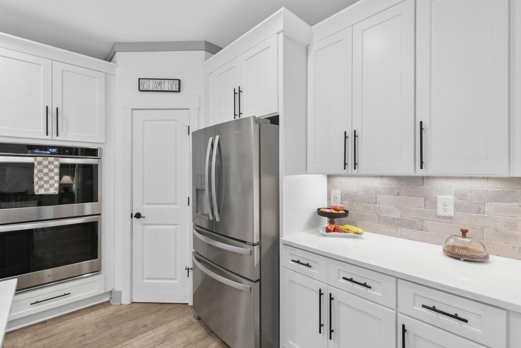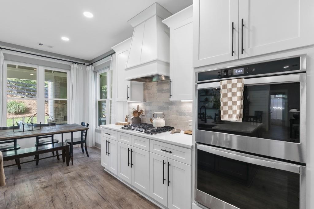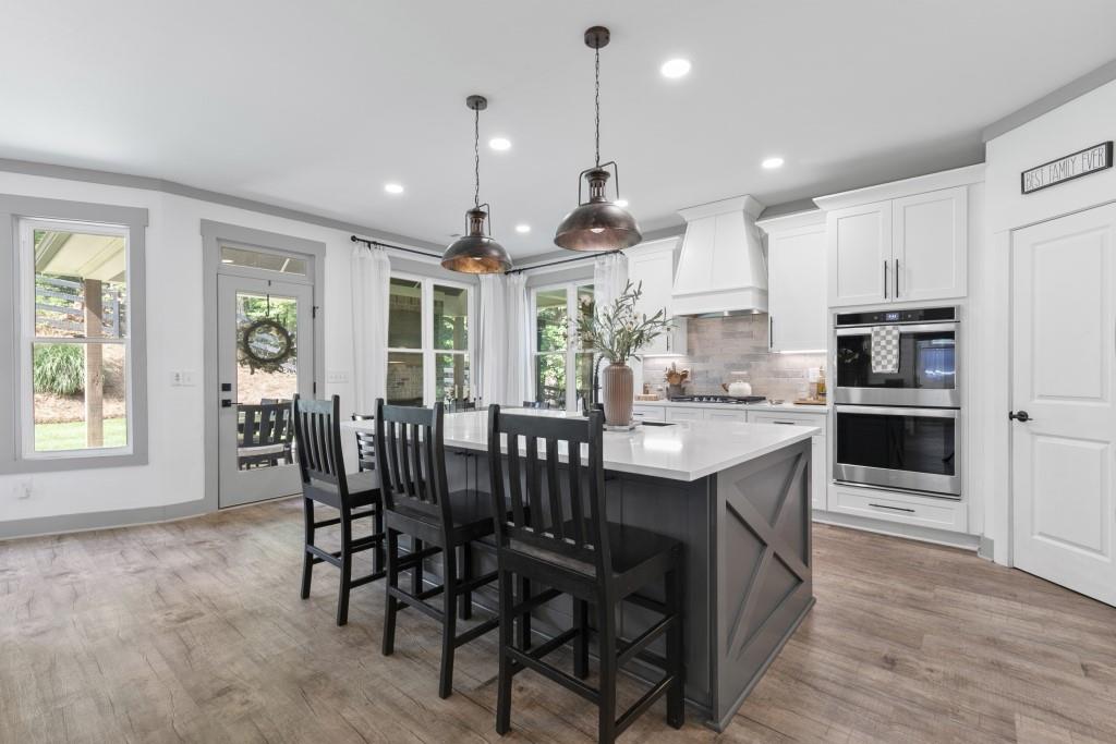 - KitchenBreakfast Bar, Cabinets White, Eat-in Kitchen, Kitchen Island, Pantry, Stone Counters, View to Family Room