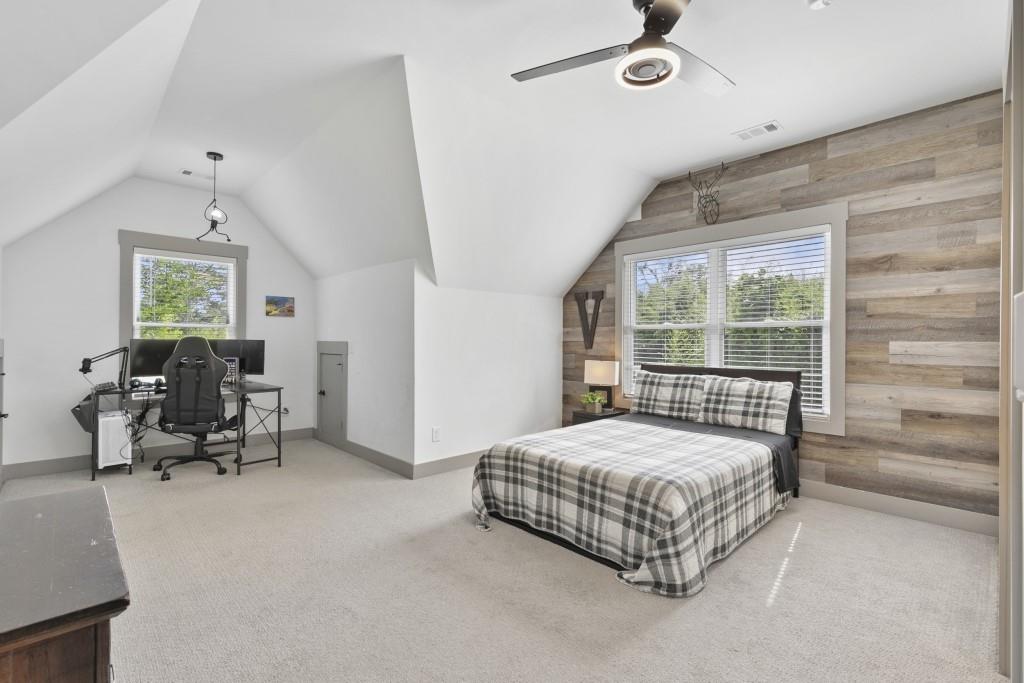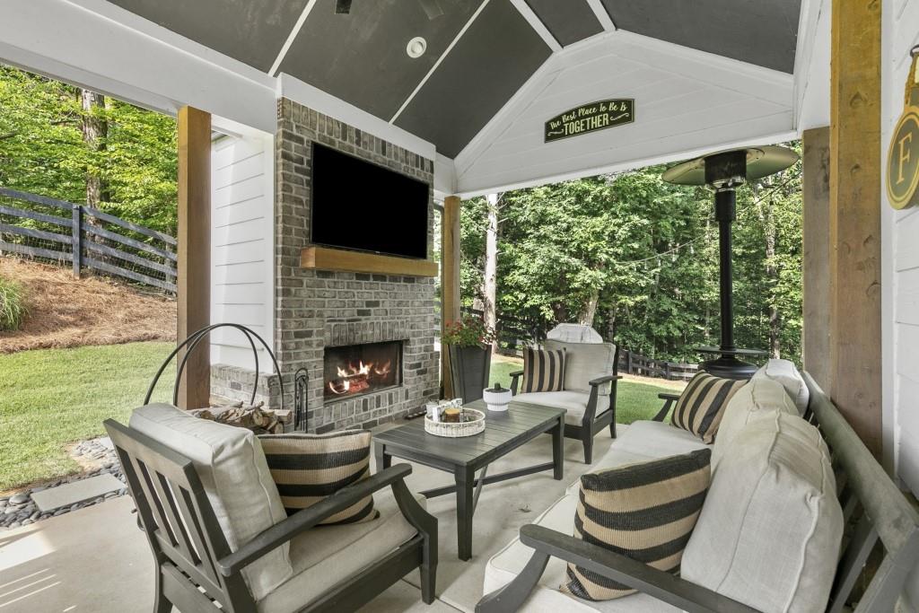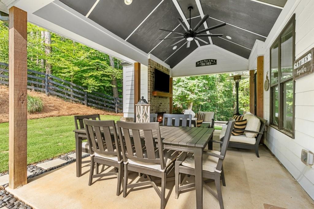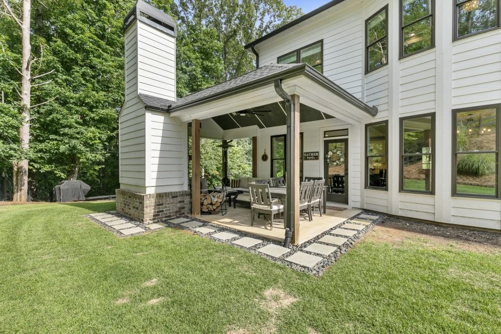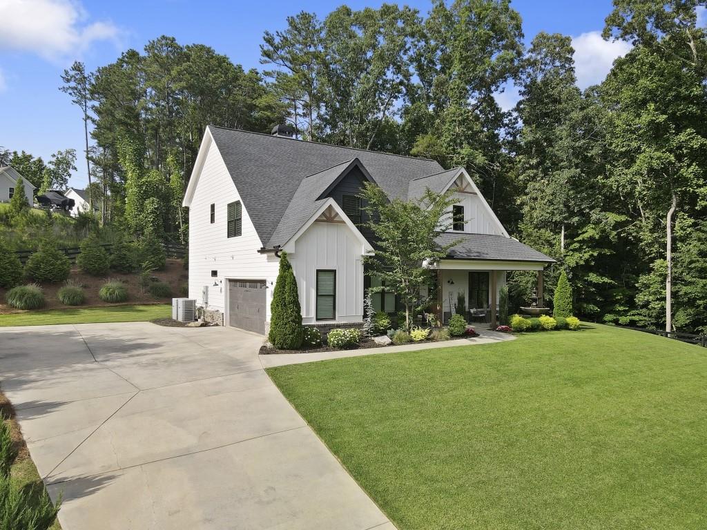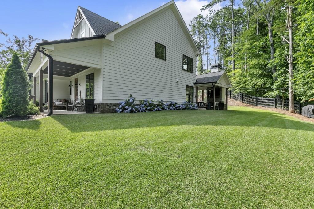 Contingency contract expired! Hurry, this beautiful home will sell quickly. No HOA. 4 Bedroom, 3 Bathroom, 2 story modern farmhouse nestled on 2 acre private lot with 1 acre fenced in with private access gate. Upgrades galore! Inviting outdoor area with fireplace. Great for entertaining. Open concept. Custom Kitchen. Huge master suite with gorgeous bathroom. Elegant exterior lighting on home and fence. Irrigation system. Just a 10 min walk or 2 minute car ride to 2 Mile Creek Park boat ramp, nature walk. Great Forsyth County Schools. Truly a one of a kind amazing property.