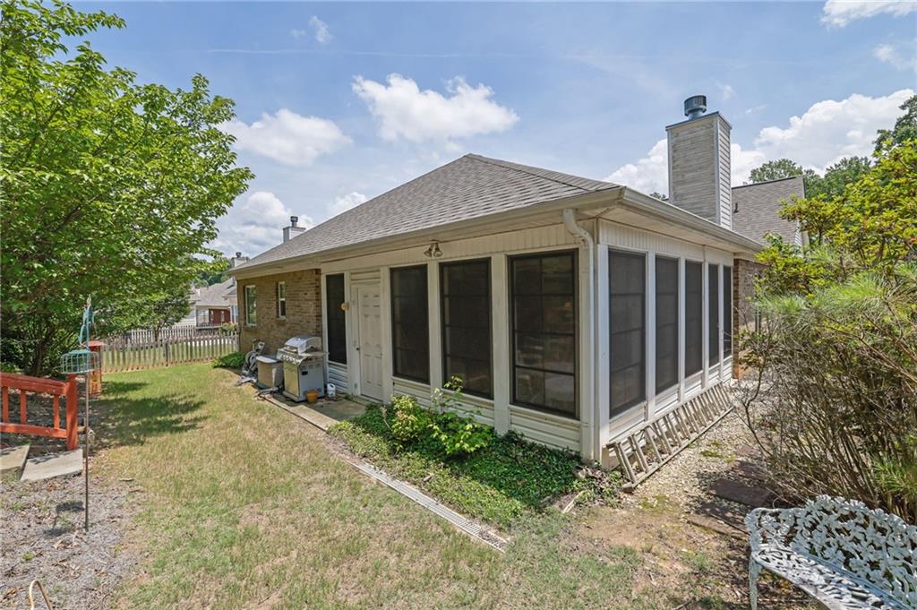 Charming ranch in a quiet Flowery Branch neighborhood! This well-maintained home offers true single-level living with a desirable split-bedroom floor plan. The spacious primary suite is privately situated on one side of the home, offering a peaceful retreat. On the opposite side, two secondary bedrooms share a newly renovated full bathroom. At the heart of the home, enjoy an open-concept layout connecting the kitchen, dining, and living areas—ideal for everyday living and easy entertaining. The interior has been freshly painted and the carpets were just professionally cleaned, making this home truly move-in ready. A large enclosed three-season room provides additional space to relax or host guests. Step outside to a private back patio and storage shed for added convenience. Located in a quiet, established community, this home is full of charm and ready for its next chapter!