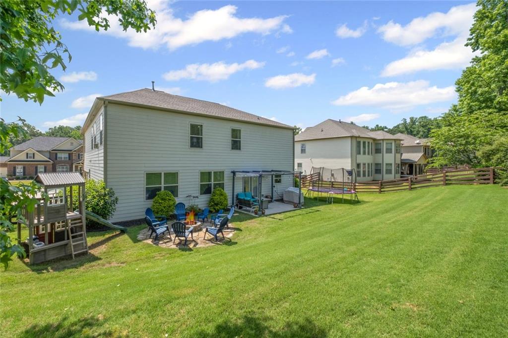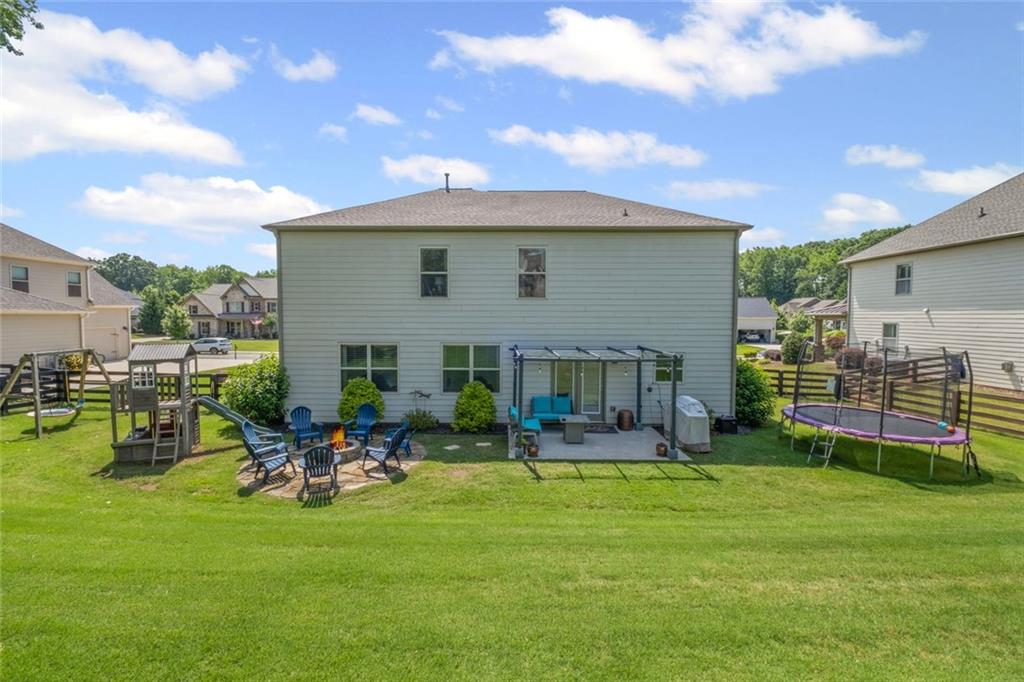 Here's the PERFECT backyard for your summer fun, and it comes with a beautiful 5-bedroom, 4-bath home! A soaring two-story foyer welcomes you inside where you'll find two separate living spaces: a two-story living room, and a fireside family room. This home has gorgeous hardwood floors, upgrades and custom millwork throughout, and an impressive coffered ceiling in the dining room. The heart of the home is a fantastic, upgraded kitchen with stainless appliances, double ovens, granite counters and a breakfast bar. The kitchen overlooks the huge family room with a stacked-stone fireplace and built-in cabinetry. Guests will enjoin the main level en-suite bedroom/bath or it could be a great office! And upstairs, there's so much space! A bright, open loft is ideal as a media room, home office, or play area. The luxurious primary suite is a true retreat, complete with a roomy sitting area or office with a fireplace, and a spa-inspired bath with double granite vanities, a shower and a soaking tub. You'll also find three additional bedrooms, and two more baths upstairs. Outside, enjoy relaxing evenings on the patio overlooking a large, fenced backyard, with a custom flagstone firepit area, and lots of room for pets, play, or entertaining. This lovingly maintained home also features an expansive, oversized garage with room for a workshop, plus a newer roof, and new HVAC systems. Don't miss this opportunity to enjoy worry-free living in a fantastic neighborhood!