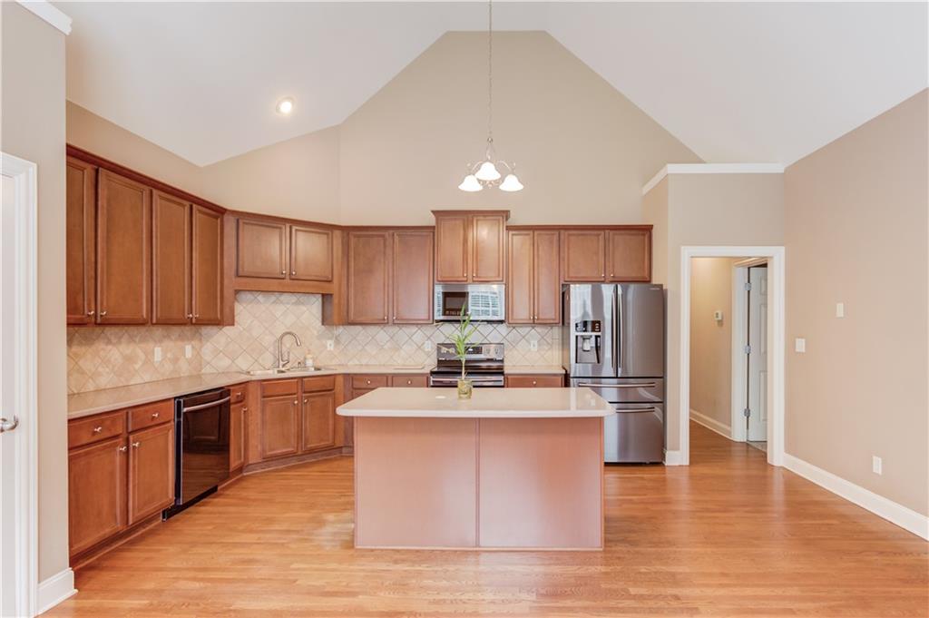 - KitchenCabinets Stain, Eat-in Kitchen, Kitchen Island, Pantry, Solid Surface Counters