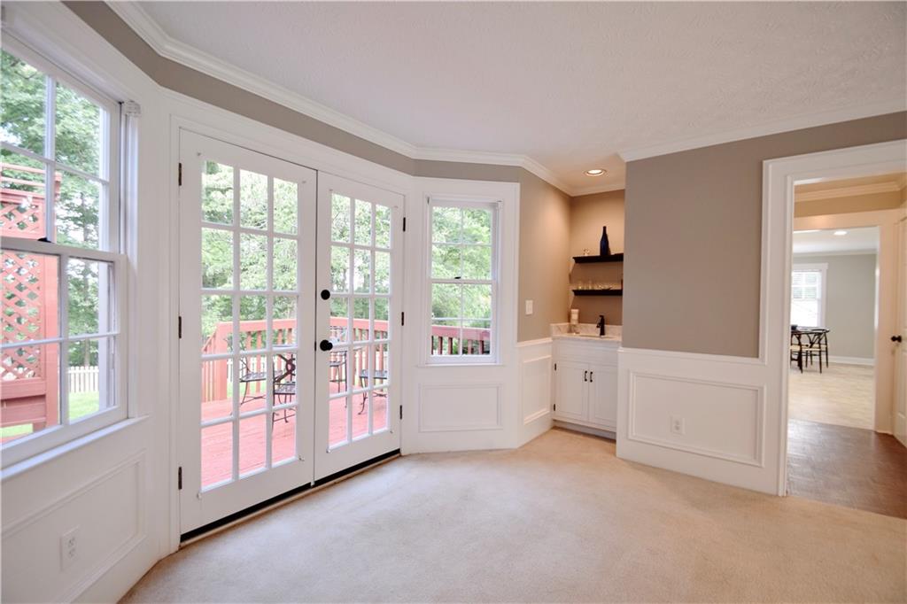 Immaculate, move-in ready home in sought-after North Gwinnett High School cluster – No HOA! Beautifully updated home offers modern comfort, timeless style and an unbeatable location! Features include NEW baths, updated kitchen, finished partial basement, nearly new roof and water heater, and fenced back yard on gorgeous, wooded cul-de-sac lot! Welcoming entry leads to fireside great room featuring granite wet bar and bayed French doors that open to your freshly painted deck with built-in seating and privacy wall overlooking fully fenced back yard – offering the perfect place to relax and watch kids and pets at play! Renovated kitchen is a chef’s dream, showcasing gorgeous counters and backsplash, breakfast bar, under counter lighting, stainless appliances, abundant cabinetry and bright breakfast room – all designed for optimal entertaining flow! Oversized and convenient main-level laundry and pantry makes staying organized easy! Retreat to the luxurious primary suite with a BRAND NEW magazine-worthy and spa-like bath complete with a stand-alone soaking tub, double tiled walk-in shower, abundant storage and dual stone vanity! Two additional spacious bedrooms share updated hall bath. Partially finished basement with closets offers flex space for play area, crafting, home theatre, office or fitness area! All situated in a friendly NO HOA neighborhood on a beautifully wooded and fully fenced half-acre lot! This backyard oasis offers privacy, ample space for play, beautiful views and peaceful relaxation! Conveniently located near top-rated schools, parks, downtown Sugar Hill, Suwanee Town Center, Sugar Hill Greenway, dining, entertainment and even walking distance to N Gwinnett HS! Call to schedule your tour today!