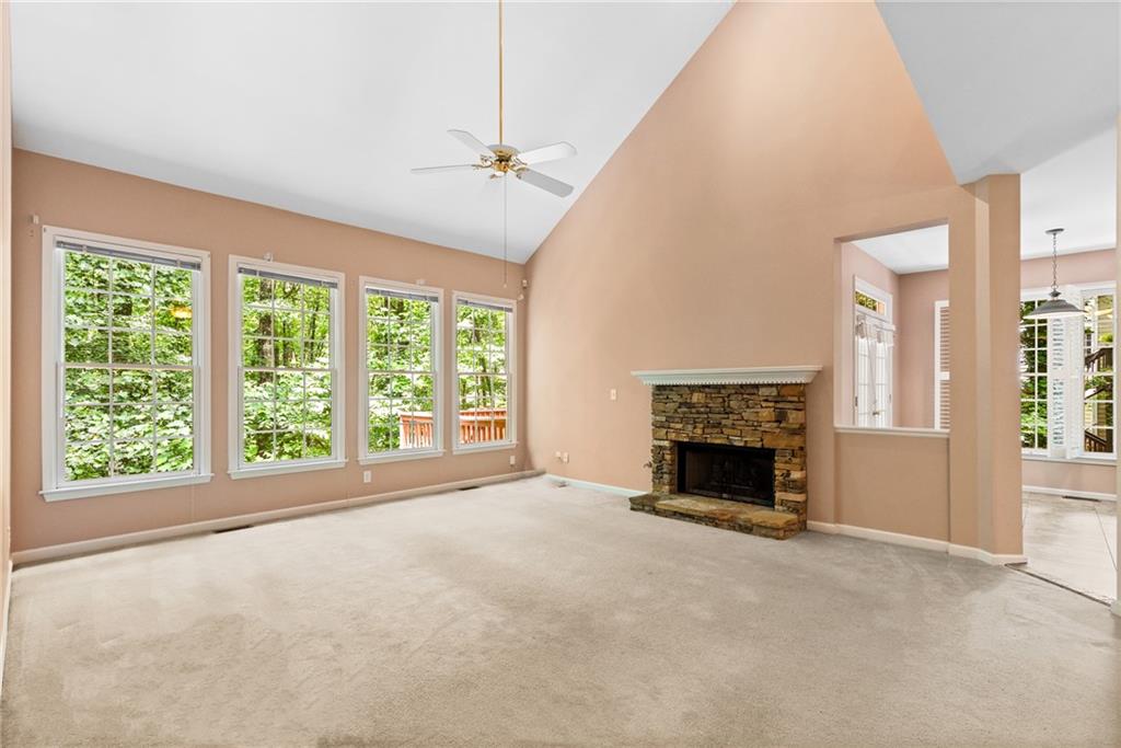 Tucked away in a private, wooded setting, this 4-bedroom, 2.5-bath home offers the perfect blend of comfort, convenience, community and VALUE. Welcome home to this well-maintained residence nestled in a highly sought-after swim/tennis community in the top-ranked Forsyth County school district! The spacious primary suite is conveniently located on the main level (ideal for easy living and added privacy) and features a walk-in closet, dual vanities, garden tub, and separate shower. Enjoy an open floor plan with a two-story great room complete with a cozy gas fireplace, a separate formal dining room, and a formal living room—ideal for entertaining. The kitchen overlooks the great room and offers an inviting and functional layout. A main-level laundry room and 2-car garage provide added convenience. As you continue upstairs, you will find three generously sized secondary bedrooms, a loft area and bathroom with double vanity. The full, unfinished, daylight basement is stubbed for a bathroom and offers endless possibilities for future expansion, storage, or a custom retreat. Situated on a private, wooded 0.53-acre lot, this home also boasts recent upgrades including an architectural shingle roof for added durability and curb appeal and a new HVAC system. Neighborhood amenities include tennis courts, a swimming pool, and a playground — perfect for active lifestyles. Conveniently located near shopping, dining, and major highways with low Forsyth County taxes—don’t miss this one!