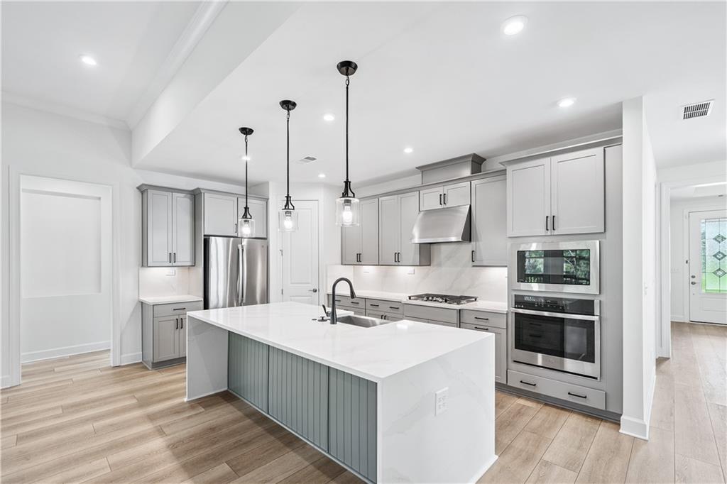 - AppliancesDishwasher, Disposal, Electric Oven/Range/Countertop, Gas Cooktop, Microwave, Range Hood, Self Cleaning Oven, Tankless Water Heater