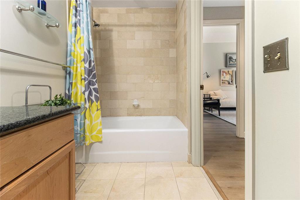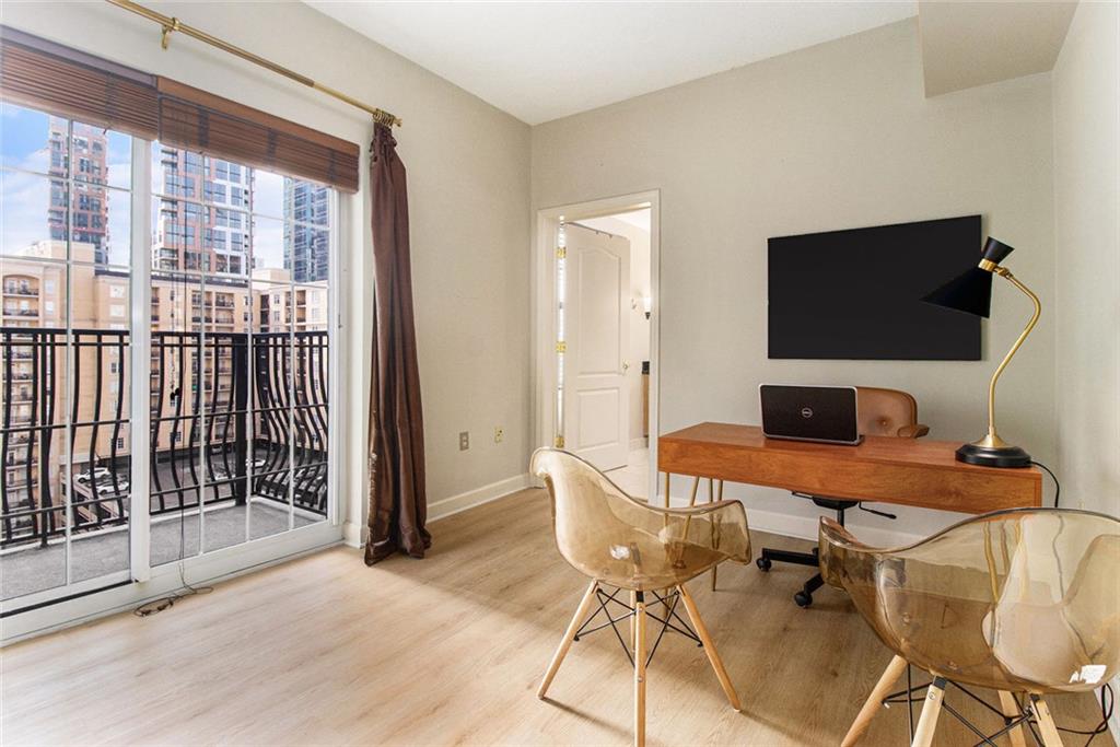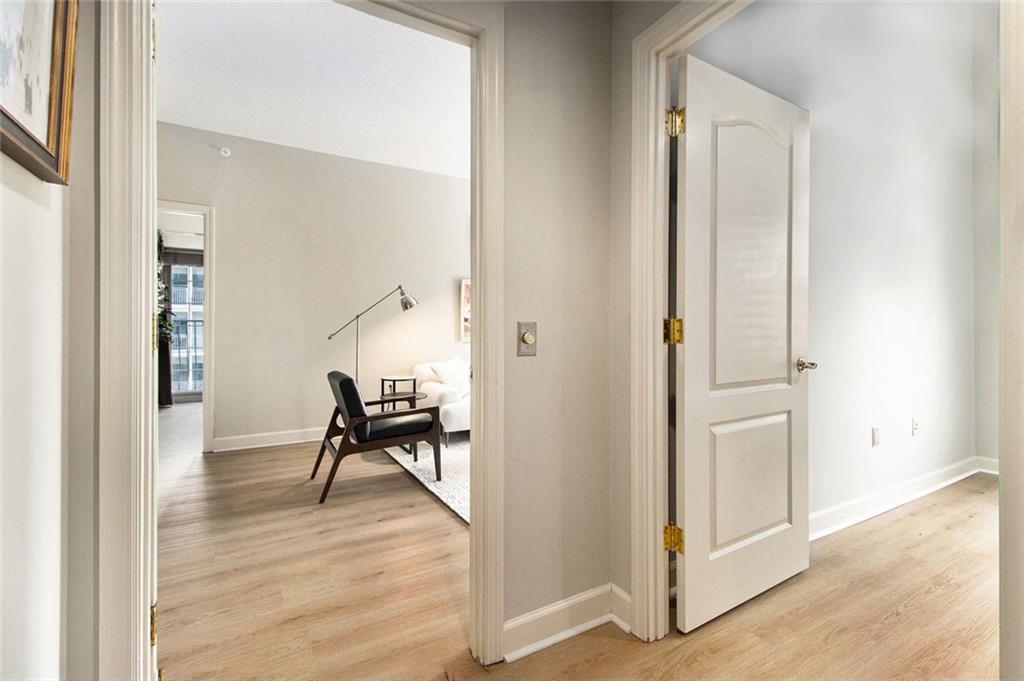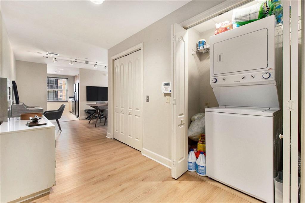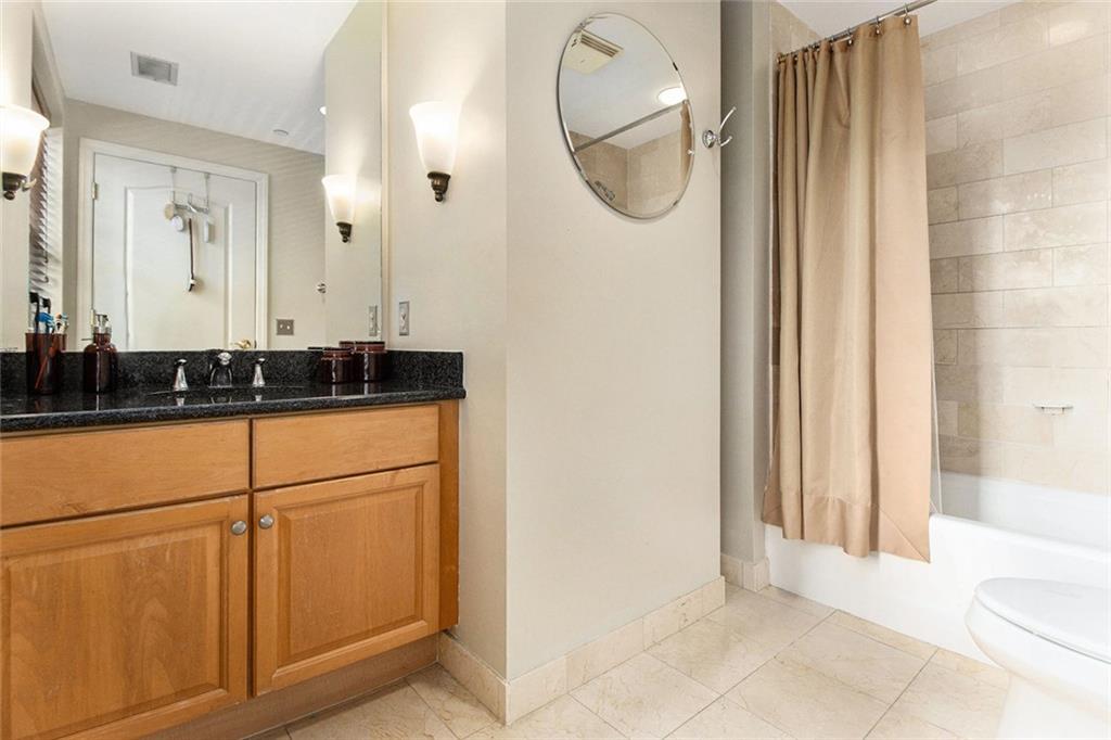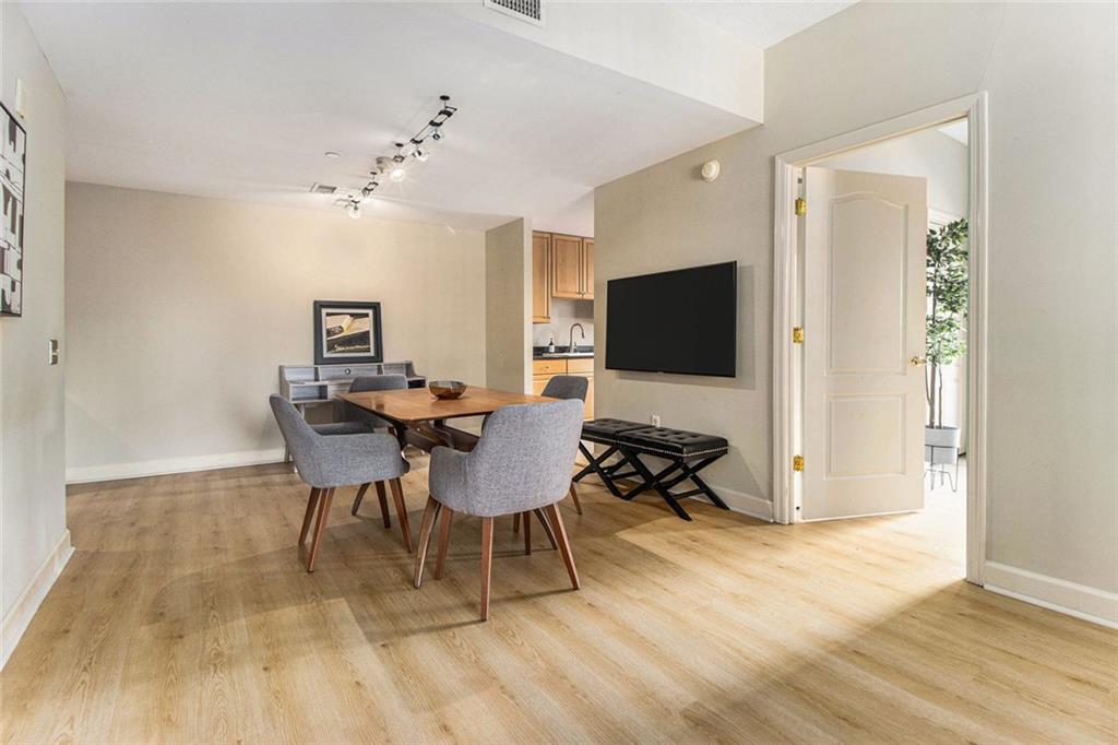 Welcome to the Mayfair Renaissance in the heart of Midtown Atlanta. This 2-bedroom, 2-bathroom condo offers a move-in ready opportunity for urban living at its best. Located just steps from Piedmont Park, top dining, and Midtown's vibrant attractions, this property combines convenience with comfort and luxury. The spacious living room features large windows that provide abundant natural light and views of the Midtown skyline, and the building's Western garden. The open dining area flows seamlessly from the living space, making it ideal for entertaining. The primary bedroom includes double closets, a private ensuite bathroom, and a private balcony with views Piedmont Park, while the second bedroom also offers ample space and a full ensuite bath. The kitchen features granite countertops, a large fridge, microwave, range, and dishwasher. Additional features include a 2 parking spots in a secure garage, new flooring throughout the main living areas and marble tile flooring in the kitchen and baths, along with laundry room with full-size washer and dryer. Residents of the Mayfair Renaissance enjoy amenities such as a gym, saline outdoor pool, theater room, library, club room, grilling area, and a peaceful gazebo. The building provides 24/7 concierge services, including security and package handling. Recent updates to the building include refreshed decor in the lobby and all common areas, and built-in super high-speed Fiber internet that is included in the monthly HOA. Onsite workspaces add convenience for those working from home. Enjoy the best of Midtown living with this well-located and thoughtfully designed condo, offering a perfect blend of urban convenience and a peaceful retreat, just 1/2 block from Piedmont Park and convenient shopping, dining, and arts all within walking distance.