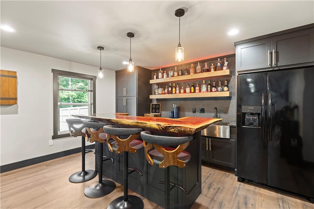 Welcome to 545 Quail Pass — where a 3121 sq ft modern design meets timeless charm in the heart of Dawsonville. This nearly-new, impeccably staged home feels like something straight out of a magazine, offering elevated living across every level — and an unforgettable finished basement that will steal the show. From the moment you step inside, you’ll be greeted with warm, open spaces and a thoughtful layout designed for real life. With plenty of bedrooms for everyone (plus guests!), this home effortlessly blends space and style. The main living area flows into a light-filled kitchen with sleek cabinetry, a large island, and upgraded finishes that make entertaining or everyday meals feel special. Downstairs, discover a timeless and moody basement retreat that feels like a destination in itself. Slate accents and fixtures tie the entire space together, creating a cozy yet sophisticated vibe that’s perfect for hosting game nights, movie marathons, or casual evenings with friends. The stunning live-edge cedar bar top adds a touch of rustic luxury to the oversized kitchenette, giving you everything you need to serve up drinks, snacks, or even full meals without missing a moment of the fun. This level also opens to a spacious, private patio — perfect for fall fire pits, morning coffee, or late-night laughs under the stars. And don’t miss the show-stopping bathroom: wrapped in slate tile with a luxurious rain shower, this spa-inspired space makes every day feel like a five-star getaway. Even the stairwell makes a statement with beautifully tiled walls that elevate the entire look and feel of the home. Every inch of this property has been curated with care — from smart upgrades to the artful staging — so you can move right in and enjoy. Whether you’re gathering upstairs, hosting downstairs, or just soaking in the peaceful setting, 545 Quail Pass is more than a house… it’s home. Located in Dawsonville, you’re close to North Georgia’s best hiking, shopping, dining, and lake life — with easy access to GA 400 and top-rated schools nearby.