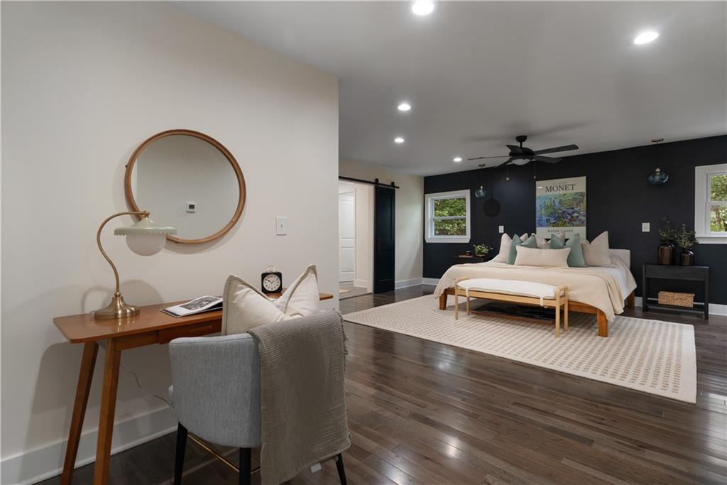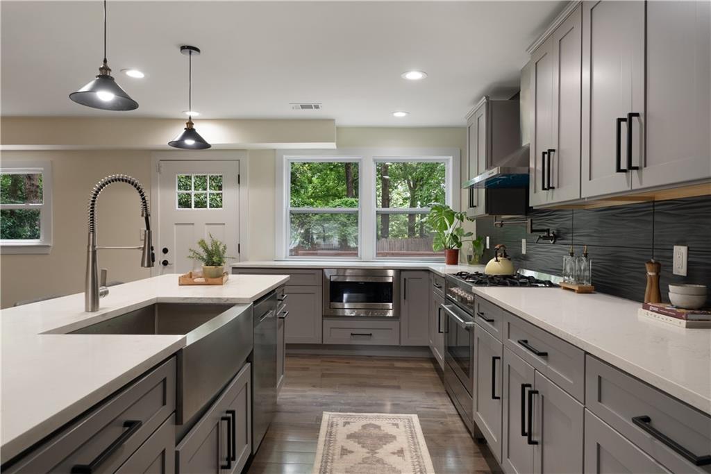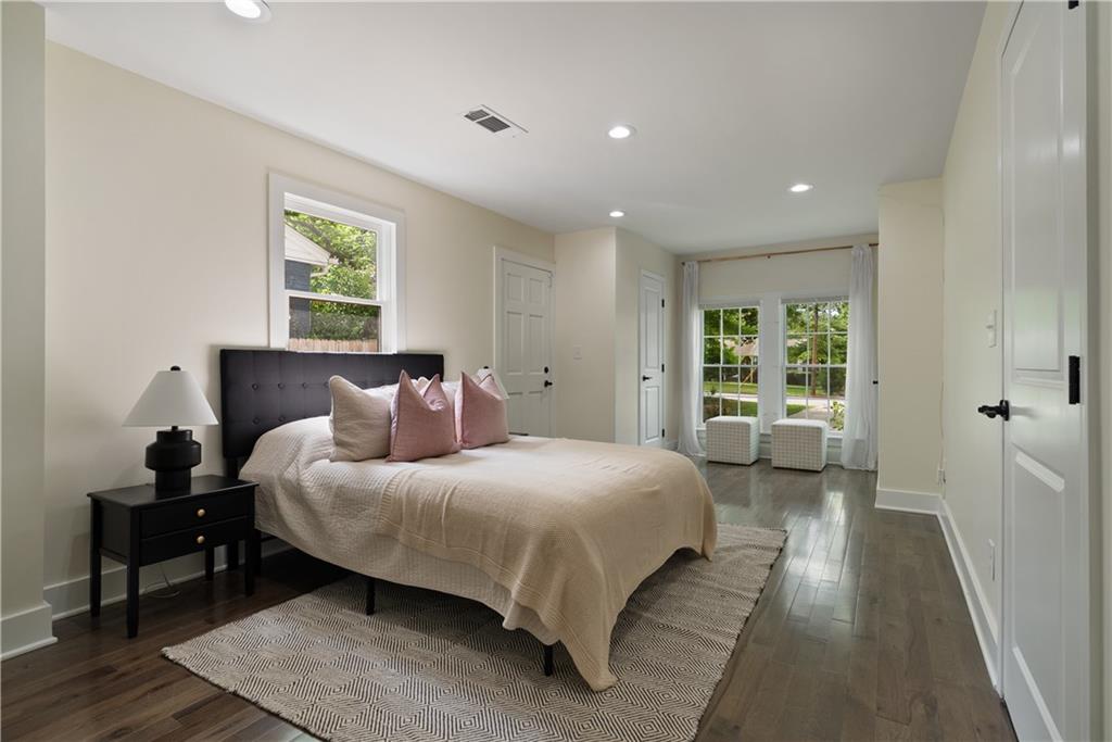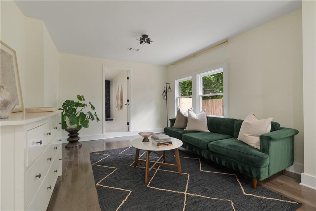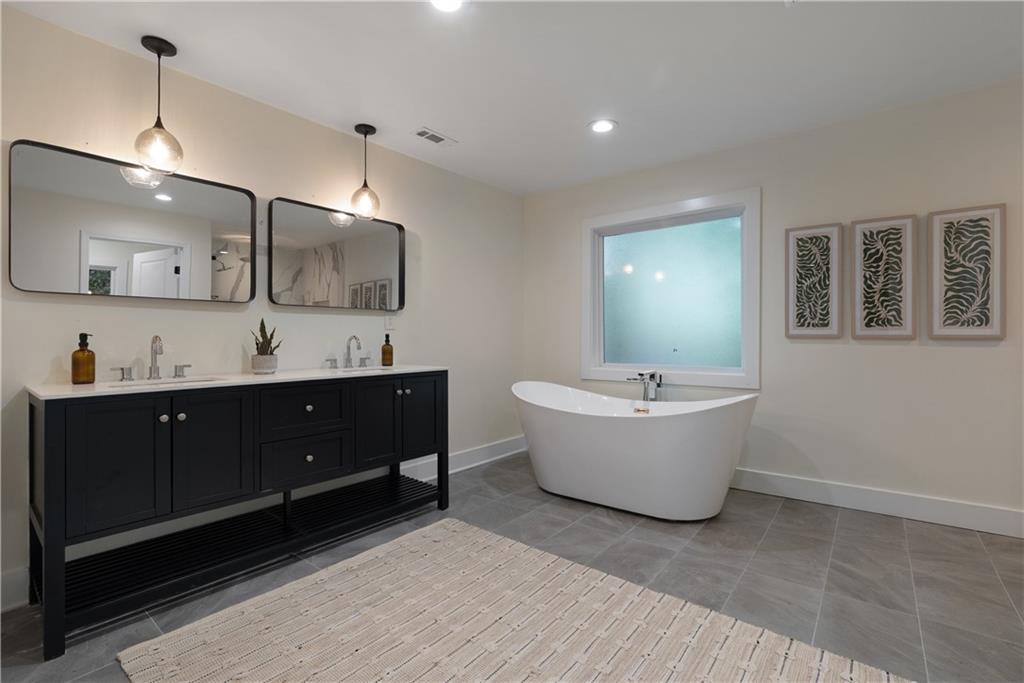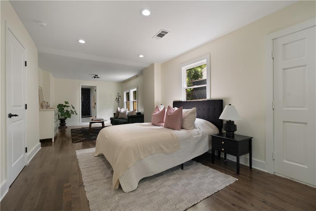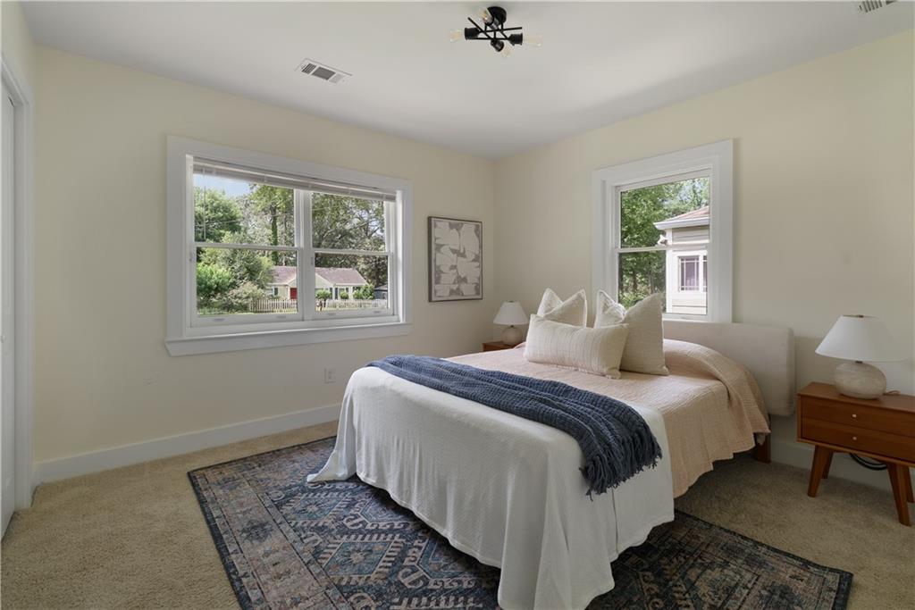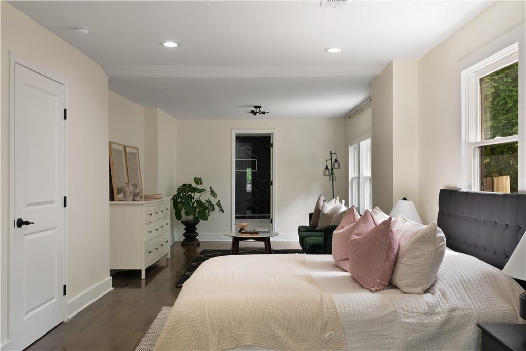 Just minutes from the murals, menus, and music of East Atlanta Village, this thoughtfully designed home delivers more above-grade square footage than most EAV ranches, without the hassle of a basement or the price tag of new construction. It’s rare to find this much functional space, all on a flat, tree-lined lot that offers quiet privacy within arm’s reach of the Village. The bright and open main level features seamless flow from living and dining into a large eat-in kitchen with island seating for four. Designed for real cooks, the kitchen includes a professional-grade gas range with externally vented hood, quartz countertops, a large stainless undermount sink, under-cabinet microwave, and plenty of space to gather, prep, or just linger over coffee. The home features dual primary suites, with the main floor primary enjoying a separate roofline that creates a quiet, private retreat. With its exterior access, this suite is ideal for multi-generational living, Airbnb potential, or simply aging in place with the ease of true one-level living. The large en suite bathroom includes dual vanities and an oversized frameless glass shower. A well-planned split-bedroom layout places the remaining three bedrooms on the opposite side of the main level—one with dedicated hall bath access and two joined by a Jack and Jill bath. Upstairs, the second primary suite spans the entire top floor with a sitting area, reading nook, massive walk-in closet, and a spa-style bath complete with soaking tub, dual vanities, rainfall shower with body sprays, and a separate water closet. The laundry room is conveniently located on the main level, outfitted with high-efficiency LG front-loading washer and dryer on pedestals, offering form and function in equal measure. Outside, the flat backyard is surrounded by mature trees, offering rare privacy and breathing room, especially this close to the heart of EAV. Because in East Atlanta, homes like this don’t come around often. You’re getting serious square footage, a flexible layout, and a location that puts you minutes from everything, without the compromises that usually come with it.