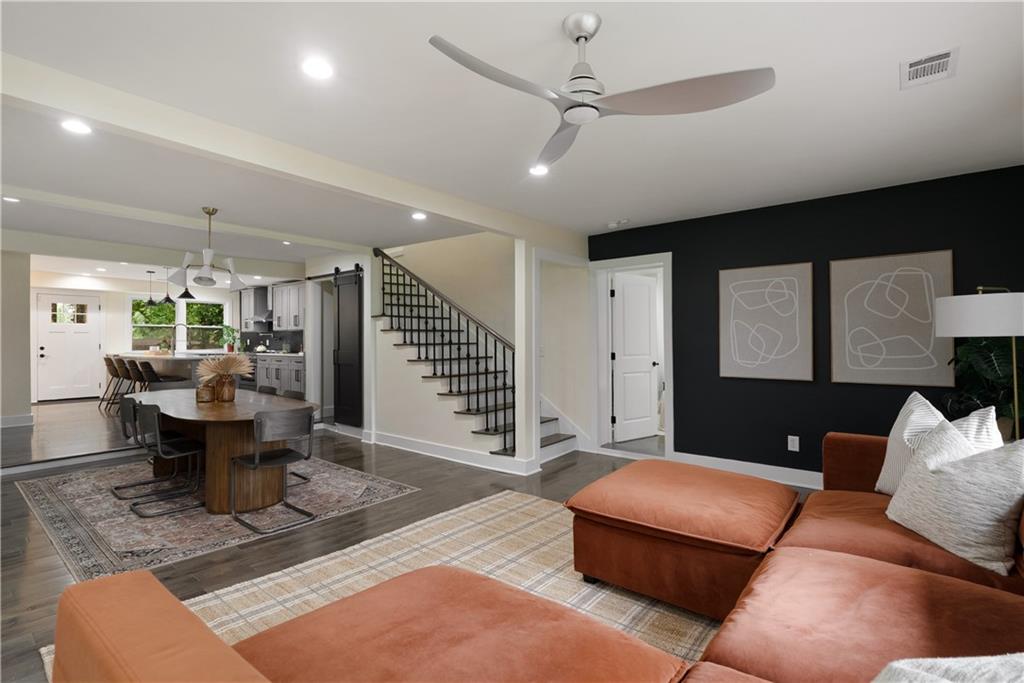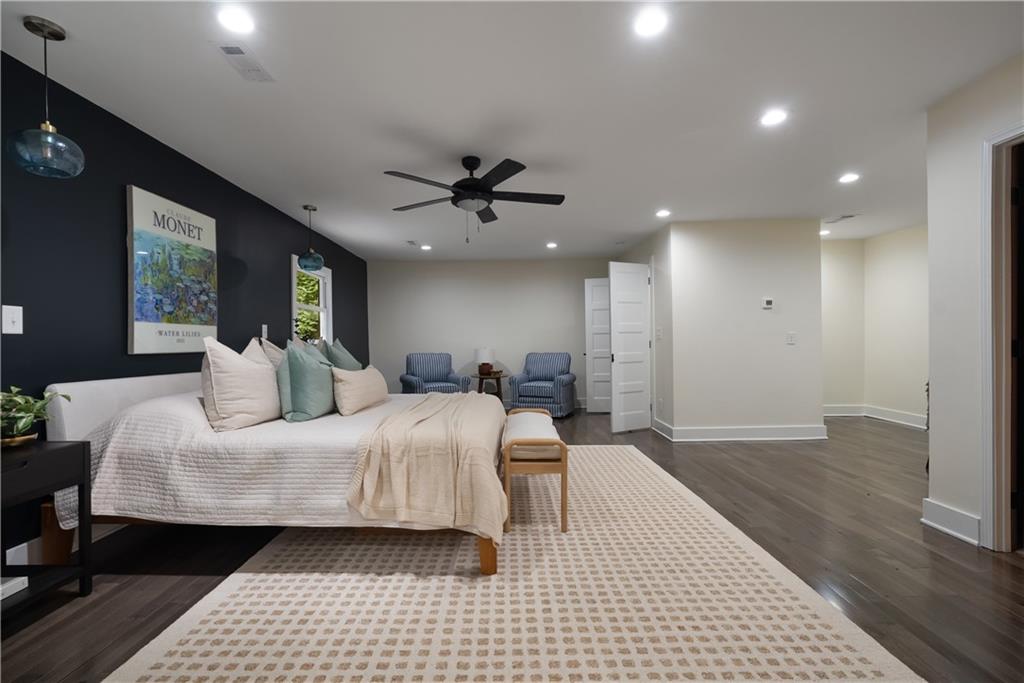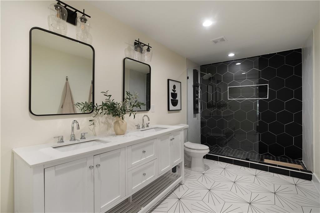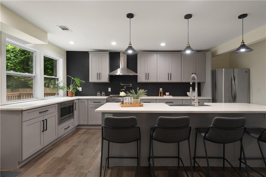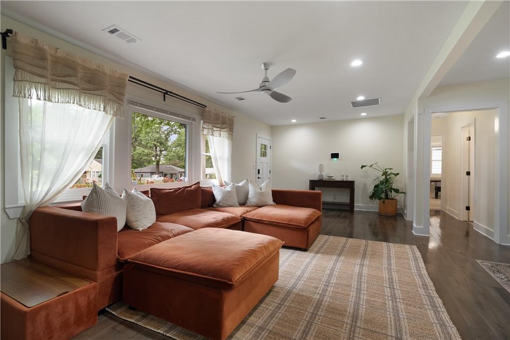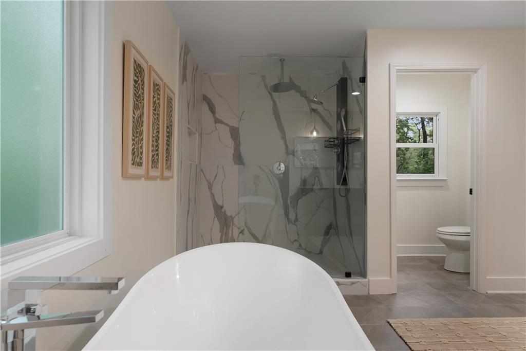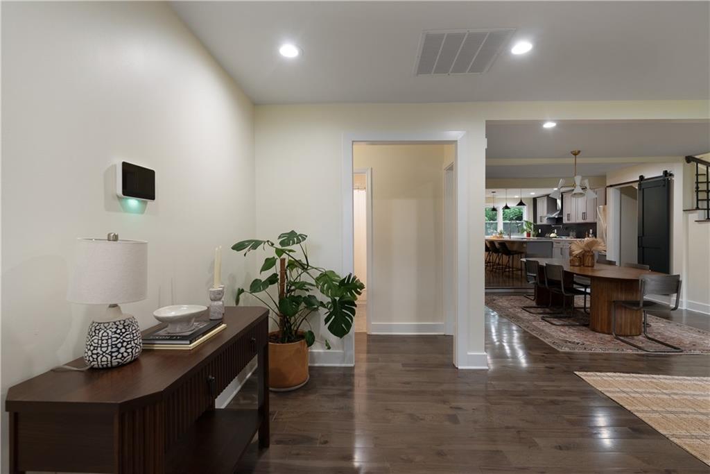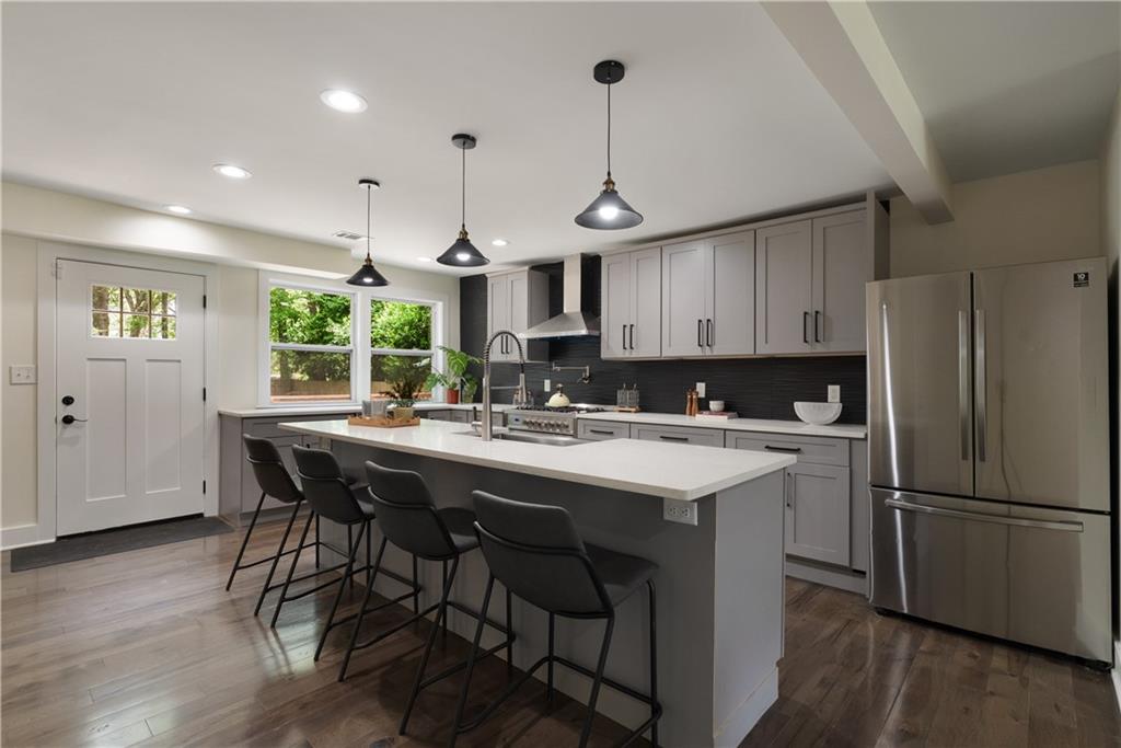 Just minutes from the murals, menus, and music of East Atlanta Village, this thoughtfully designed home delivers more above-grade square footage than most EAV ranches, without the hassle of a basement or the price tag of new construction. It’s rare to find this much functional space, all on a flat, tree-lined lot that offers quiet privacy within arm’s reach of the Village. The bright and open main level features seamless flow from living and dining into a large eat-in kitchen with island seating for four. Designed for real cooks, the kitchen includes a professional-grade gas range with externally vented hood, quartz countertops, a large stainless undermount sink, under-cabinet microwave, and plenty of space to gather, prep, or just linger over coffee. The home features dual primary suites, with the main floor primary enjoying a separate roofline that creates a quiet, private retreat. With its exterior access, this suite is ideal for multi-generational living, Airbnb potential, or simply aging in place with the ease of true one-level living. The large en suite bathroom includes dual vanities and an oversized frameless glass shower. A well-planned split-bedroom layout places the remaining three bedrooms on the opposite side of the main level—one with dedicated hall bath access and two joined by a Jack and Jill bath. Upstairs, the second primary suite spans the entire top floor with a sitting area, reading nook, massive walk-in closet, and a spa-style bath complete with soaking tub, dual vanities, rainfall shower with body sprays, and a separate water closet. The laundry room is conveniently located on the main level, outfitted with high-efficiency LG front-loading washer and dryer on pedestals, offering form and function in equal measure. Outside, the flat backyard is surrounded by mature trees, offering rare privacy and breathing room, especially this close to the heart of EAV. Because in East Atlanta, homes like this don’t come around often. You’re getting serious square footage, a flexible layout, and a location that puts you minutes from everything, without the compromises that usually come with it.