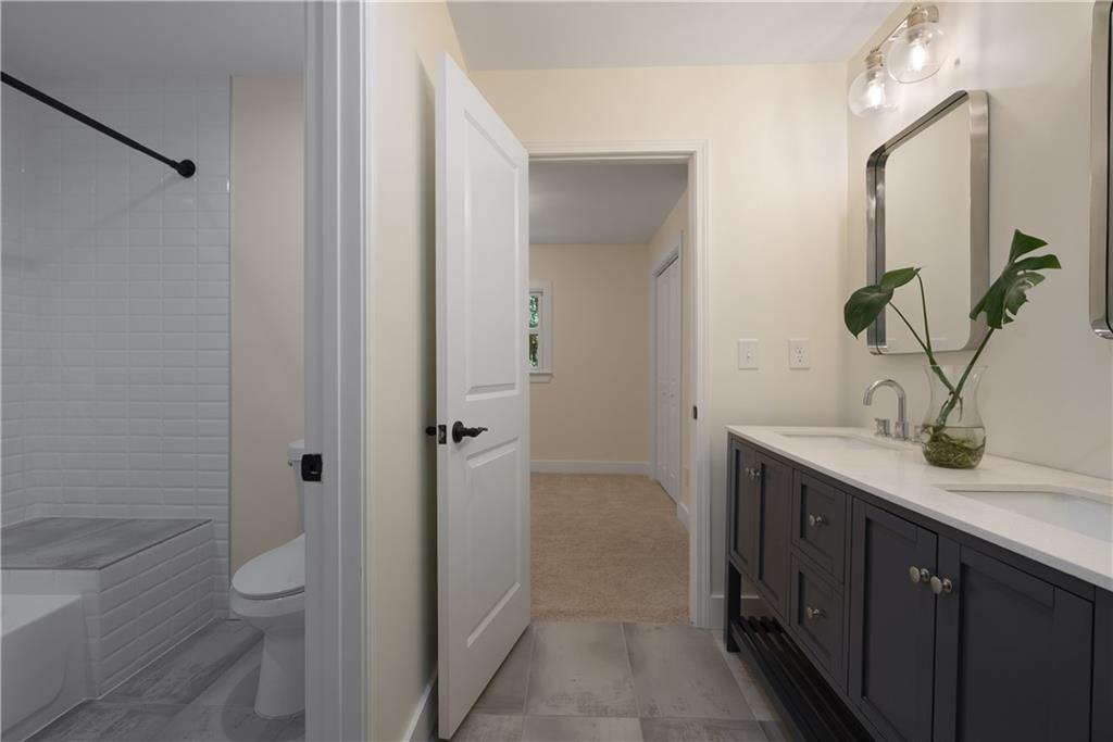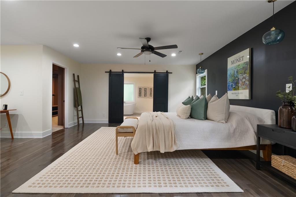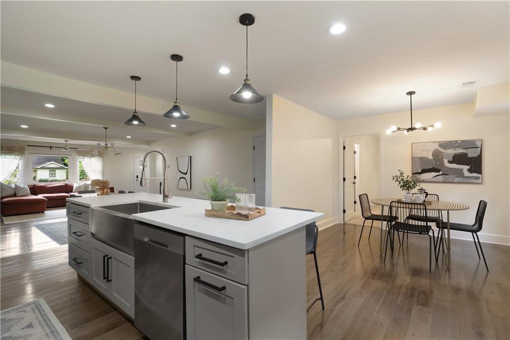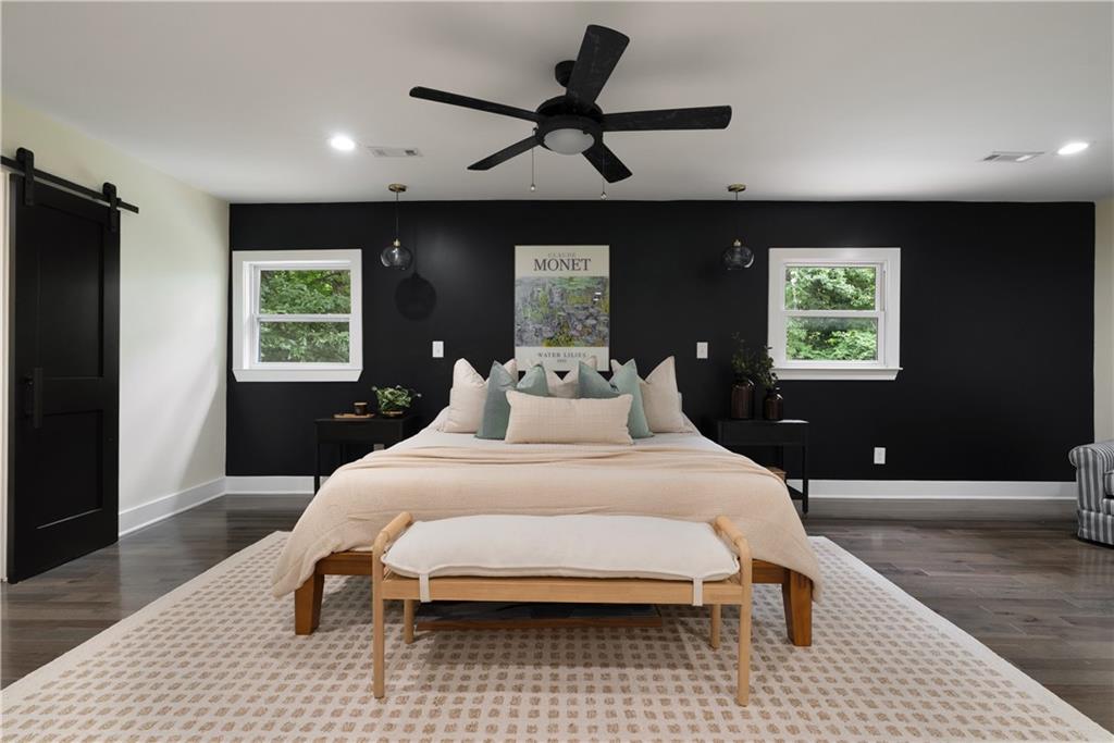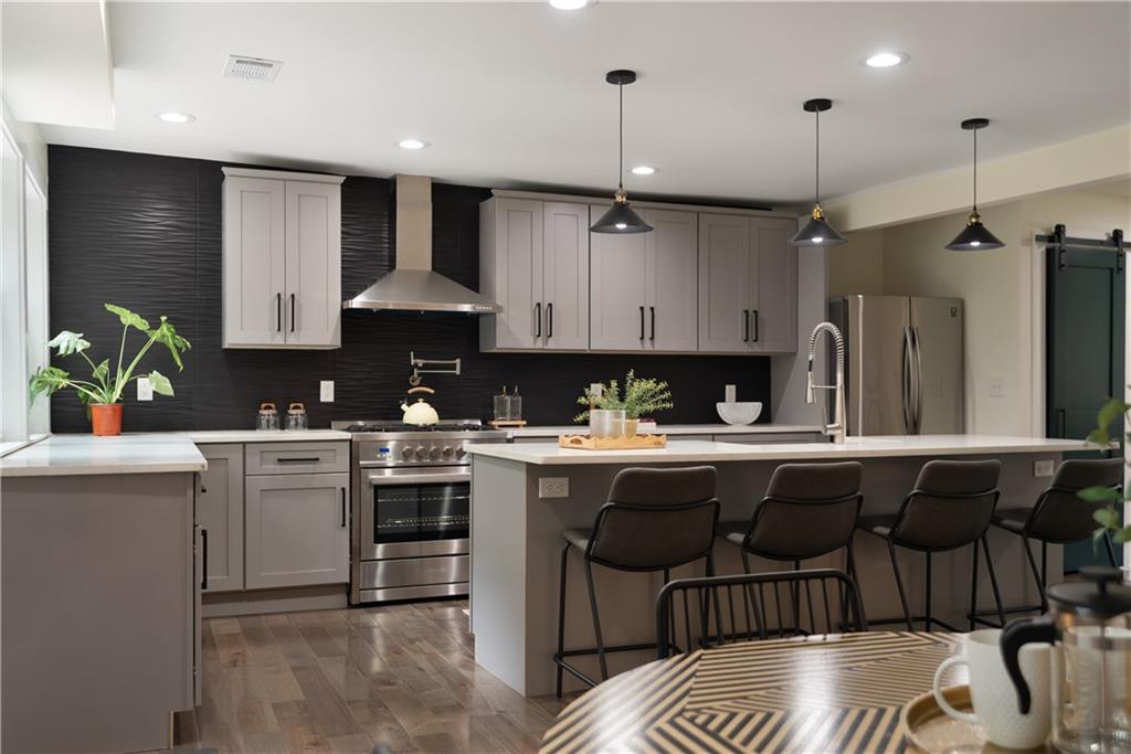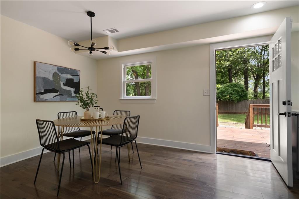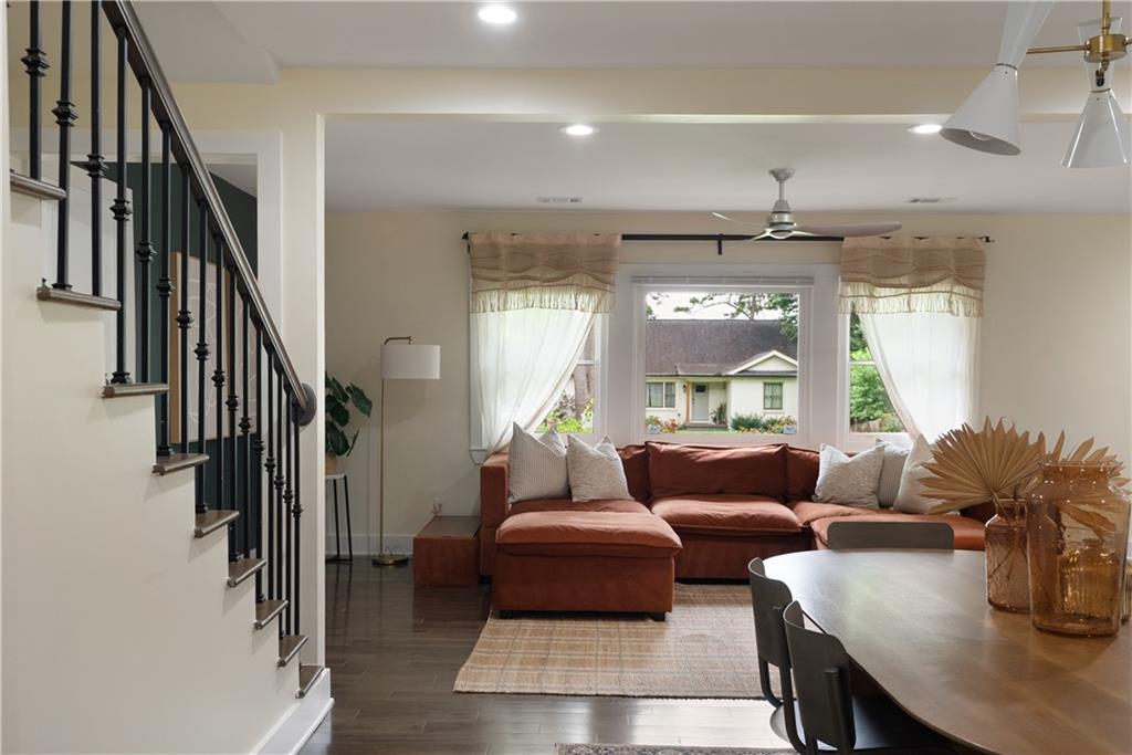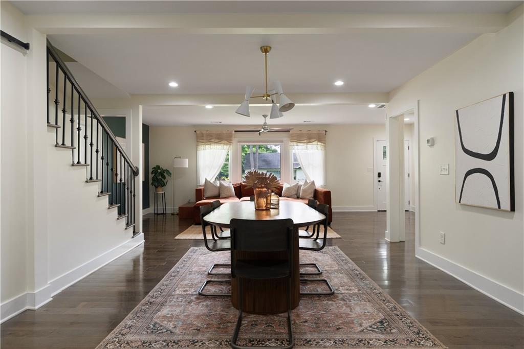 Just minutes from the murals, menus, and music of East Atlanta Village, this thoughtfully designed home delivers more above-grade square footage than most EAV ranches, without the hassle of a basement or the price tag of new construction. It’s rare to find this much functional space, all on a flat, tree-lined lot that offers quiet privacy within arm’s reach of the Village. The bright and open main level features seamless flow from living and dining into a large eat-in kitchen with island seating for four. Designed for real cooks, the kitchen includes a professional-grade gas range with externally vented hood, quartz countertops, a large stainless undermount sink, under-cabinet microwave, and plenty of space to gather, prep, or just linger over coffee. The home features dual primary suites, with the main floor primary enjoying a separate roofline that creates a quiet, private retreat. With its exterior access, this suite is ideal for multi-generational living, Airbnb potential, or simply aging in place with the ease of true one-level living. The large en suite bathroom includes dual vanities and an oversized frameless glass shower. A well-planned split-bedroom layout places the remaining three bedrooms on the opposite side of the main level—one with dedicated hall bath access and two joined by a Jack and Jill bath. Upstairs, the second primary suite spans the entire top floor with a sitting area, reading nook, massive walk-in closet, and a spa-style bath complete with soaking tub, dual vanities, rainfall shower with body sprays, and a separate water closet. The laundry room is conveniently located on the main level, outfitted with high-efficiency LG front-loading washer and dryer on pedestals, offering form and function in equal measure. Outside, the flat backyard is surrounded by mature trees, offering rare privacy and breathing room, especially this close to the heart of EAV. Because in East Atlanta, homes like this don’t come around often. You’re getting serious square footage, a flexible layout, and a location that puts you minutes from everything, without the compromises that usually come with it.