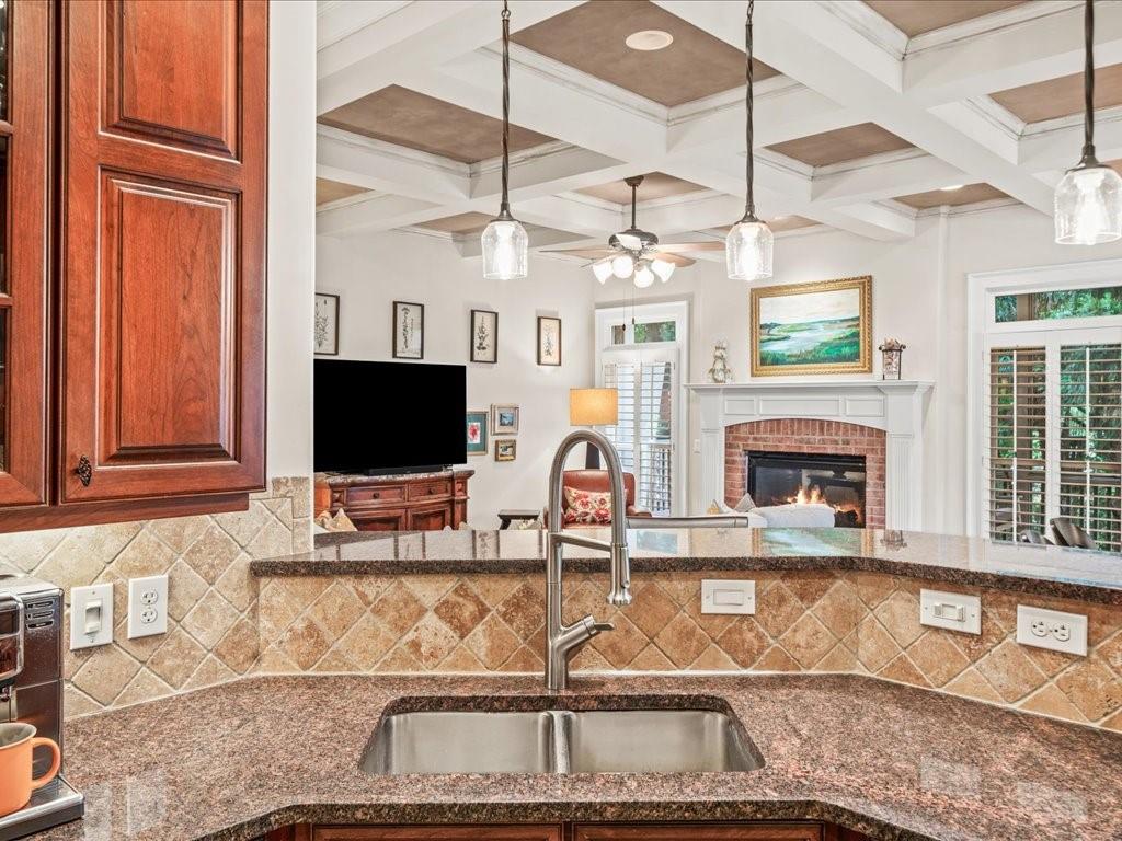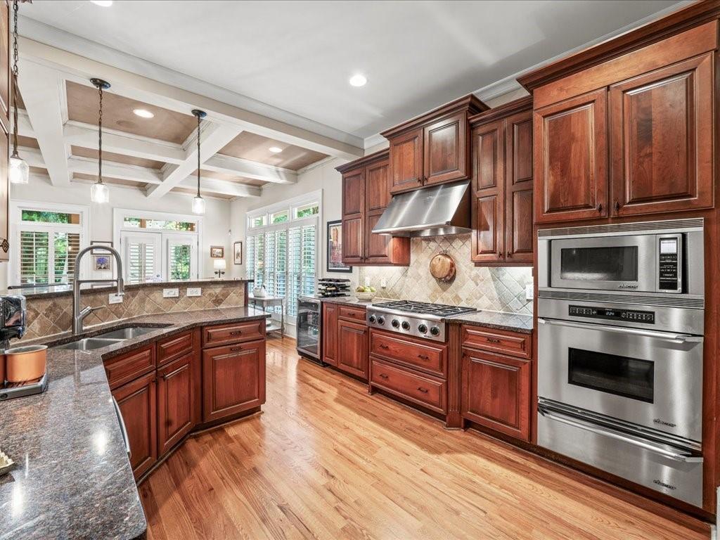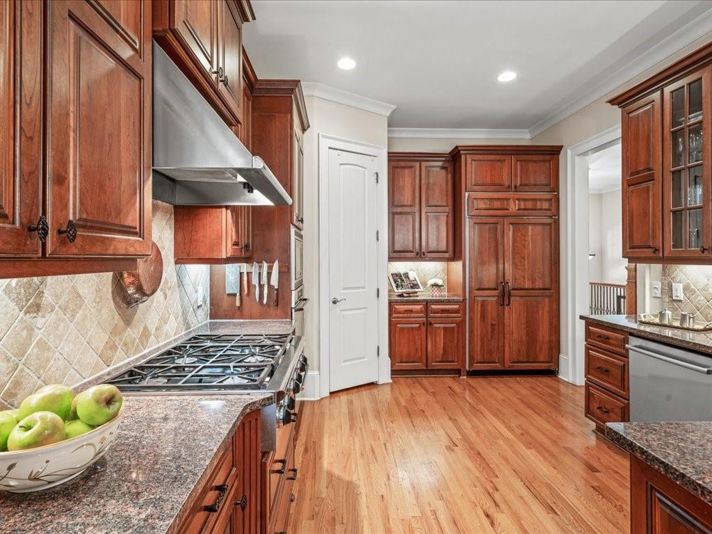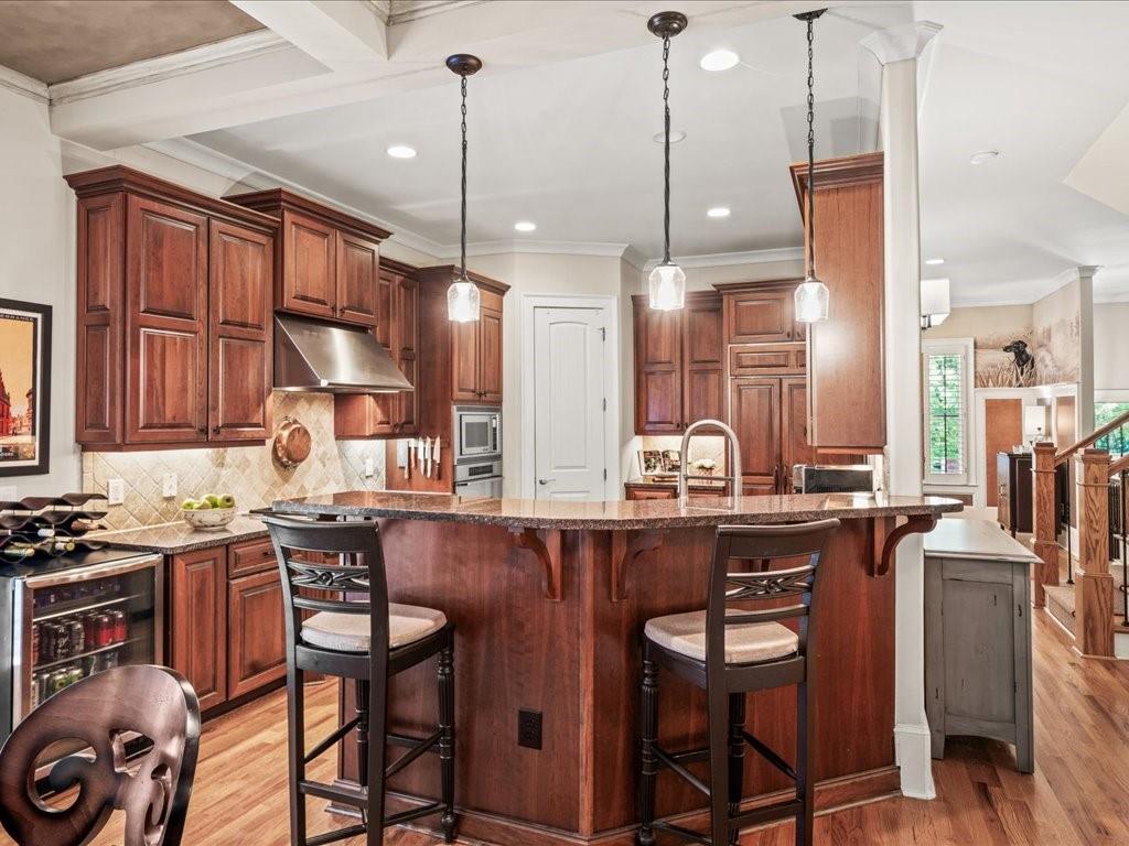 - KitchenBreakfast Bar, Cabinets Stain, Eat-in Kitchen, Pantry Walk-In, Stone Counters, View to Family Room