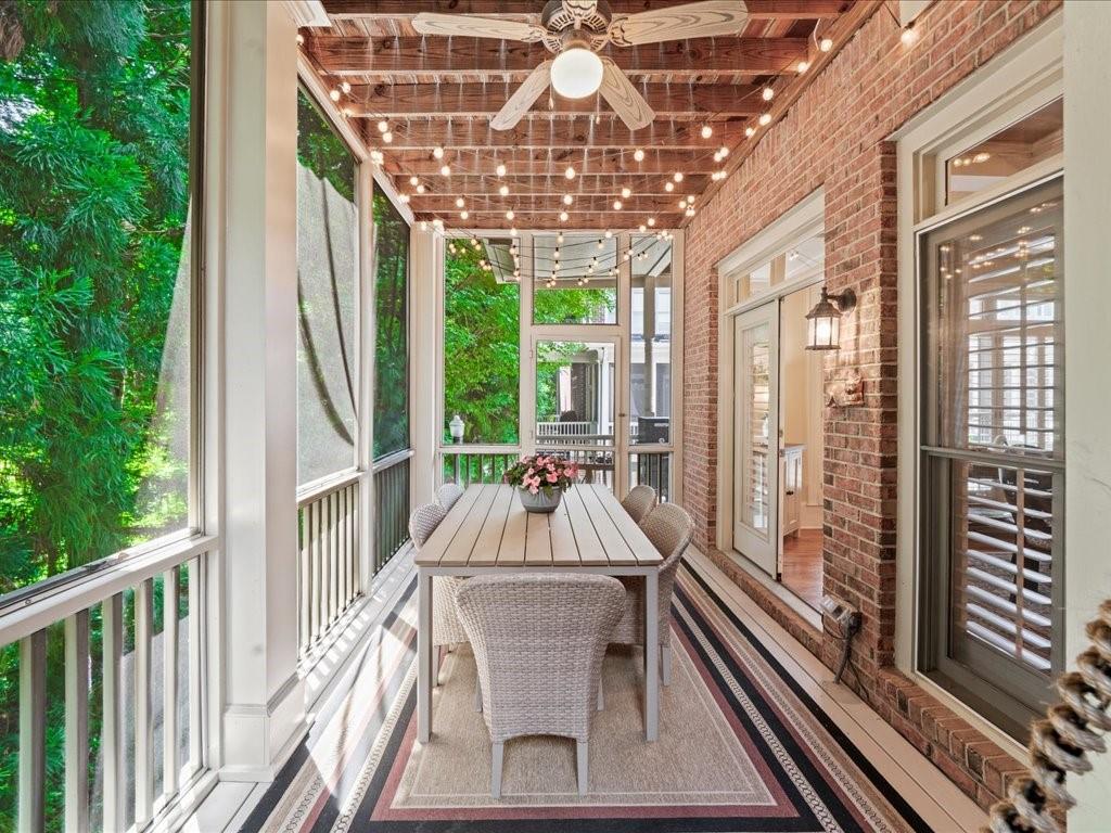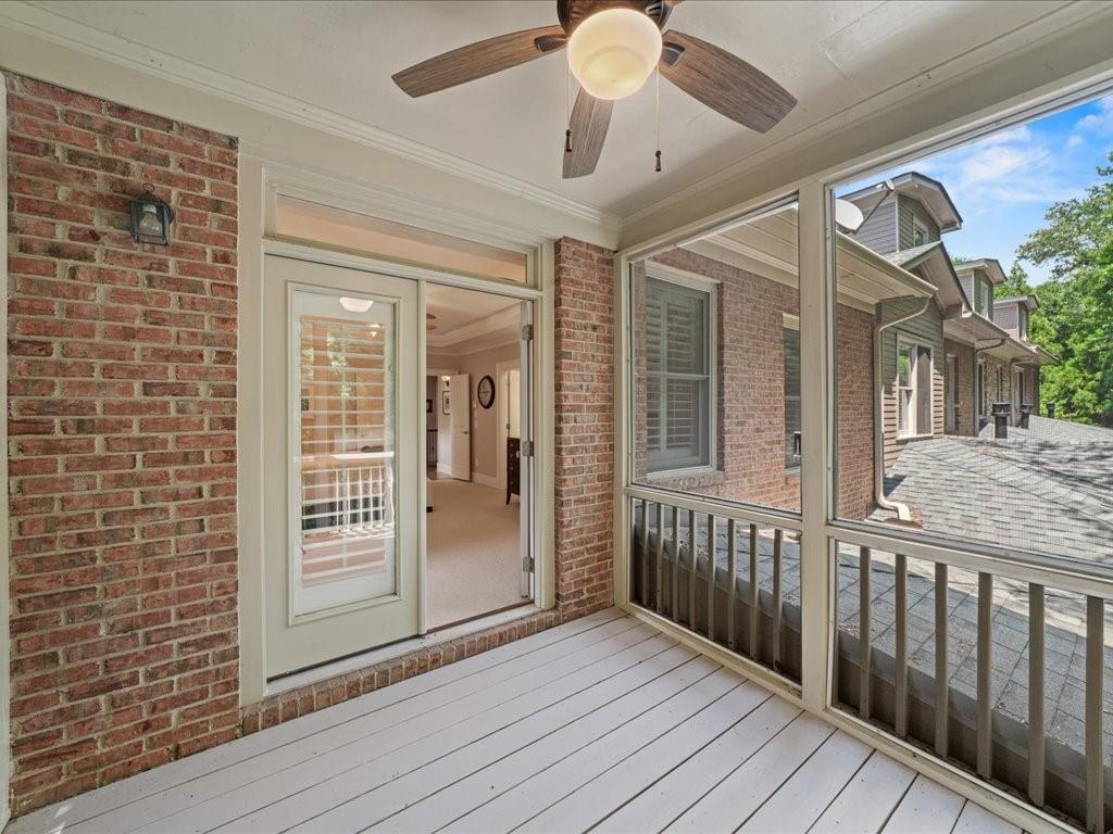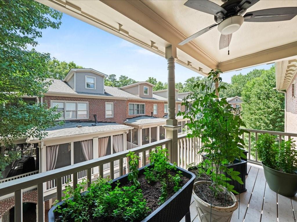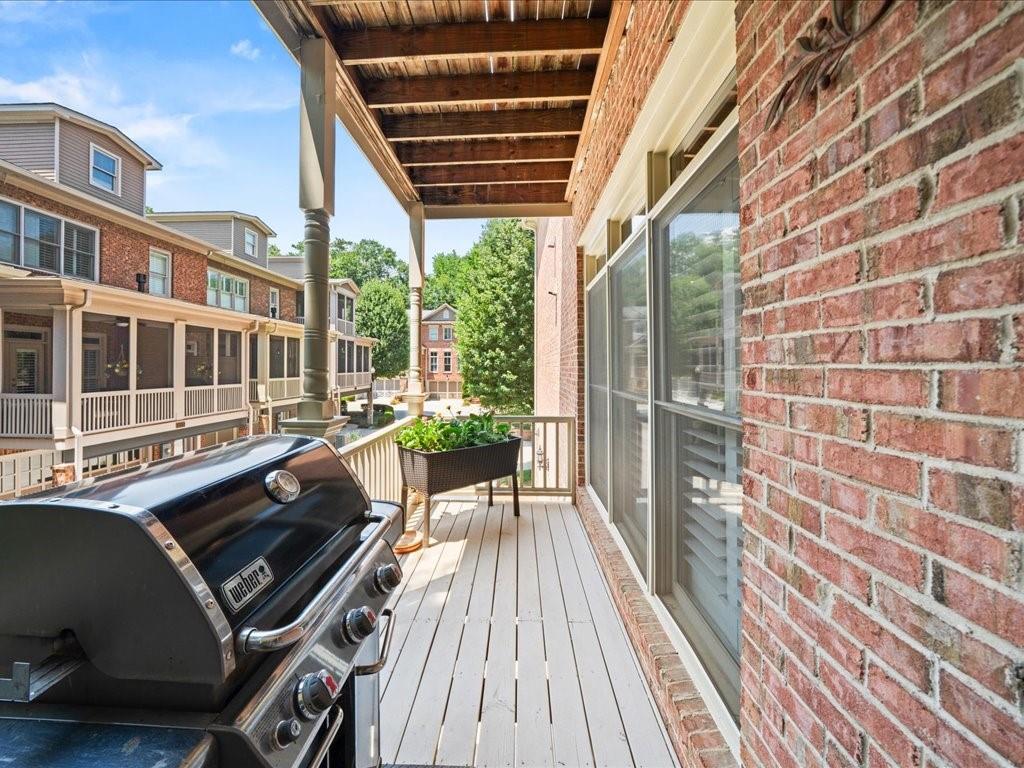 Beautiful Custom Brick End-Unit Townhome with Rare 3-Car Garage! This elegant traditional townhome stands out with FOUR porches—including two screened-in (one off the family room and one off the primary suite)—perfect for indoor/outdoor living. Exceptional craftsmanship throughout with custom plantation shutters, rounded wall edges, 12-inch trim, transom windows, and detailed millwork rarely seen today. The spacious main level is ideal for entertaining, featuring a dining room that easily seats 12+, highlighted by gorgeous moldings and a hand-painted mural signed by the artist. The gourmet kitchen boasts granite countertops, SubZero paneled refrigerator, Dacor appliances (including six burner gas range cooktop and warming drawer), Bosch dishwasher, and a walk-in pantry. An inviting eat-in area flows seamlessly into the family room, which showcases coffered ceilings and a cozy brick fireplace. Upstairs, the primary retreat impresses with a private screened porch, large balcony, spa-like bath with new tile flooring, double shower heads, and a custom walk-in closet. Two additional bedrooms offer custom closets, and the oversized laundry room includes built-in cabinetry and a sink. The finished terrace level serves perfectly as a teen or in-law suite with its own washer/dryer connection and full bath. A fully floored walk-up attic offers excellent storage or future finish potential. All this in an incredible central Perimeter location—just minutes from GA-400, I-285, and three MARTA stations!