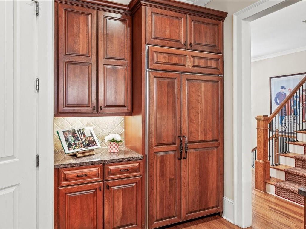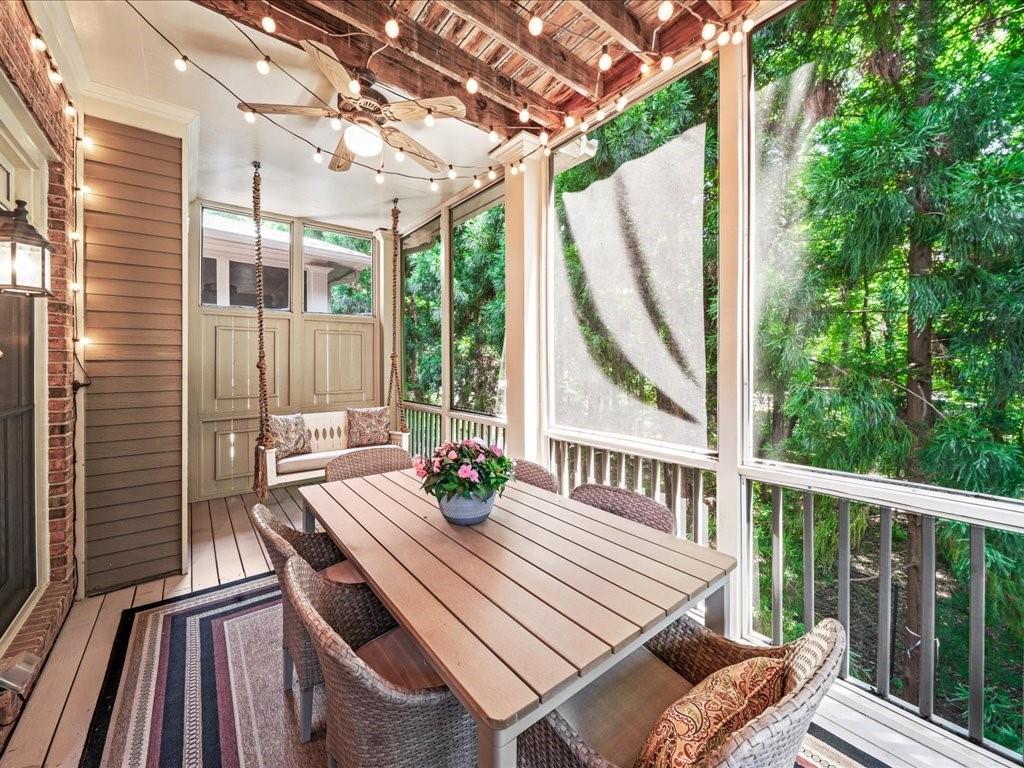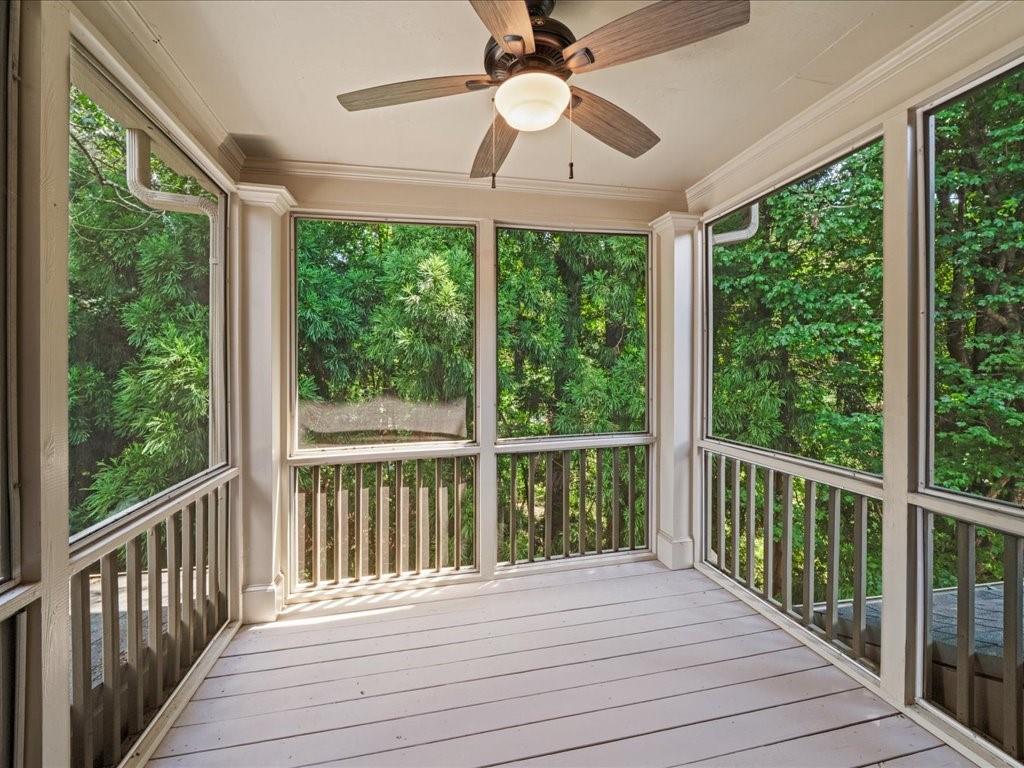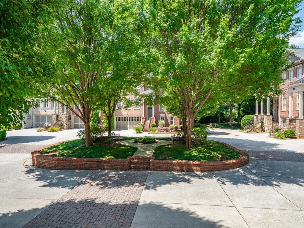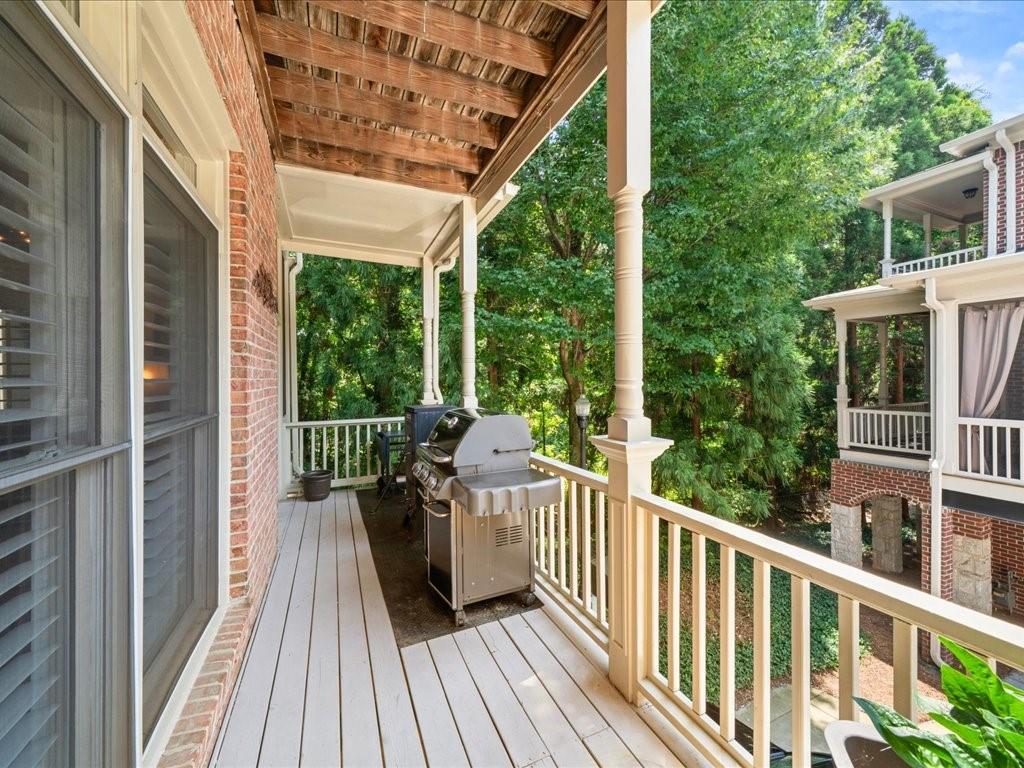 Beautiful Custom Brick End-Unit Townhome with Rare 3-Car Garage! This elegant traditional townhome stands out with FOUR porches—including two screened-in (one off the family room and one off the primary suite)—perfect for indoor/outdoor living. Exceptional craftsmanship throughout with custom plantation shutters, rounded wall edges, 12-inch trim, transom windows, and detailed millwork rarely seen today. The spacious main level is ideal for entertaining, featuring a dining room that easily seats 12+, highlighted by gorgeous moldings and a hand-painted mural signed by the artist. The gourmet kitchen boasts granite countertops, SubZero paneled refrigerator, Dacor appliances (including six burner gas range cooktop and warming drawer), Bosch dishwasher, and a walk-in pantry. An inviting eat-in area flows seamlessly into the family room, which showcases coffered ceilings and a cozy brick fireplace. Upstairs, the primary retreat impresses with a private screened porch, large balcony, spa-like bath with new tile flooring, double shower heads, and a custom walk-in closet. Two additional bedrooms offer custom closets, and the oversized laundry room includes built-in cabinetry and a sink. The finished terrace level serves perfectly as a teen or in-law suite with its own washer/dryer connection and full bath. A fully floored walk-up attic offers excellent storage or future finish potential. All this in an incredible central Perimeter location—just minutes from GA-400, I-285, and three MARTA stations!