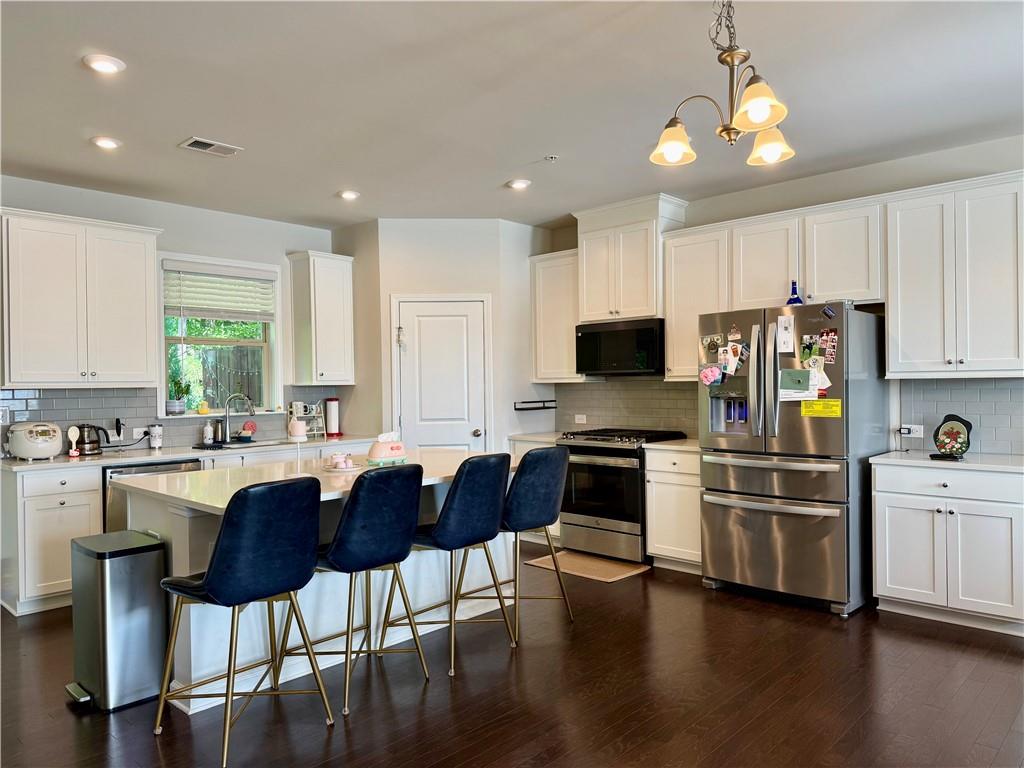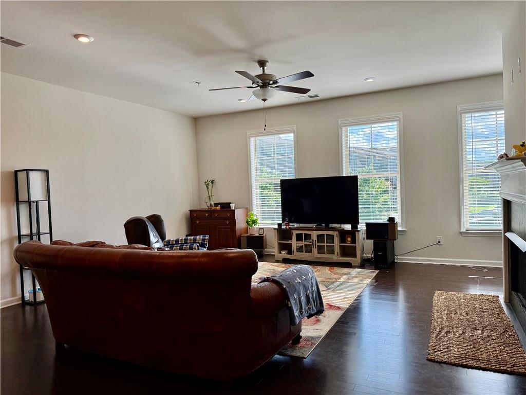 Like new, luxurious 3-story townhome with modern - open concept kitchen, dining and family room. Builder-upgrade features white shaker style kitchen cabinet, white quartz countertop, stainless steel appliances, luxurious wood flooring, long driveway, privacy backyard, and oversized owner's suite on the whole 3rd floor floorplan, spa like master bathroom with walk-in closet. Community amenities pool and serene lake with scenic walking path just across the street for morning or afternoon walk. Easy access to downtown Atlanta, Falcon Mercedez Benz Stadium, Atlanta Braves Stadium, and Hartsfield International Airport.