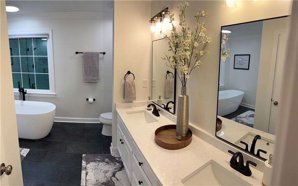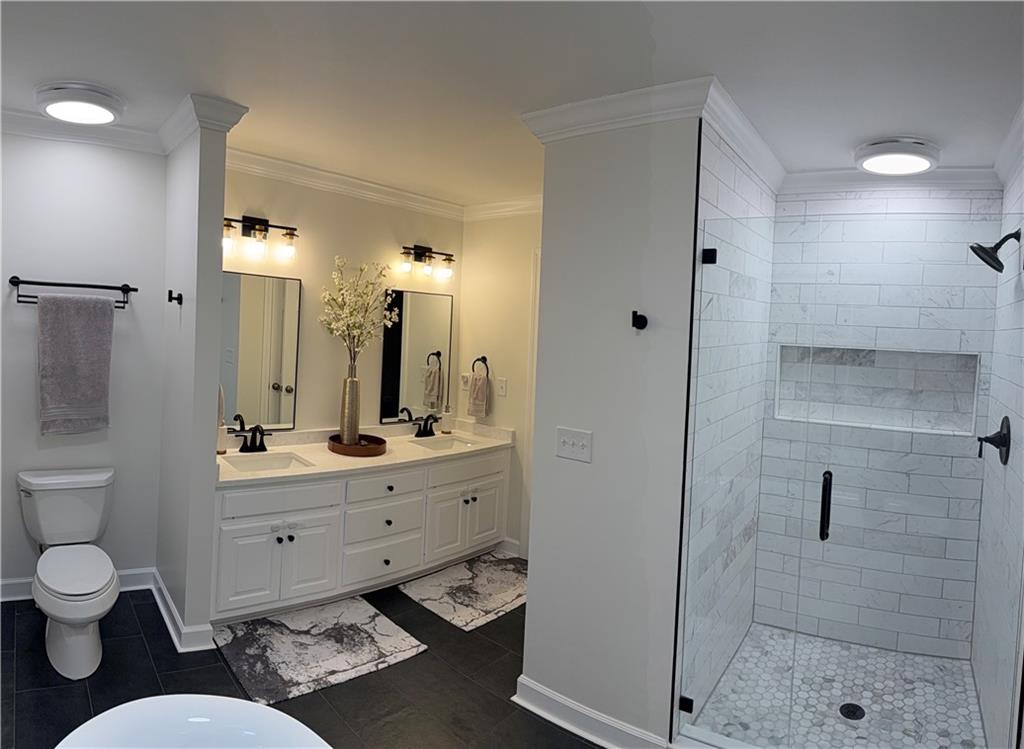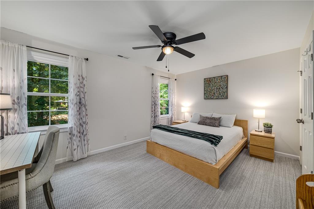 Welcome to an exquisitely updated, move-in ready modern 5 bedroom/3.5 bathroom home tucked away on a private cul-de-sac with a rare 3-car garage. This stately residence is brimming with thoughtful upgrades, timeless style, and everyday functionality. From the moment you arrive, you’ll be drawn in by the picture-perfect curb appeal and beautifully landscaped yard. Step inside to a bright two-story foyer and living room with a cozy fireplace, ideal for relaxing or entertaining. The beautiful eat-in kitchen is the heart of the home, featuring stainless steel appliances, new cooktop & frigerator, double ovens, and ample counter and cabinet space. The spacious main-level primary suite is a true retreat, complete with trey ceilings, four oversized windows for natural light, a double vanity bathroom, stand alone soaking tub, glass-enclosed shower, and a generous walk-in closet with custom shelving. Upstairs, you’ll find the freshly painted laundry room, three bright and airy bedrooms with new carpet, all sharing a large hall bath with a double vanity and separate shower/commode for added privacy. Downstairs, the finished lower level offers a flexible fifth bedroom, perfect for a home office, gym, or guest suite and easy access to a lush, private outdoor space. A side yard nearly the size of the house itself and a cozy fire pit area offer even more room to spread out and enjoy nature. Peace of mind comes easy thanks to a long list of recent upgrades: all-new siding, gutters, garage doors, windows, doors, lighting, ceiling fans, trim, driveway with French drain, shed, upstairs HVAC and PEX plumbing, landscaping and added basement ventilation, and a brand-new roof in 2025. Located just minutes from Hwy 400 and surrounded by the best of North Metro living: Halcyon, Downtown Alpharetta, Vickery Village, and Avalon. Enjoy award-winning Forsyth County schools and lower property taxes. With a motivated seller and every detail already handled, your dream home is ready to welcome you today. Three Sentence Description: This move-in ready 5BR/3.5BA home on a quiet cul-de-sac features a 3-car garage, stunning updates, a main-level primary suite, finished basement, and a spacious yard. Enjoy modern style, custom finishes, and easy access to Halcyon, Alpharetta, and top Forsyth County schools. Ready for you to feel at home!