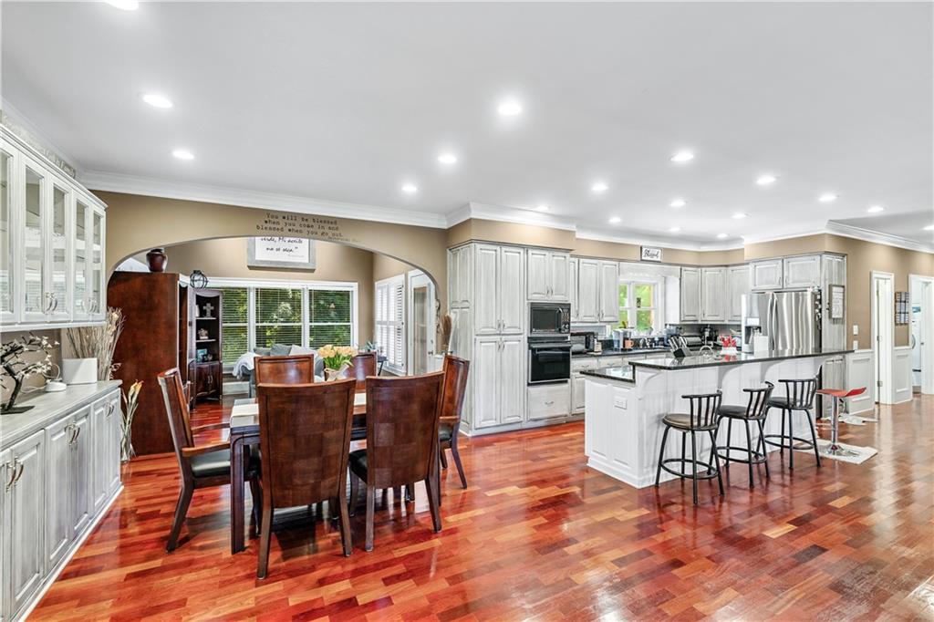 - KitchenBreakfast Bar, Cabinets Other, Eat-in Kitchen, Pantry, Stone Counters, View to Family Room