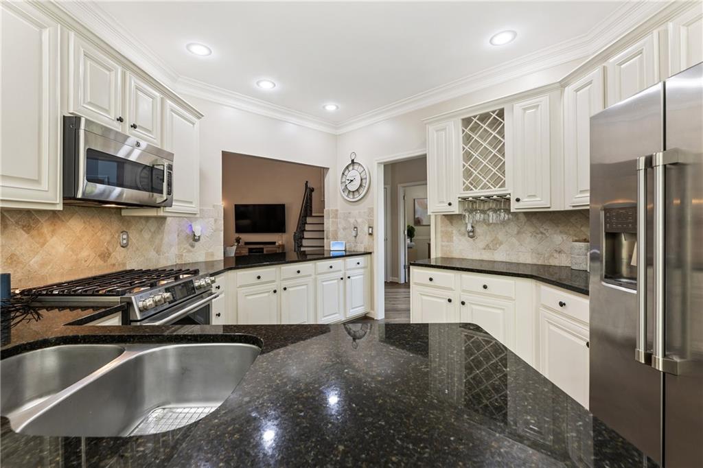 - KitchenBreakfast Bar, Breakfast Room, Cabinets Other, Eat-in Kitchen, Stone Counters, View to Family Room, Wine Rack