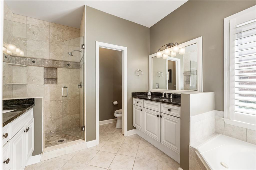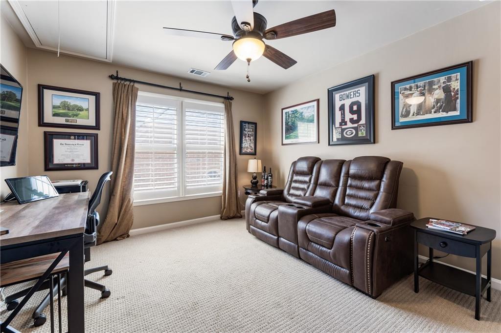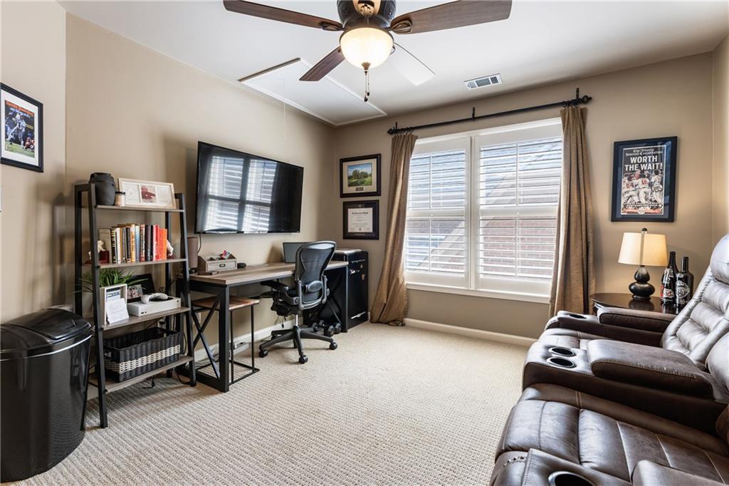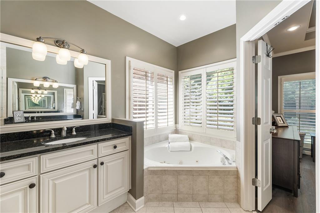 Charming Master-on-Main with Private Outdoor Living in Prime Location Welcome to 35 Westfair Ct NE—a rare find offering master-on-main living, a private level fenced backyard, and a beautifully landscaped setting in a quiet, convenient neighborhood. This 3-sided brick home welcomes you with a double-door entry into a soaring two-story foyer adorned with a Palladian window. The front office features a bay window and French doors, providing the perfect work-from-home space. The spacious eat-in kitchen is equipped with a 6-burner slide-in range, built-in microwave, double stainless sink, dishwasher, and counter-height counter—ideal for casual dining. The kitchen opens to a vaulted great room with a cozy gas fireplace, creating an open-concept feel filled with natural light. Tucked down the hall is a guest powder room and the spacious primary suite on the main level. This serene retreat features a tray ceiling, a custom California closet system, and a spa-like bath with granite-topped dual vanities, a whirlpool tub, and a tiled shower with glass enclosure. Upstairs offers two large secondary bedrooms with generous closets, a full bath, and a massive unfinished bonus space—perfect for storage or future expansion. Added features include: Hardwood floors, plantation shutters, iron spindles, gutter guards. One of the home’s standout features is the screened-in lanai, ideal for alfresco dining or relaxing evenings outdoors. The level, fenced backyard includes a paver patio for grilling and a grassy area for play or pets. A two-car garage and extended driveway provide plenty of guest parking. A convenient laundry/mud room is located off the garage entrance. Located just minutes from Sandy Springs City Center, Dunwoody Village, local parks, trails, and with easy access to GA-400 and I-285, this home offers the perfect blend of comfort, charm, and convenience.