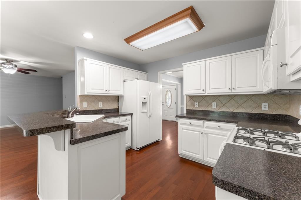 - KitchenBreakfast Bar, Cabinets White, Eat-in Kitchen