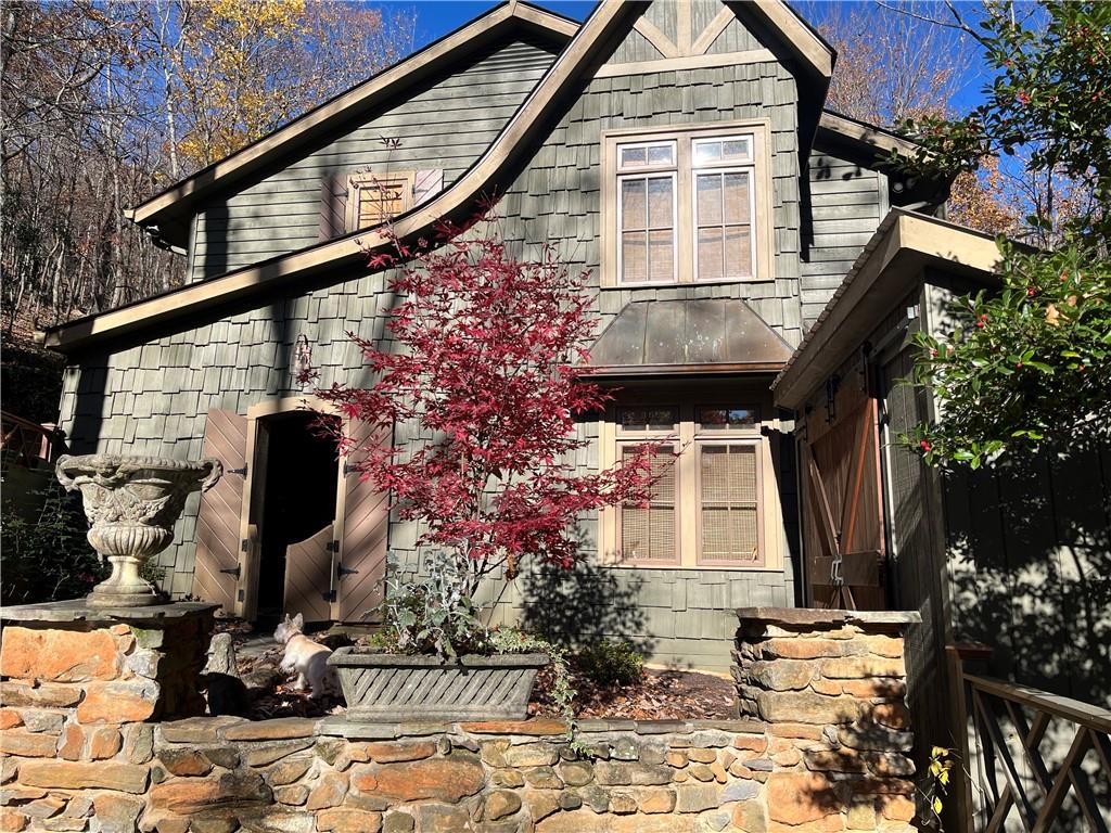 Charming mountain cottage being sold turn key with beautiful mountain views, tucked away on a private, wooded acre that backs up to green space, and is affectionately known as “Buttercup Cottage”. Home blends rustic character with refined comfort and has been functionally maintained with newer roof, newer HVAC, newer bathrooms, newer kitchen, newer fireplace etc. Located in the prestigious gated community of Big Canoe, home offers a peaceful mountain lifestyle with resort-style amenities, all within an hour of Atlanta. Originally built in 1990 and thoughtfully redesigned in 2005 to evoke the quaint, storybook charm of Carmel, California, the exterior features a delightful mix of shingles, siding, stonework, and cedar. Inside, the home offers four bedrooms and four full bathrooms, with warm pine and hardwood flooring and mountain-inspired finishes throughout. Main level features a comfortable primary suite, cathedral-ceiling great room with beautiful stacked stone fireplace to the ceiling - perfect for relaxing or entertaining. A very spacious screened porch is perfect for relaxing, with a balcony from both main level bedrooms to enjoy the mountain views. Terrace level includes two bedrooms and two full baths, with exterior access, offering flexible potential as an in-law suite, guest space, recreation area or extra storage space. The large family room is anchored by cozy fireplace A stone patio provide ample outdoor living space surrounded by nature. “Buttercup Cottage” is more than just a home—it’s a mountain retreat with timeless appeal in one of North Georgia’s most desirable private communities. Buyer to verify all information and dimensions deemed important.