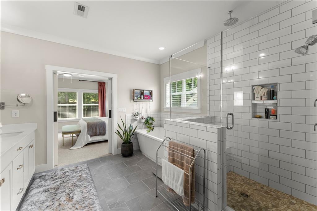 - FeaturesDouble Vanity, High Ceilings 10 ft Main, High Speed Internet, Recessed Lighting, Walk-In Closet(s)