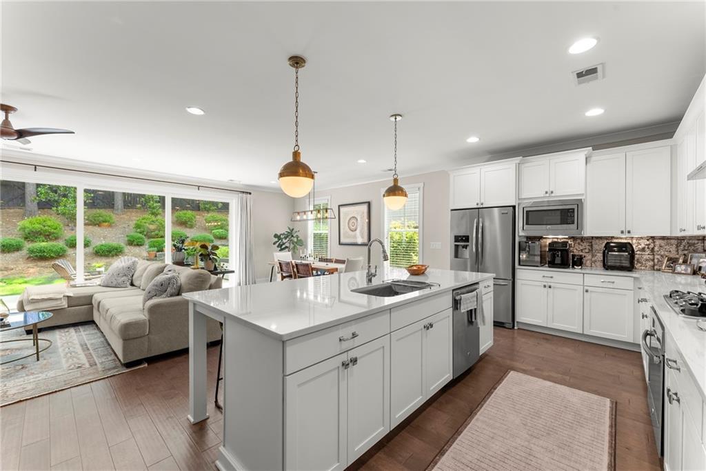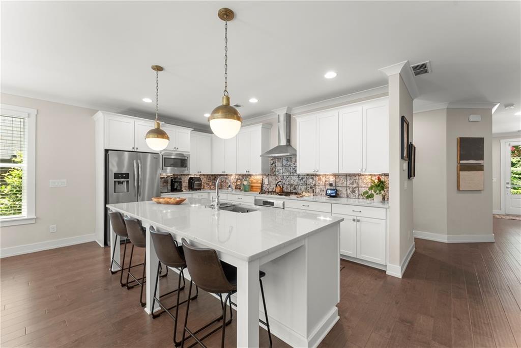 Welcome to your dream home in the perfect location—conveniently nestled just off Hwy 92, minutes from both downtown Roswell and downtown Woodstock. This stunning 3-bedroom, 2.5-bath end-unit townhome feels nearly custom with its high-end finishes, open-concept design, and abundant natural light throughout. Step inside to find engineered hardwood floors flowing through the main level, and a panoramic sliding door opening to your private patio—perfect for seamless indoor-outdoor entertaining. The spacious kitchen boasts an oversized island, gas stove, generous cabinetry, and a custom walk-in pantry. A thoughtful mudroom area just off the garage keeps things tidy, while the oversized laundry room offers built-in cabinetry and a sink. Every bedroom features custom closet systems, and the oversized primary suite includes a bonus sitting area or office space. The spa-like primary bathroom offers a double vanity, soaking tub, and a large tiled shower with a waterfall shower head. Additional highlights include: – Elevator shaft ready for future installation – End-unit location with extra windows and natural light – Ample storage and designer details throughout Enjoy community amenities including a dog park, walking trails, firepit, and a covered gazebo with a grill station—ideal for gathering with friends and neighbors. This home blends luxury, convenience, and lifestyle—schedule your tour today and fall in love!