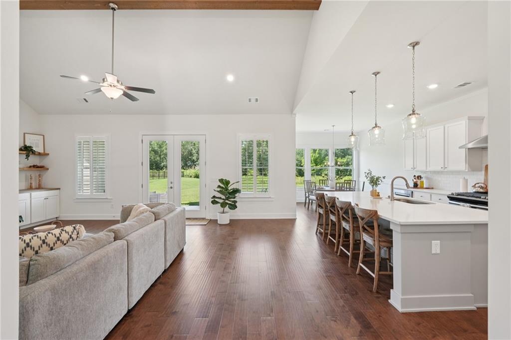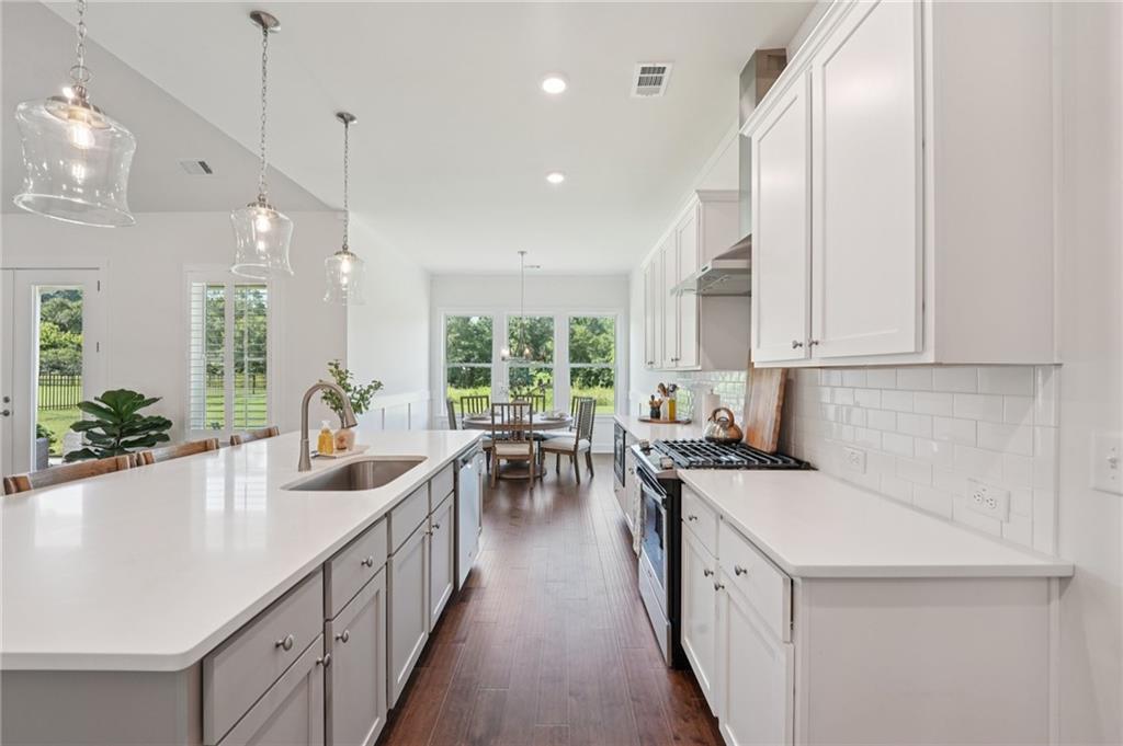 This better-than-new home sits on an oversized lot in the picturesque and highly sought-after Fields Bridge community, known for its peaceful, park-like setting and expansive green spaces. Designed for comfort and convenience, this home features a desirable ranch layout with the primary suite on the main level, complete with a luxurious bath and direct access to the laundry room. A spacious bonus suite upstairs offers the perfect space for guests, a home office, or additional living area. Inside, you’ll love the bright, open-concept floor plan with vaulted ceilings, rich hardwood flooring, natural stone countertops, and designer lighting throughout. Every detail has been thoughtfully upgraded to blend timeless style with modern function. Enjoy your own private backyard retreat, and take advantage of the community’s exceptional amenities—walking trails, a creek, a fishing pond, and wide green spaces perfect for outdoor enjoyment. Ideally located near the new Coal Mountain Center, GA 400, and downtown Cumming, this home offers the perfect balance of quiet living and everyday convenience. Built by David Patterson Homes, one of North Georgia’s most respected and trusted builders, this home reflects true craftsmanship in a community you’ll love to call home.